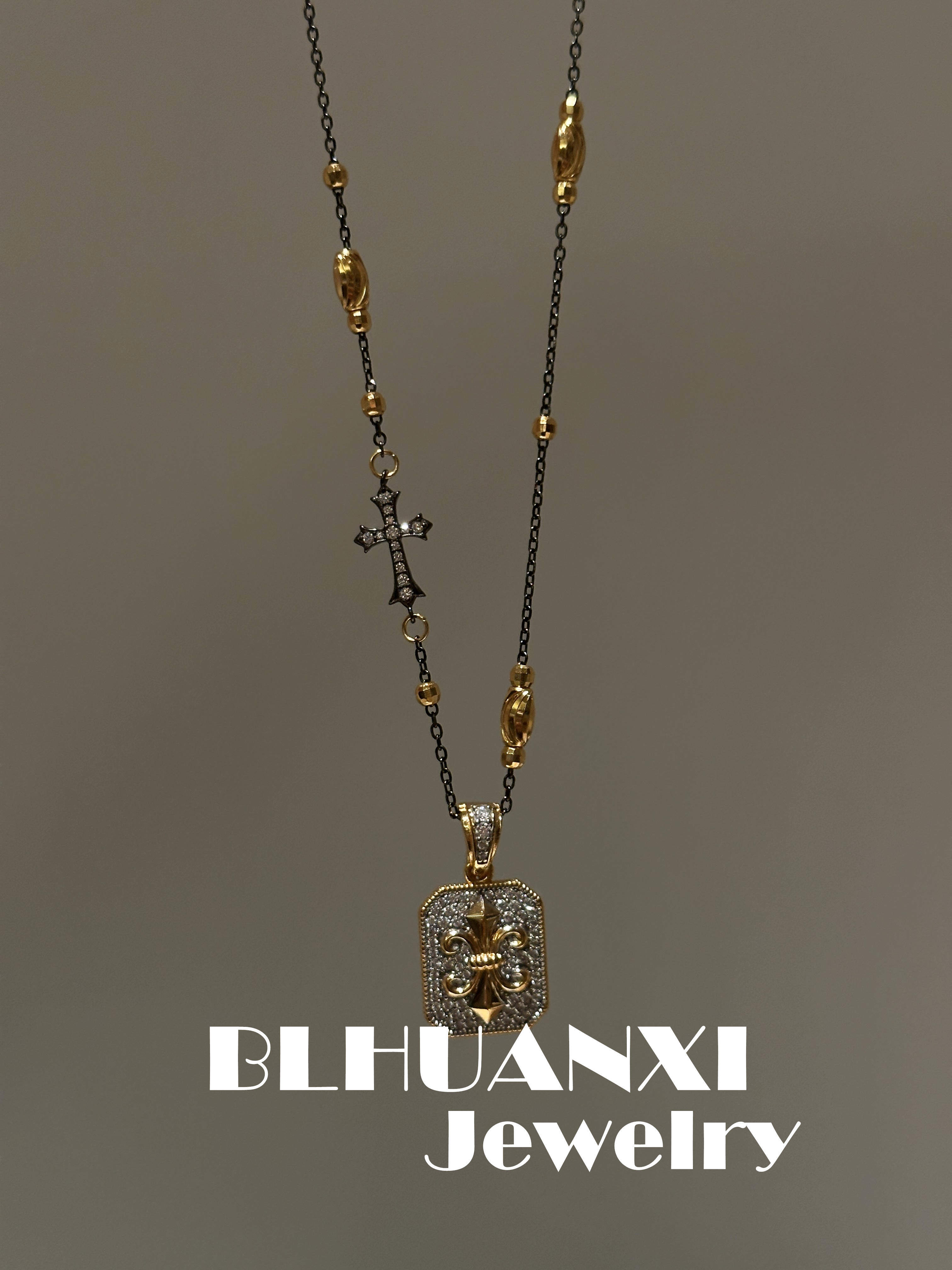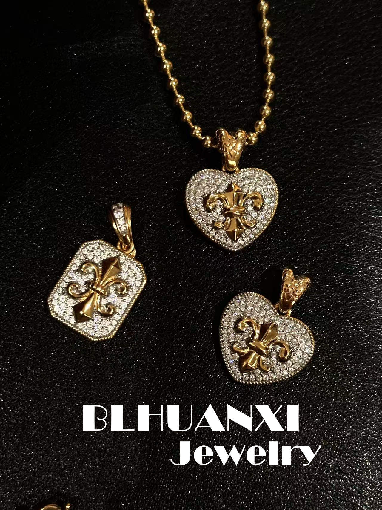 【Choose Joy】925 Silver Gold-Plated Full Diamond Plain Pendant New Iris Flower Universal Clasp Pendant
