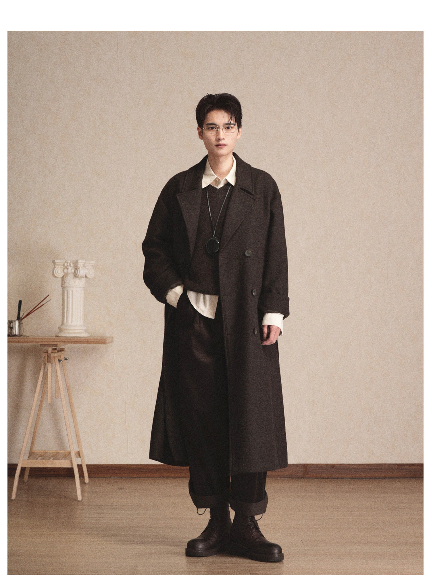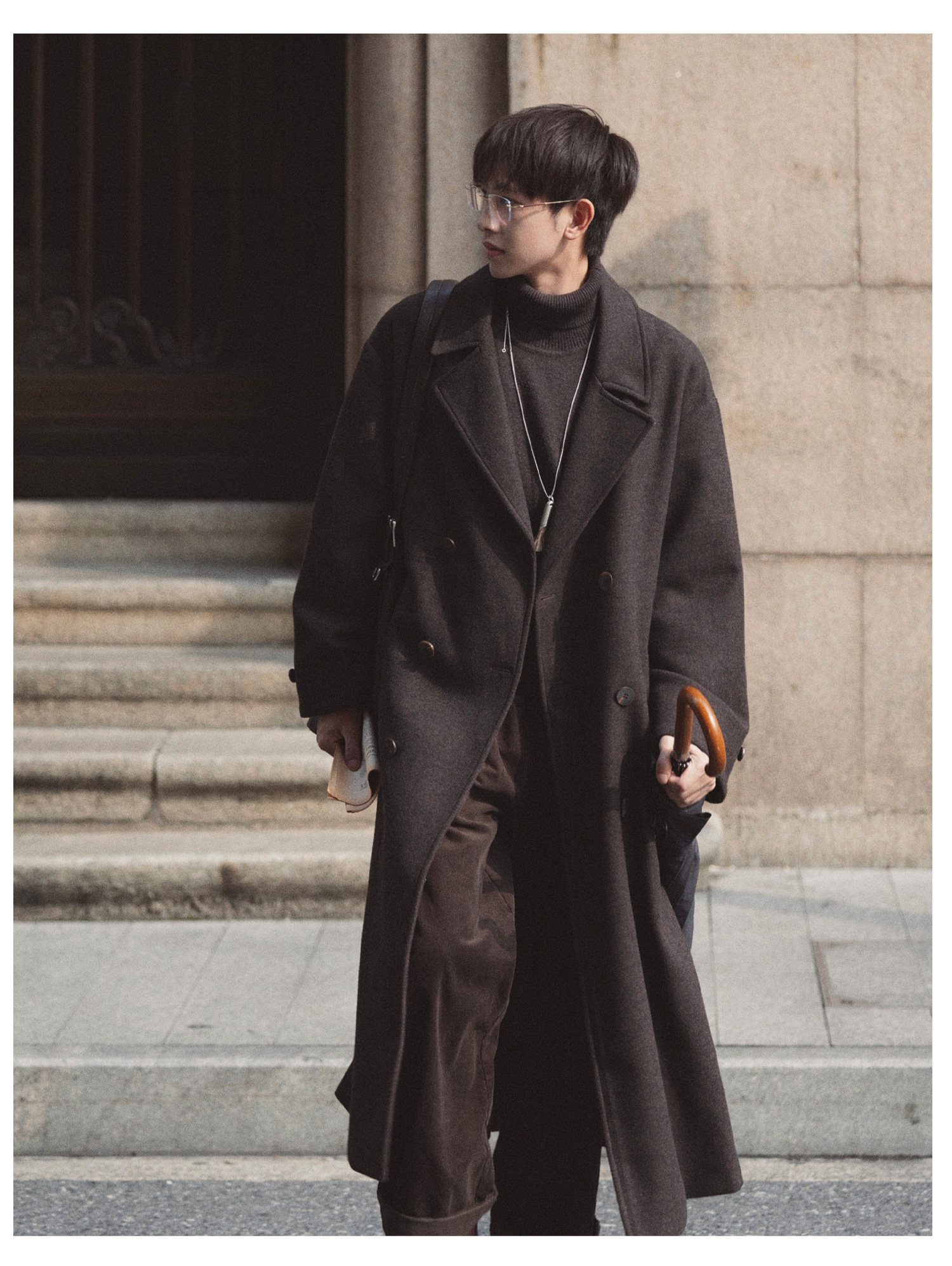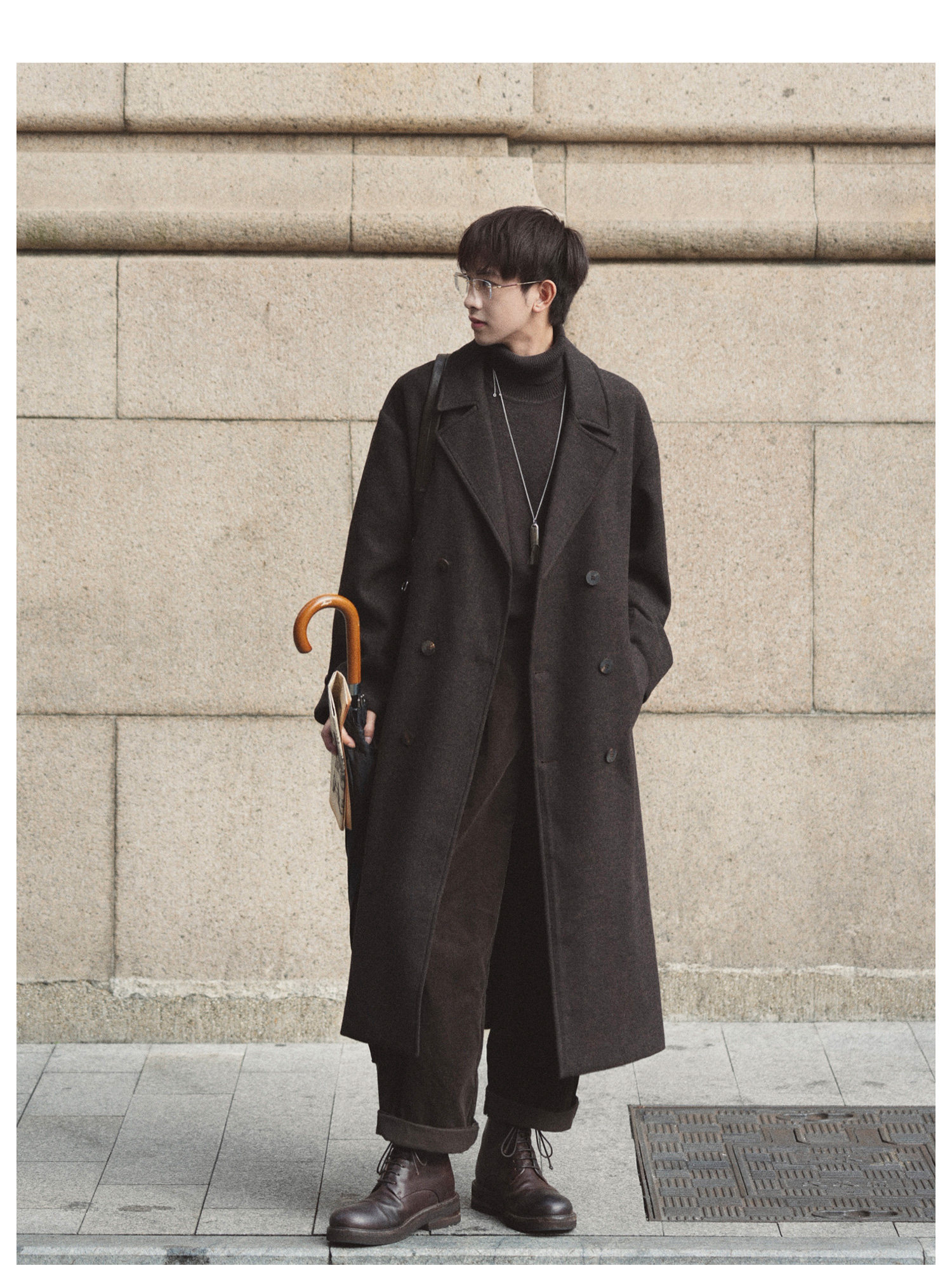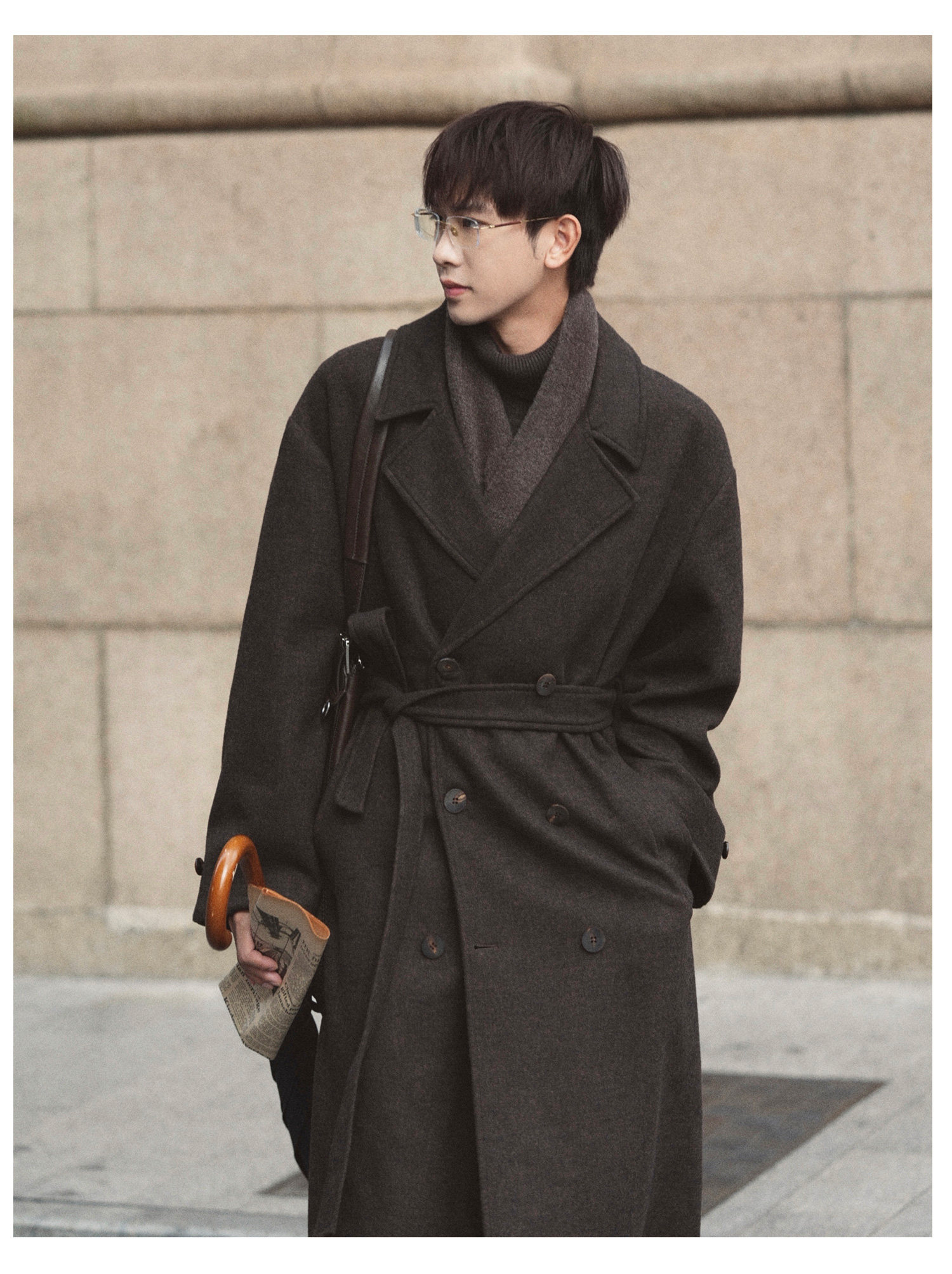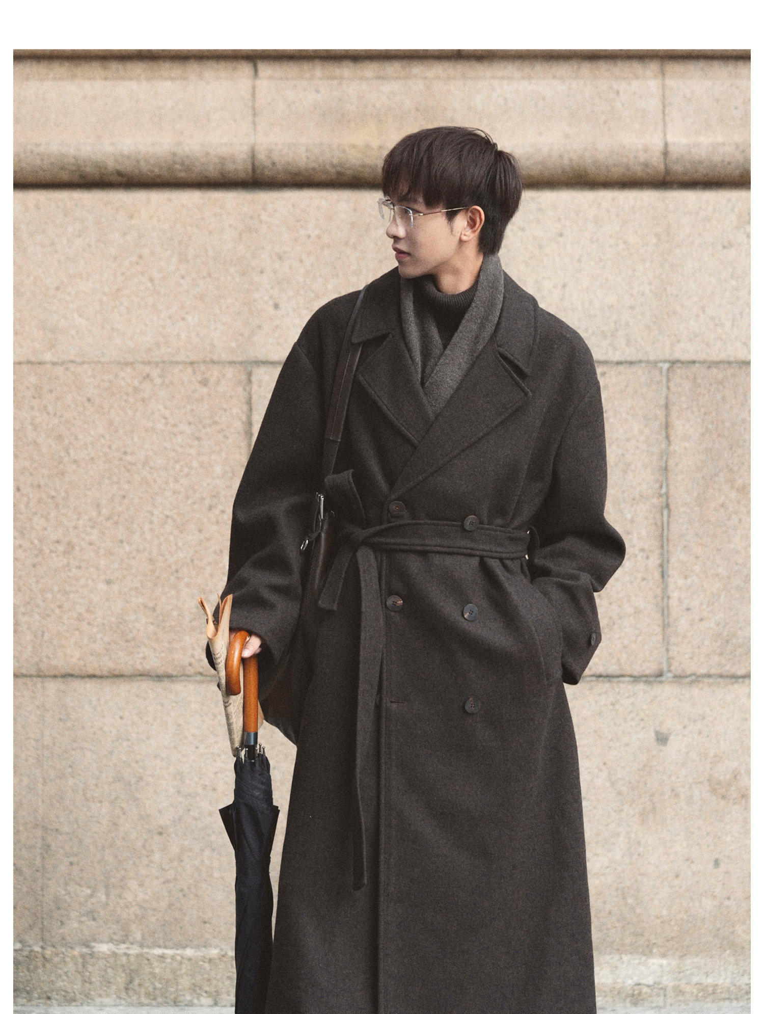 Eli【Oppenheimer】Hepburn-Style Wool Blend Lapel Movie-Inspired Silhouette Belted Double-Sided Wool Coat for Winter