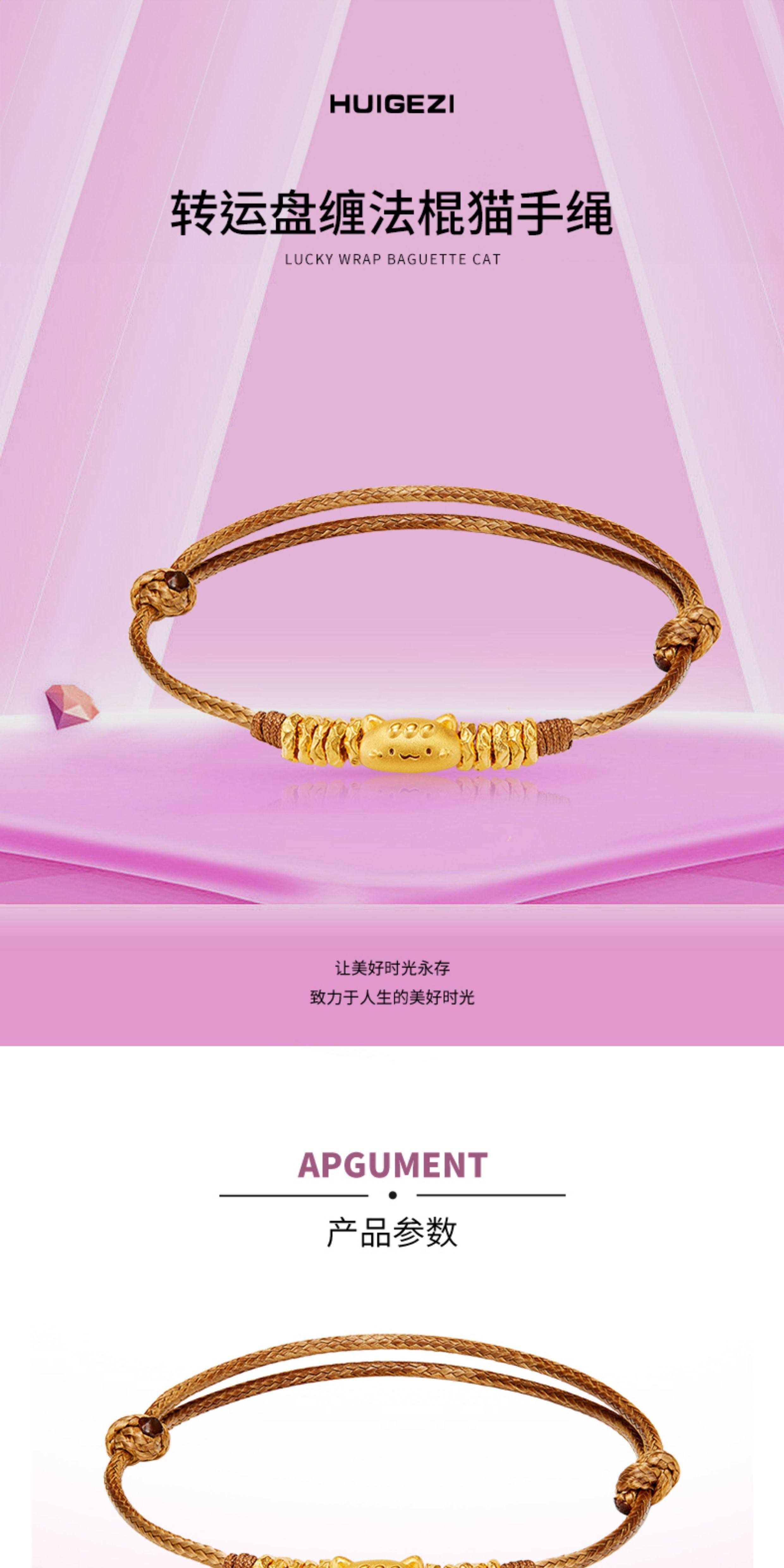 Huigezi Gold Baguette Cat Bracelet, Coiled Fashionable Braided Bracelet, 999 Pure Gold Bracelet, Gift for Girlfriend