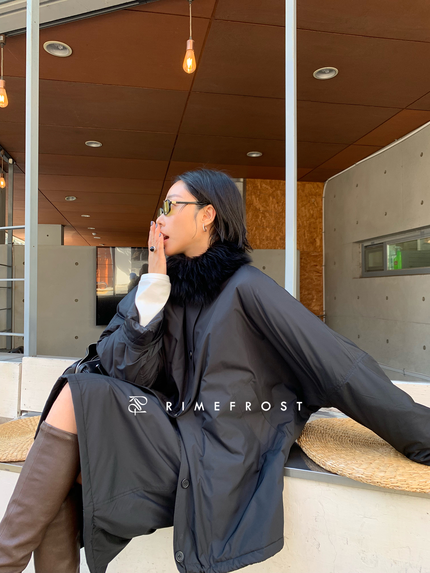 Rimefrost25/W Finnish Imported Blue Fox Fur Scarf/3M Cotton Loose Cotton Jacket/3M Cotton Skirt