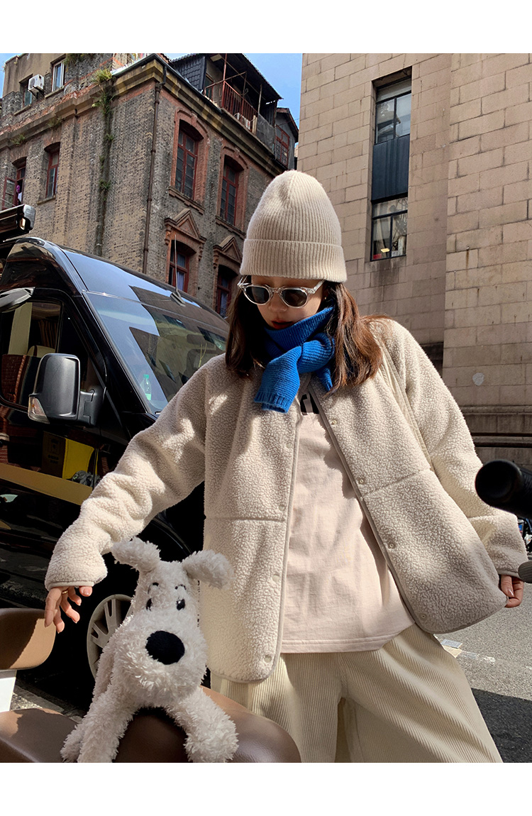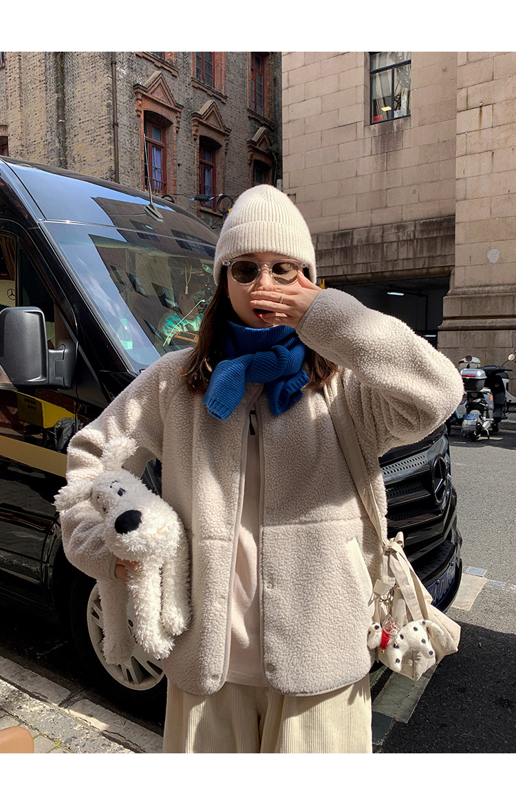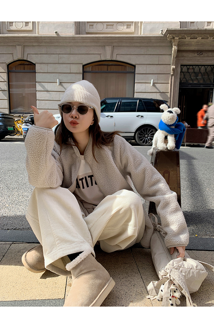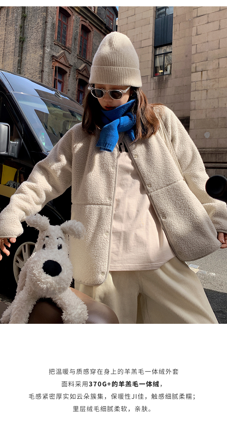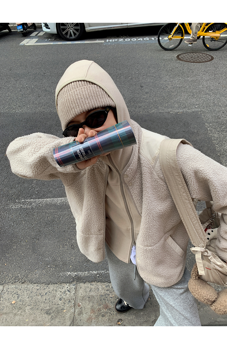 Libelin Sisy Sheep Baby Jacket for Girls 2025 Winter New Style 370g Imitation Lamb Wool Integrated Fleece Casual Top