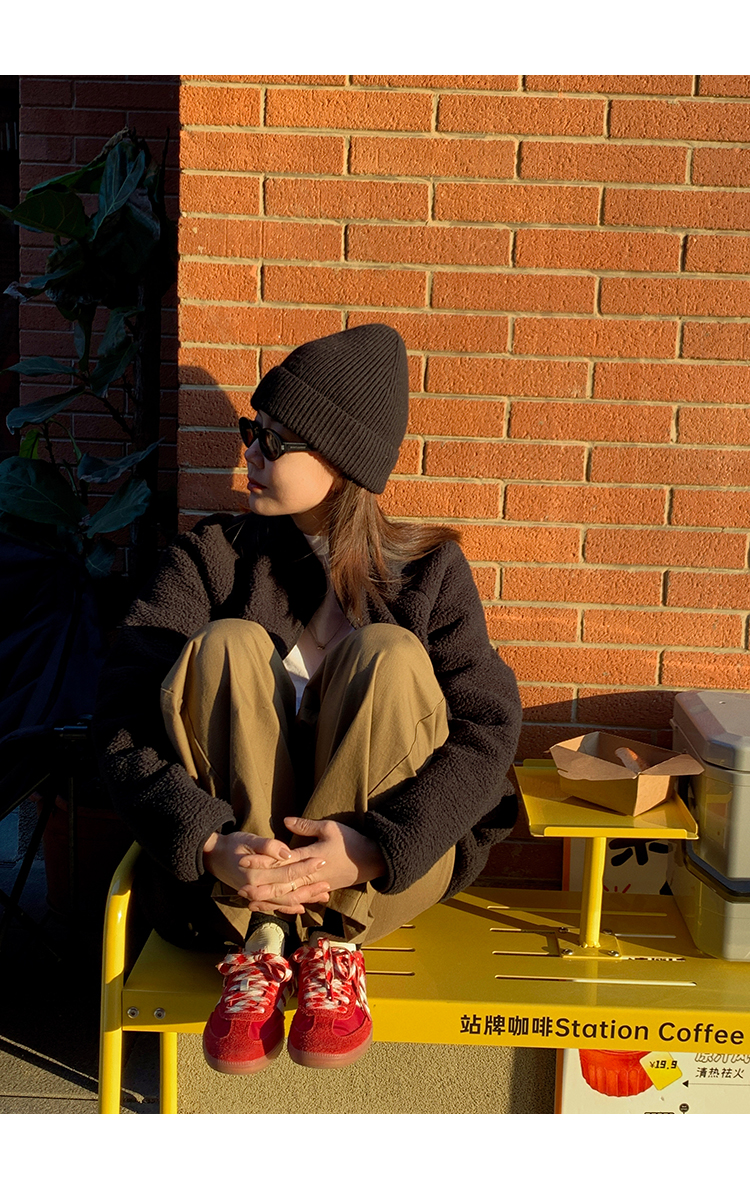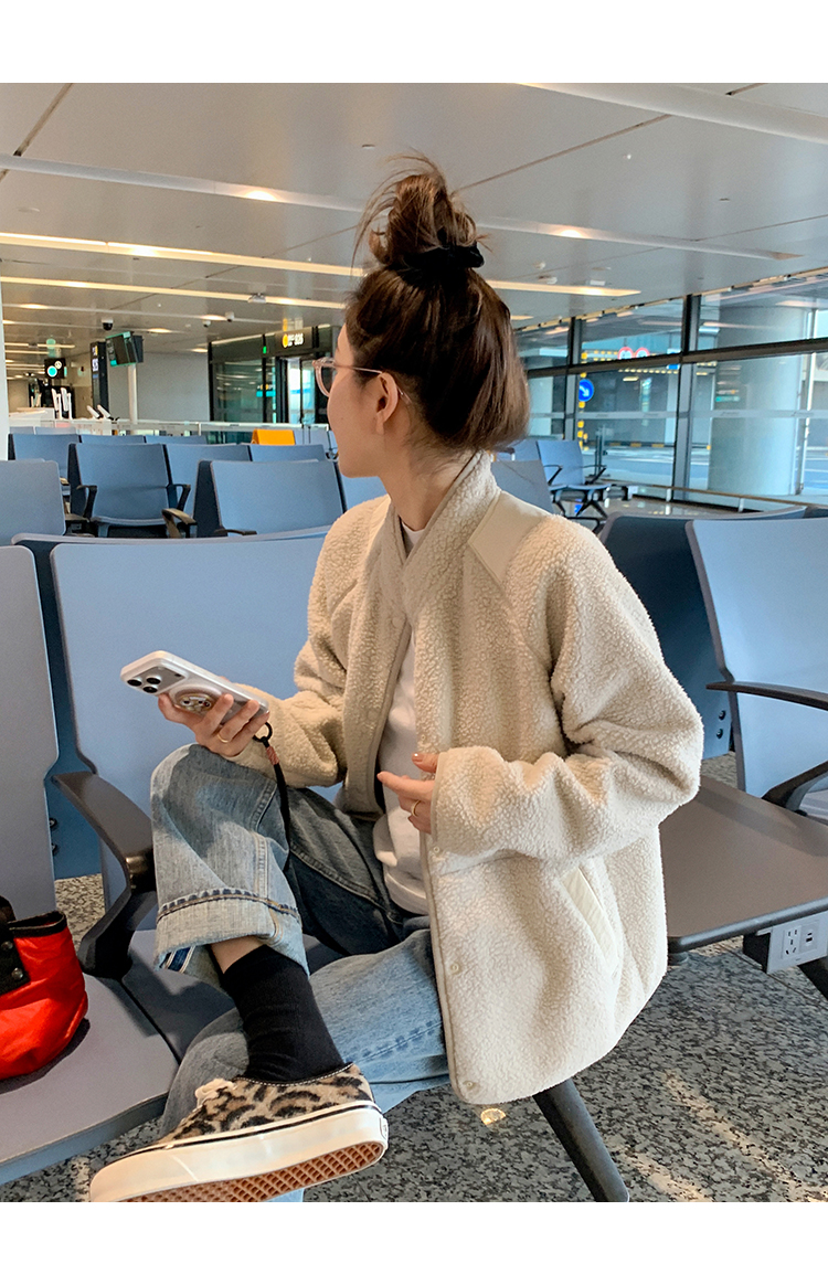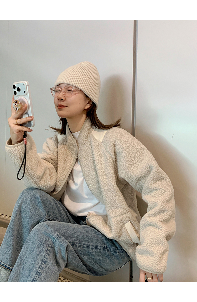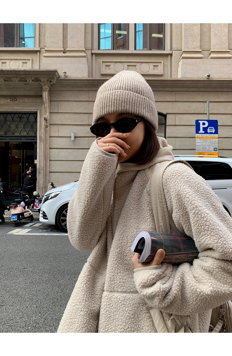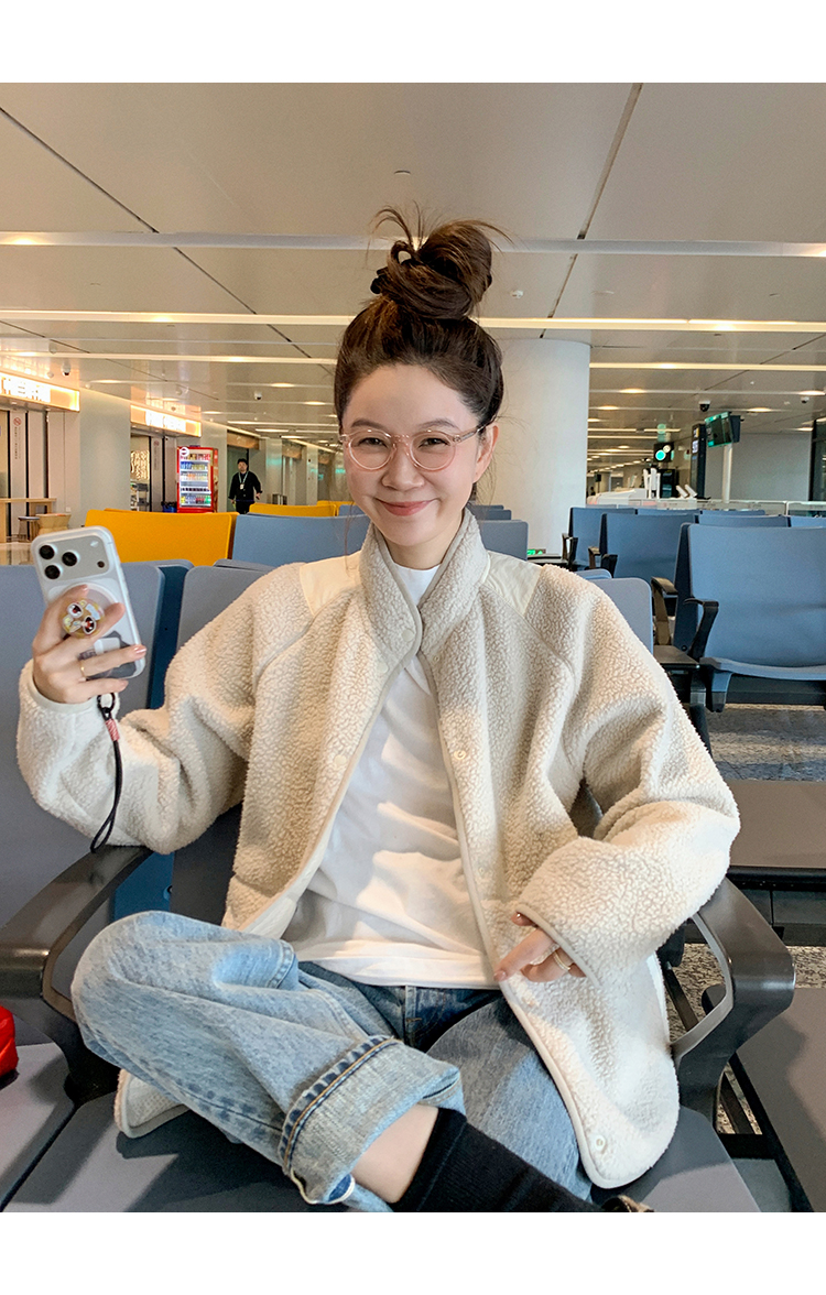 Libelin Sisy Sheep Baby Jacket for Girls 2025 Winter New Style 370g Imitation Lamb Wool Integrated Fleece Casual Top