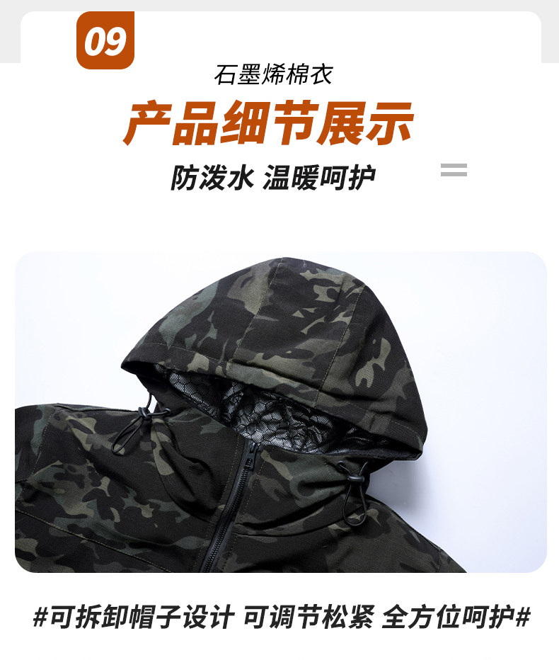 2025 New Graphene Winter Cotton Coat Camouflage Clothing for Men, Thickened and Warm Workwear Jacket, Windproof and Waterproof for Outdoor Use