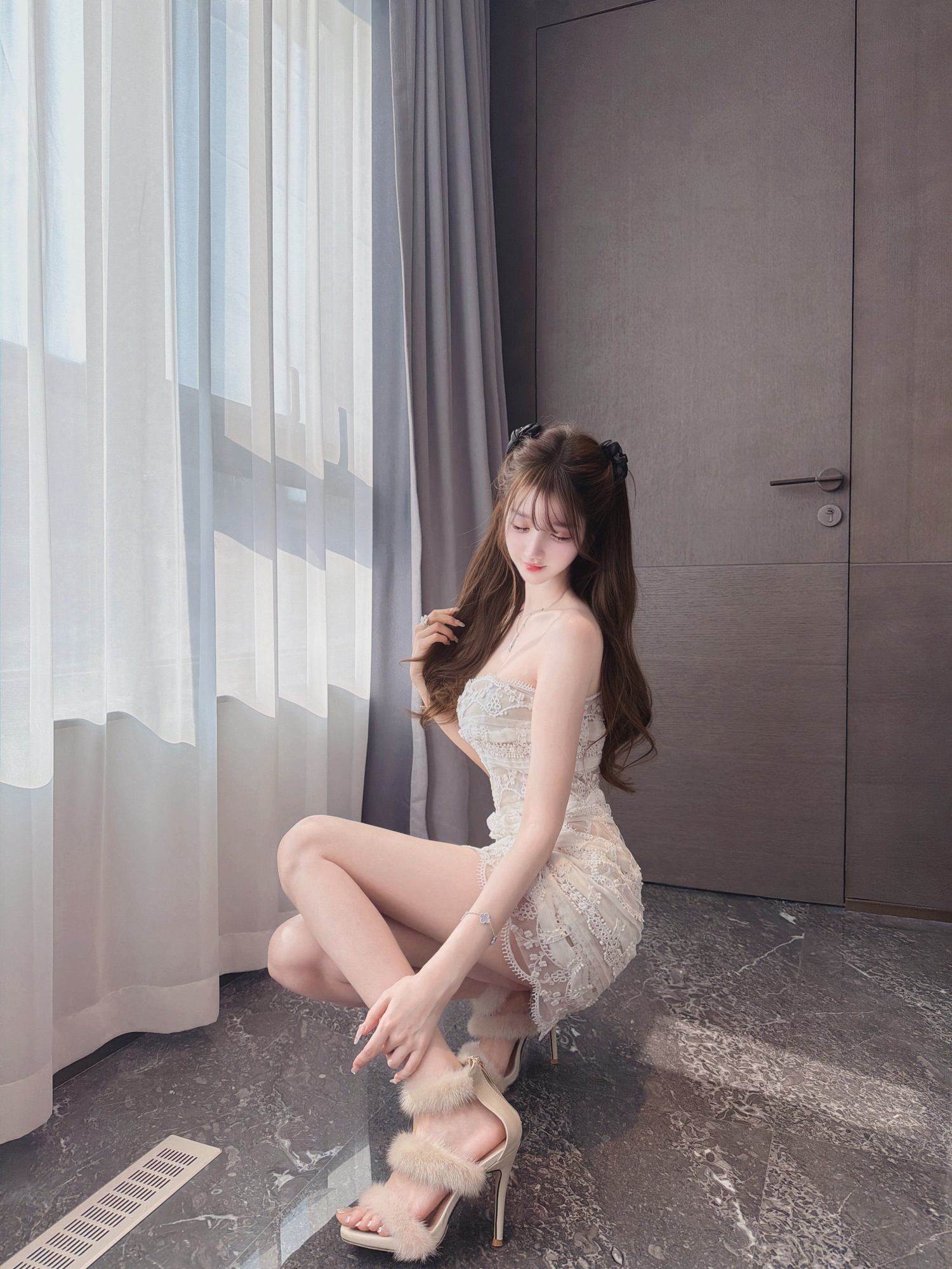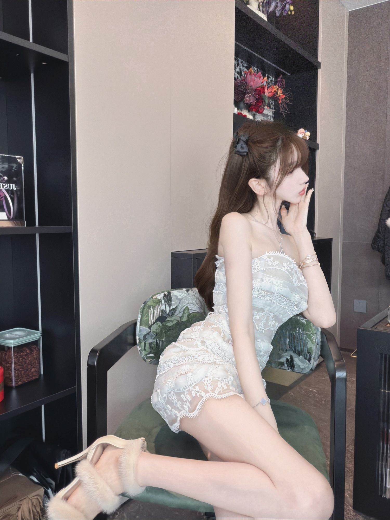 E*S* Palace-Level Artwork* Pure Handmade Silk Ribbon~ Embroidered Strapless Fishbone Mini Dress