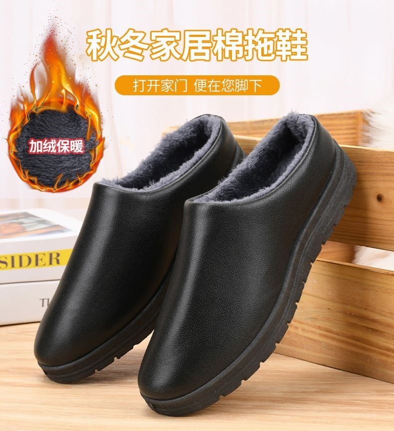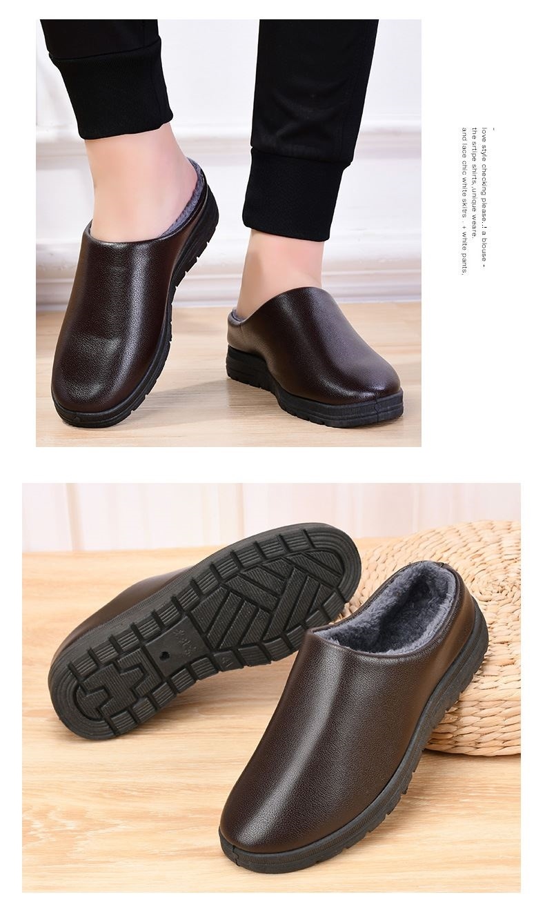 Autumn and Winter Cotton Slippers with Heel for Men and Couples, Indoor Home Use, Warm Home Slippers, Pu Fur Slippers for Women in Winter