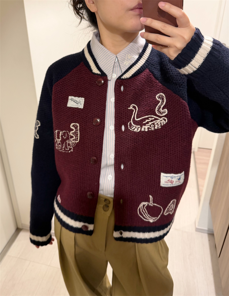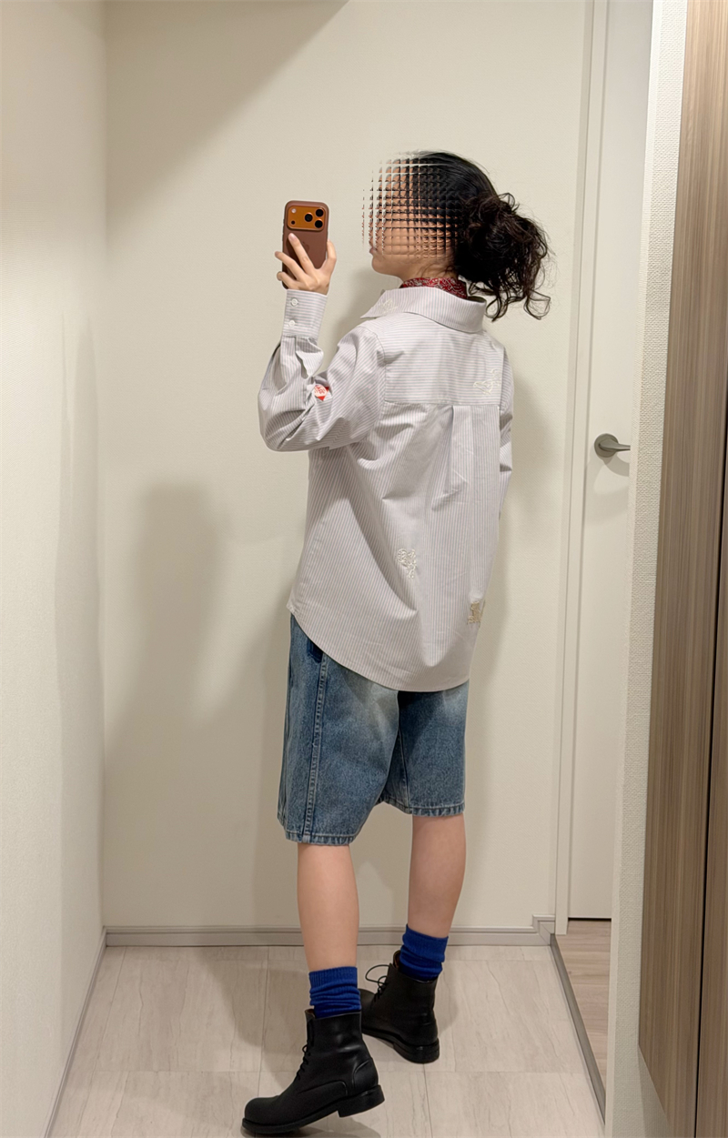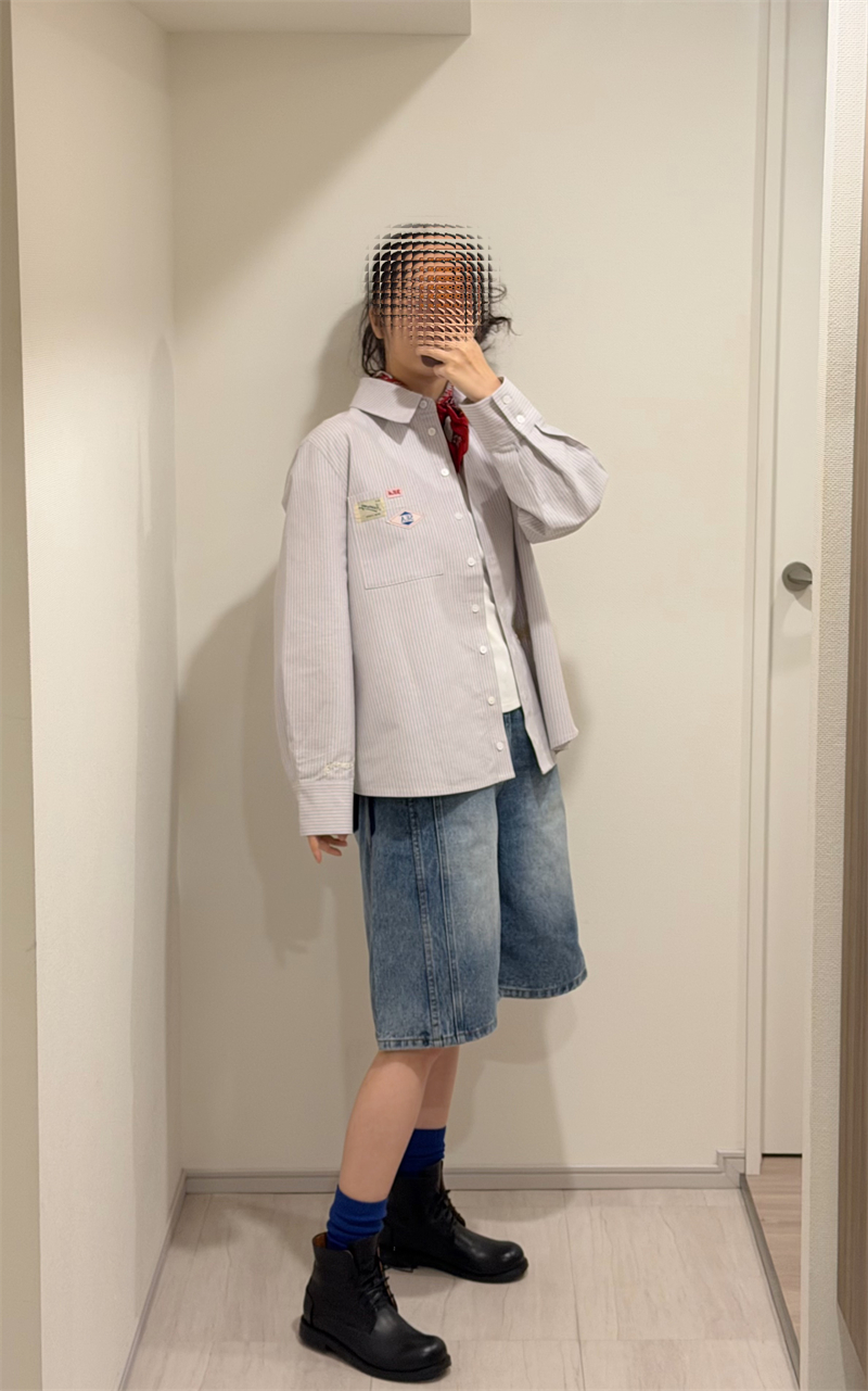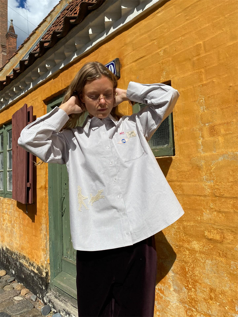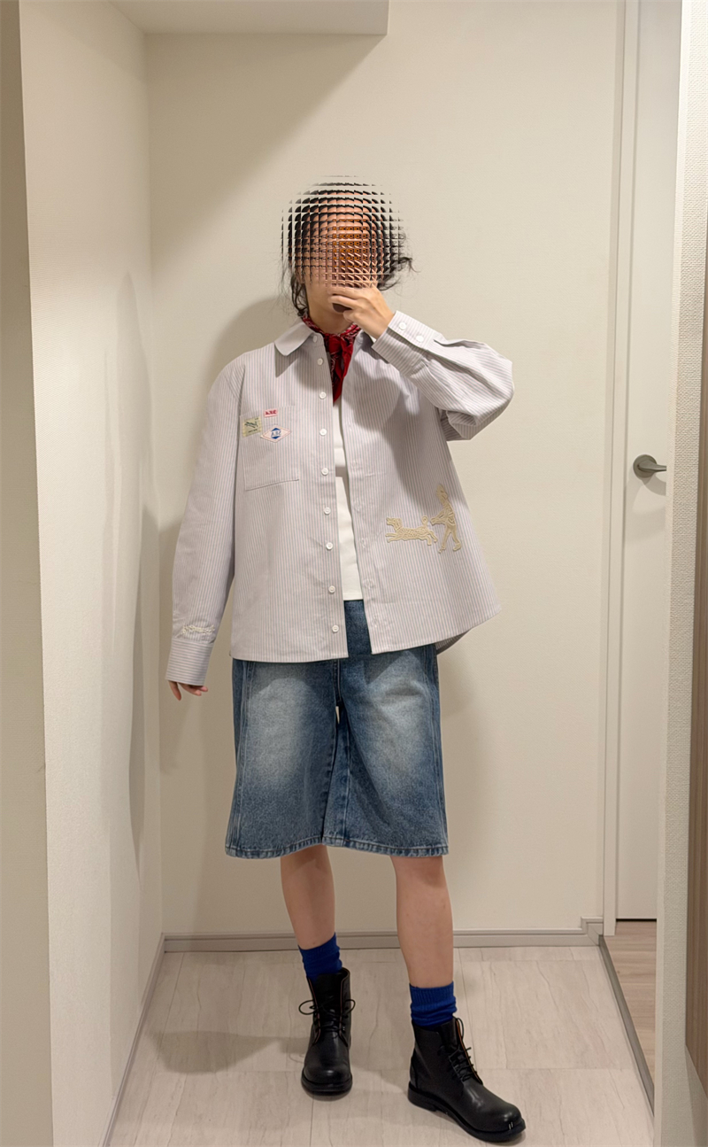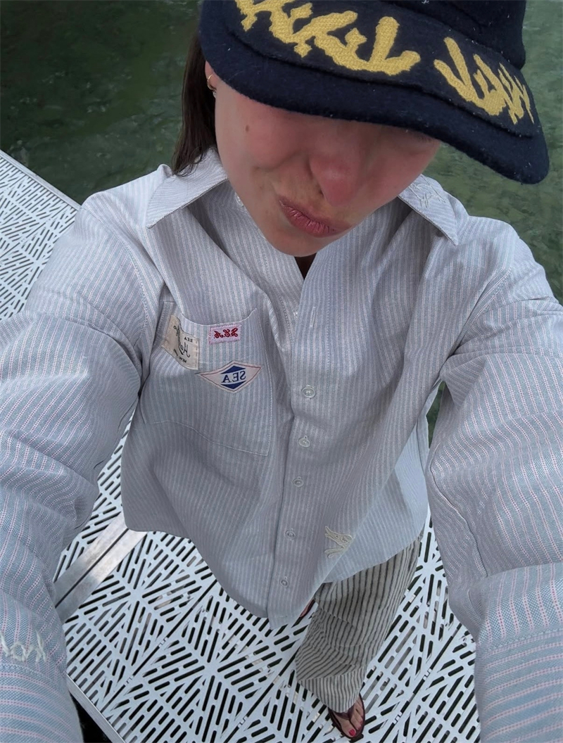Old-Fashioned Letter-Style Brand Se@ Custom-Woven Blue, White, and Red Striped Oxford Fabric Embroidered Hand-Stitched Label Single-Breasted Long-Sleeve Shirt