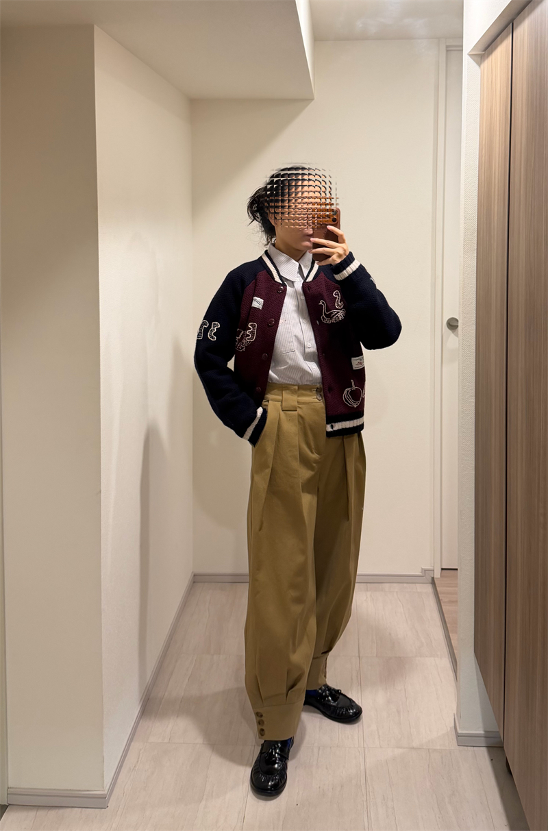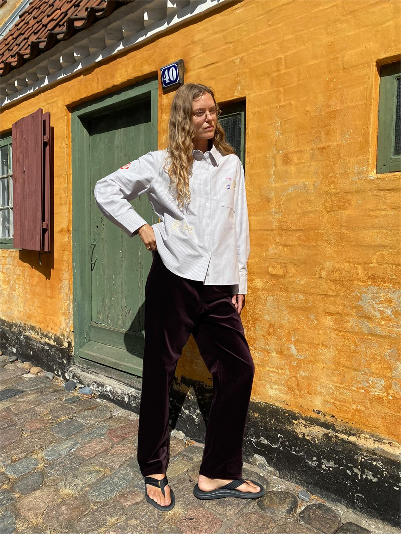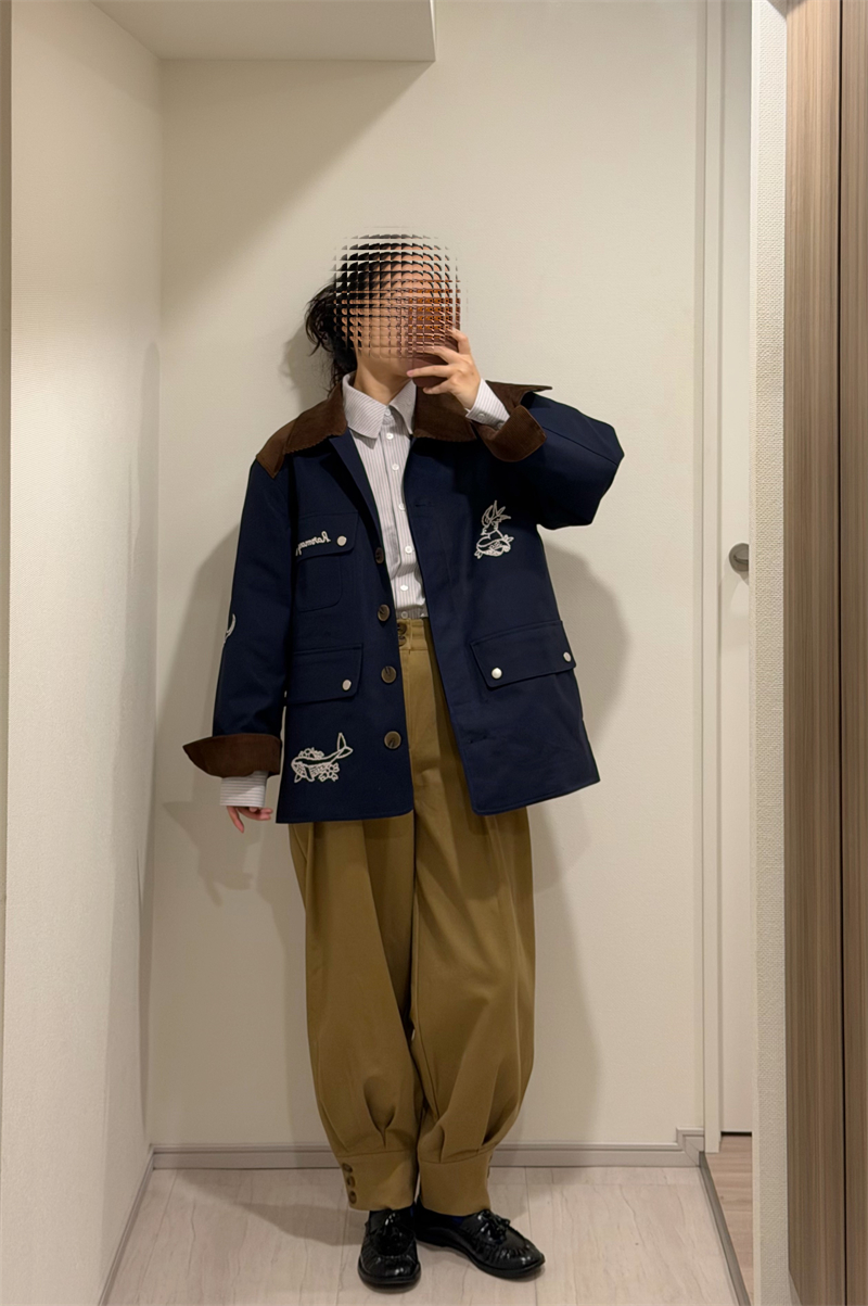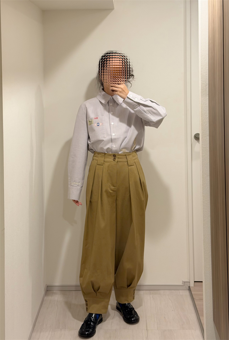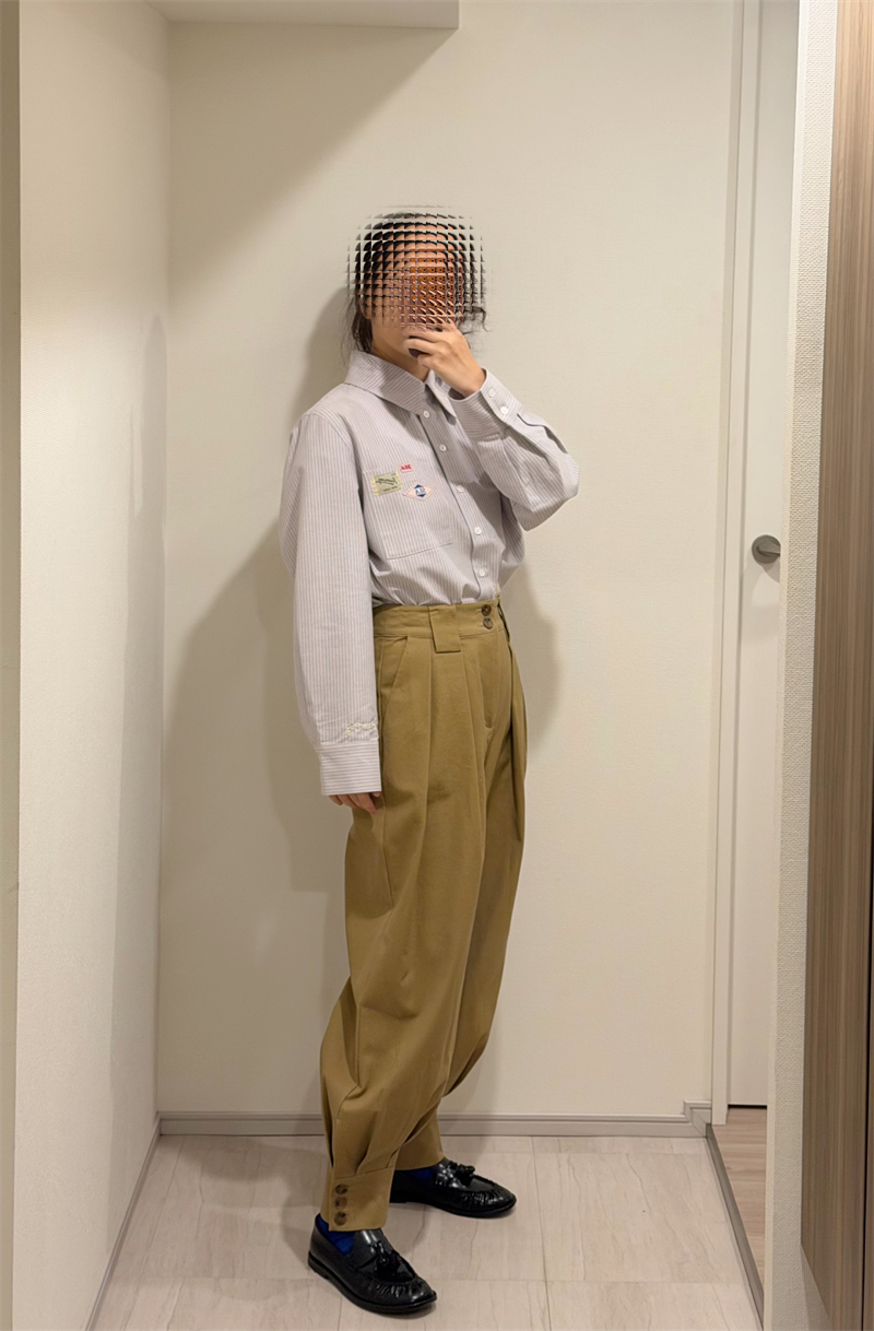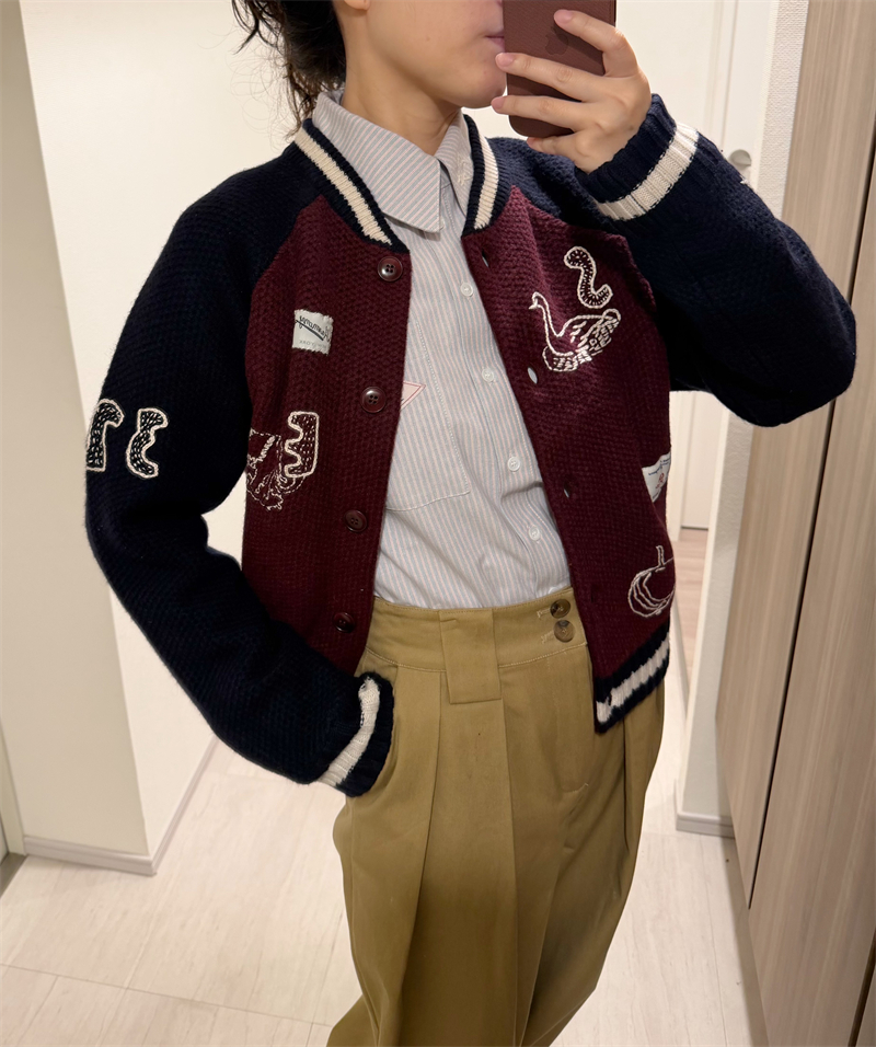 Old-Fashioned Letter-Style Brand Se@ Custom-Woven Blue, White, and Red Striped Oxford Fabric Embroidered Hand-Stitched Label Single-Breasted Long-Sleeve Shirt