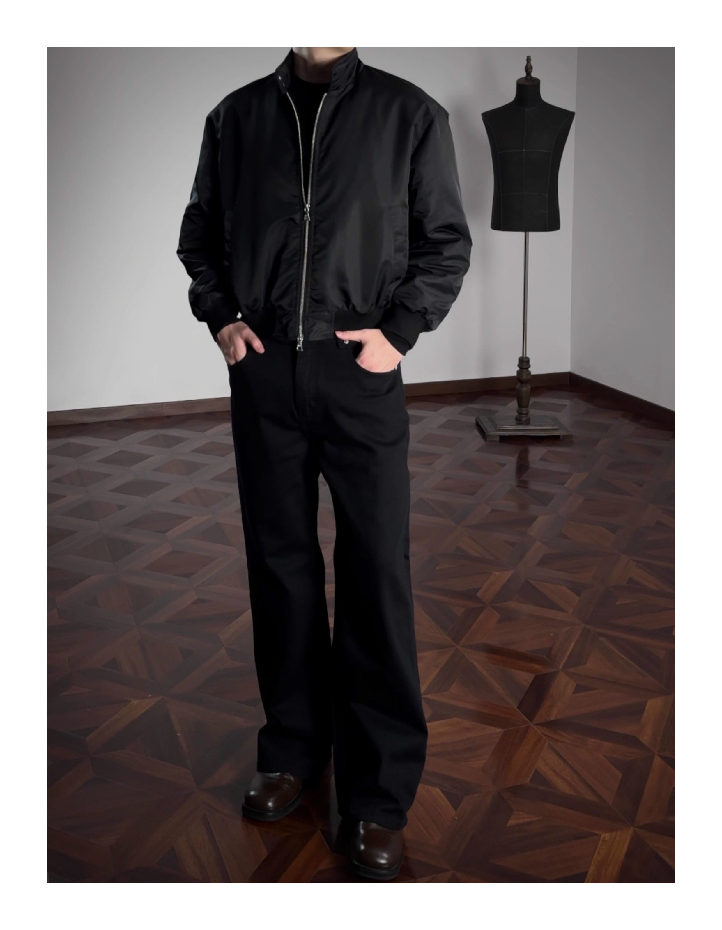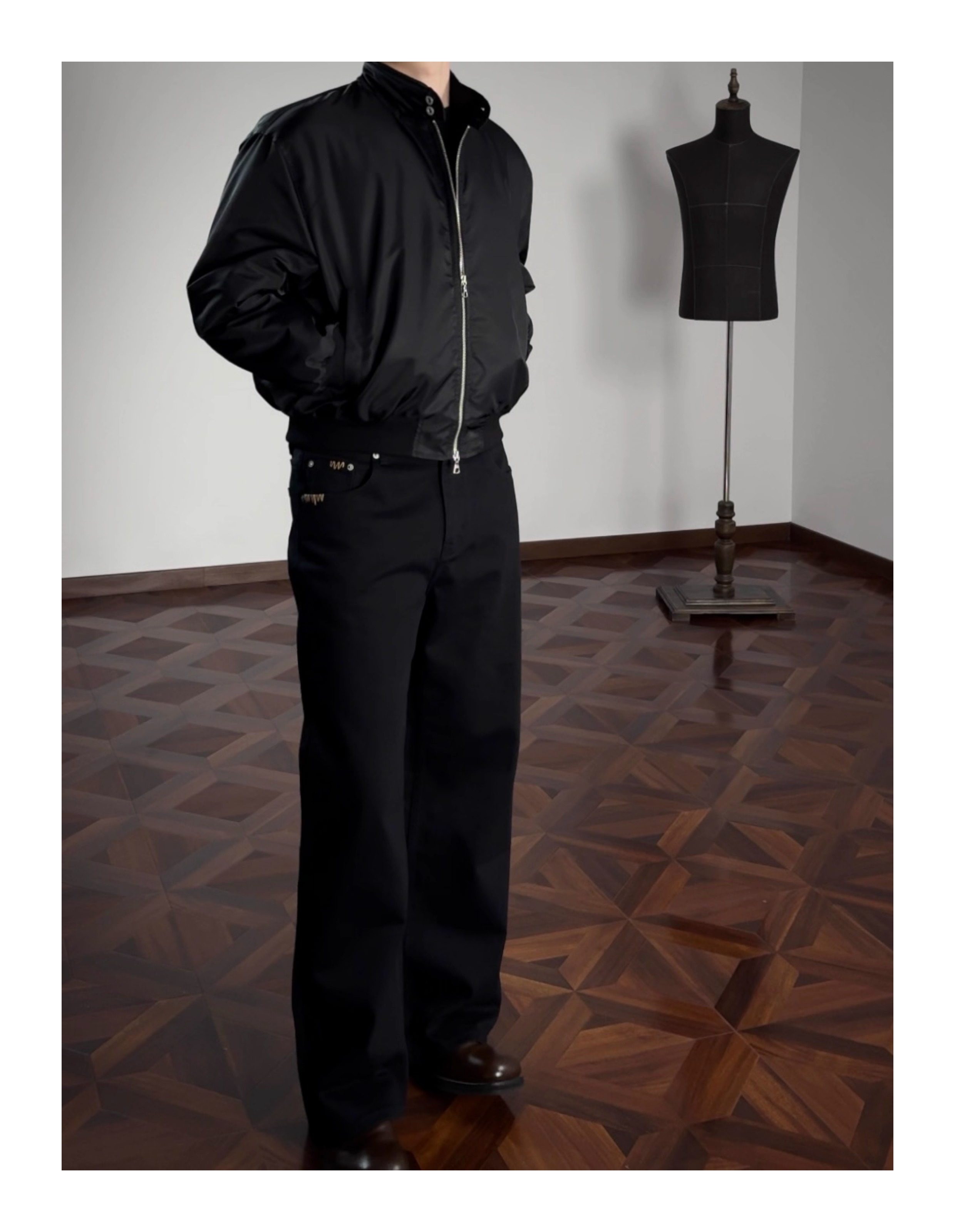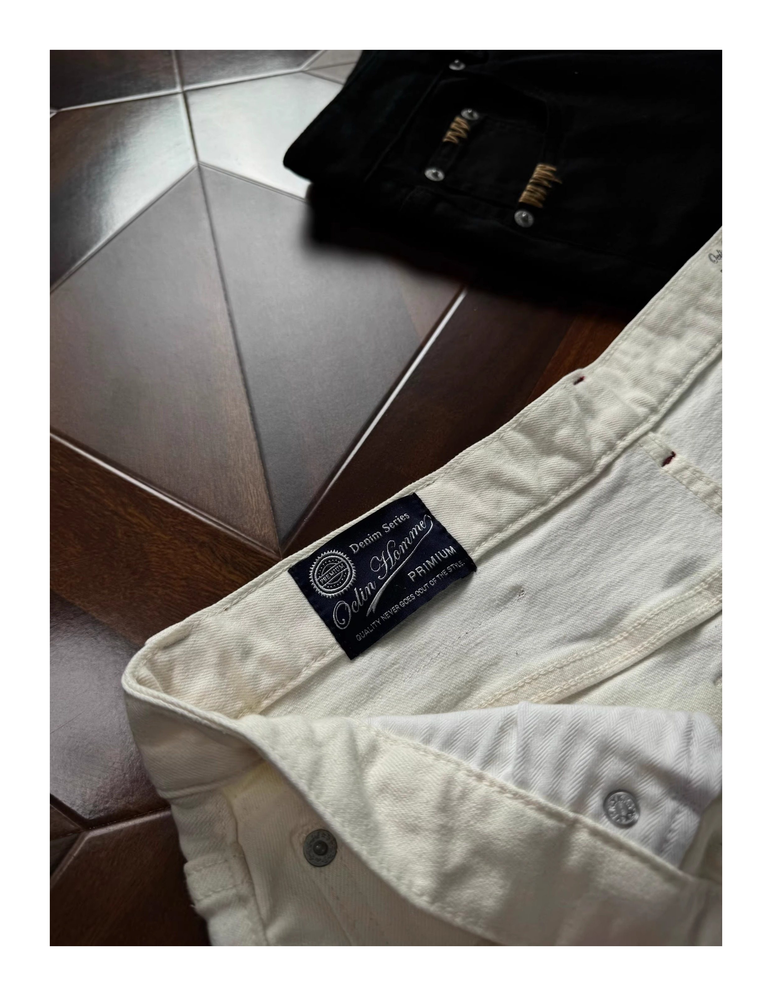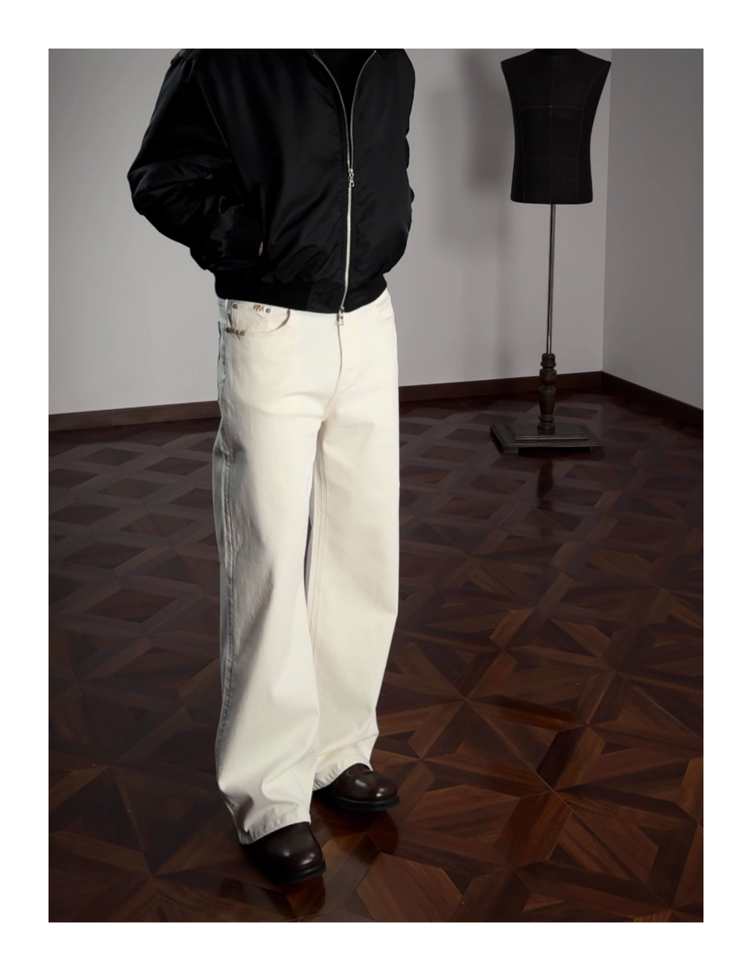 Oclin Master Collaboration 008 Hand-Stitched Black and White Kanglong Cow A-Line Lightly Washed Textured Slightly Stretch Denim Jeans