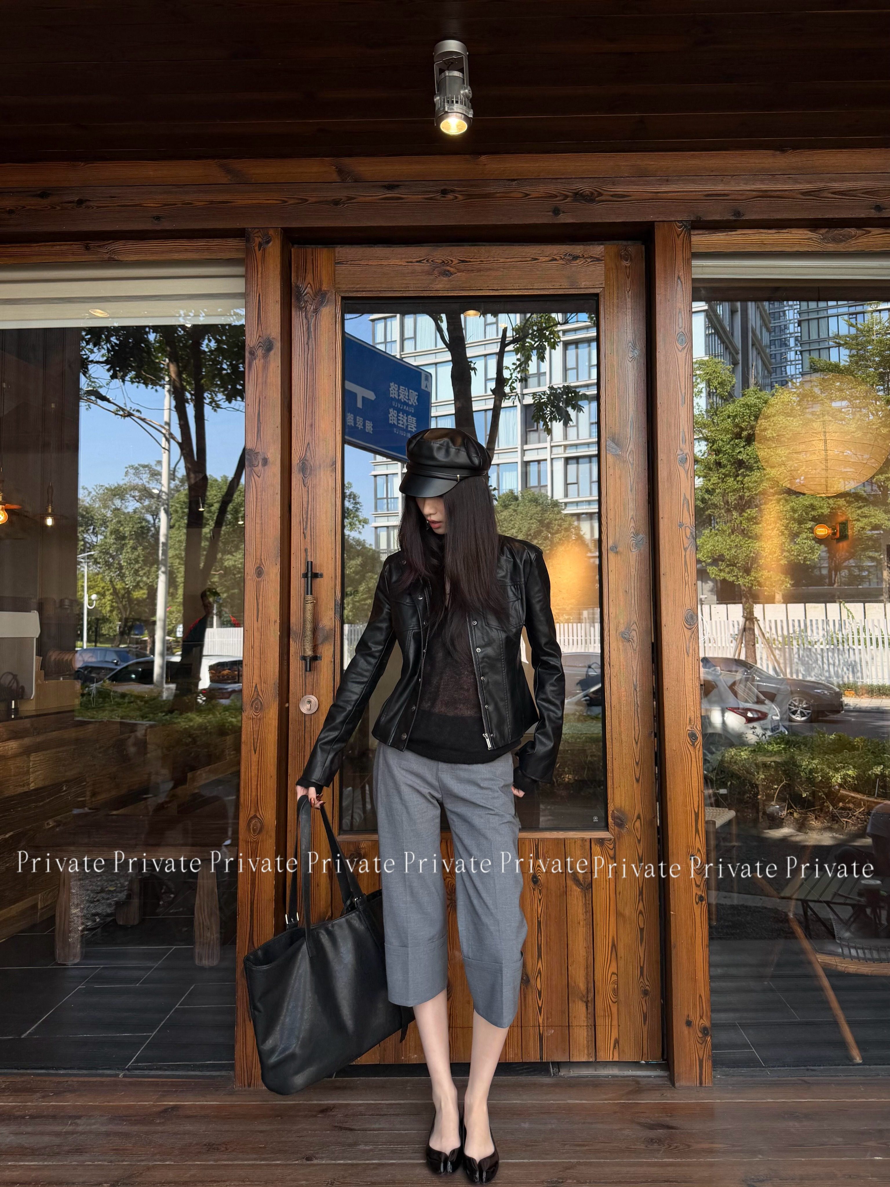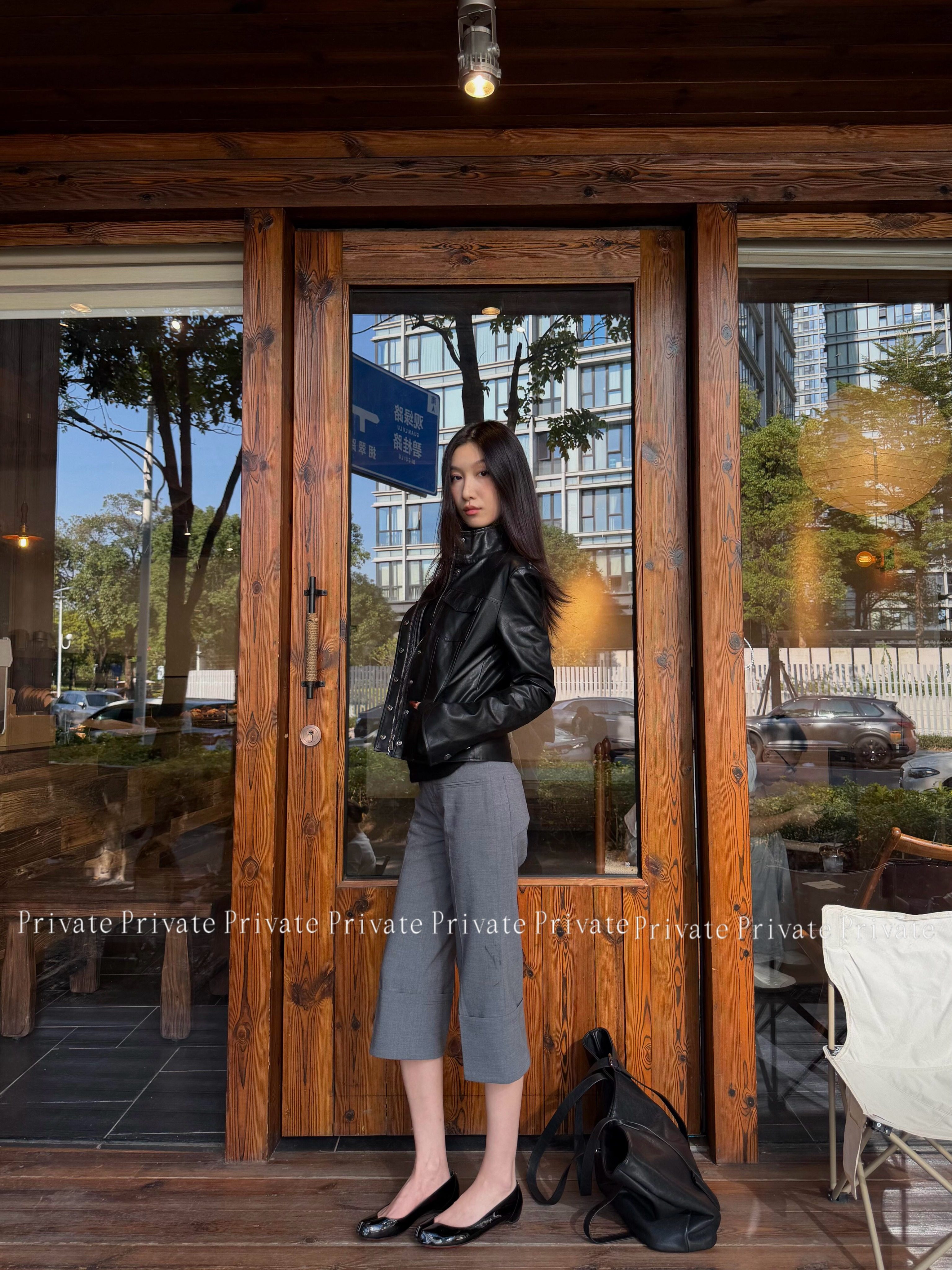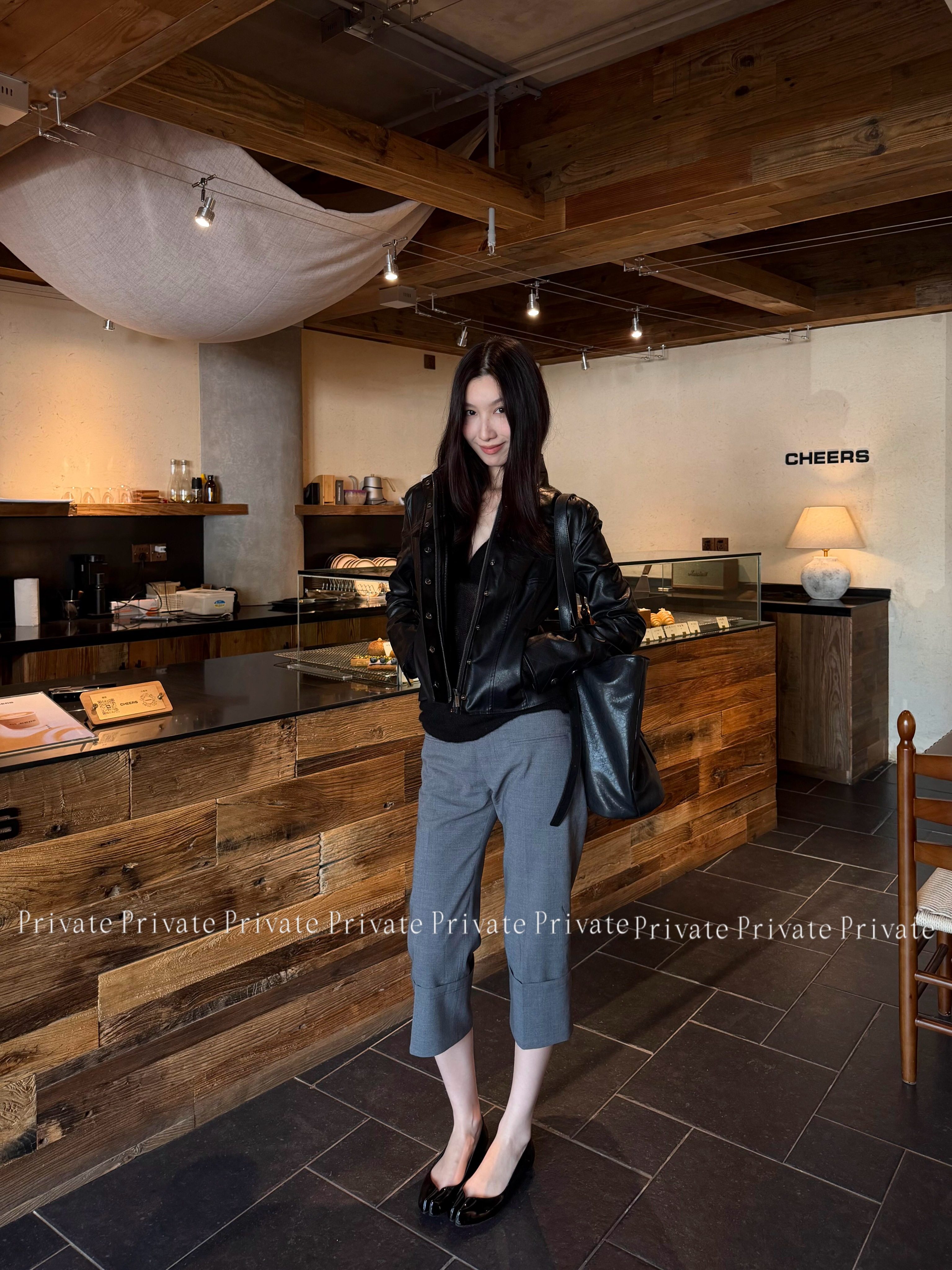 Correct Version, Refundable if Defective】Gray Cropped Trousers with Raw Edge Design, Double Pockets, and a Structured Cuff