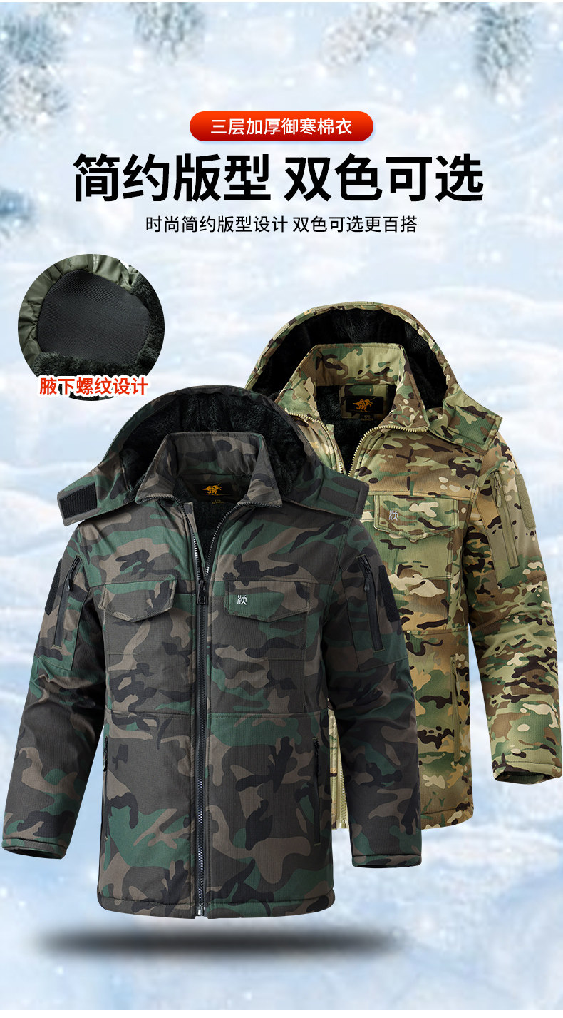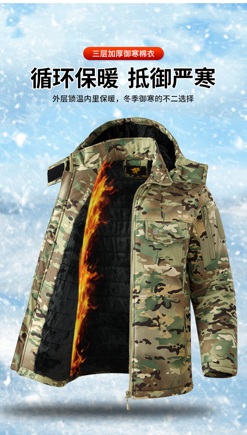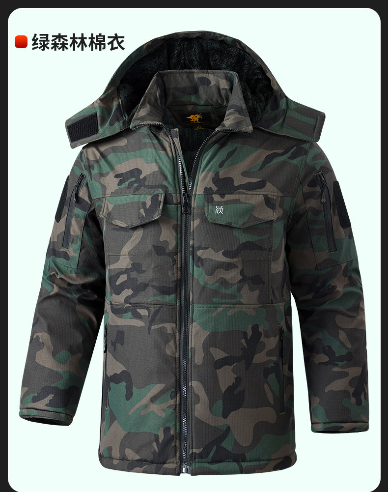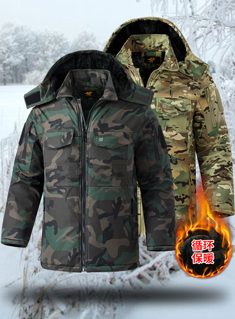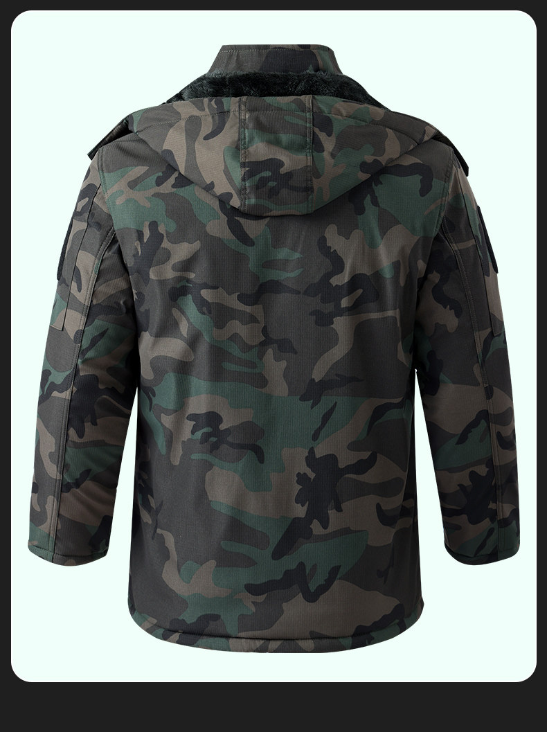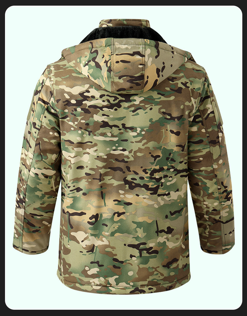 Winter Fleece-Lined Thickened Tactical Camouflage Cotton Coat for Men, Waterproof, Cold-Resistant, Durable, Warm Outdoor Cotton Jacket