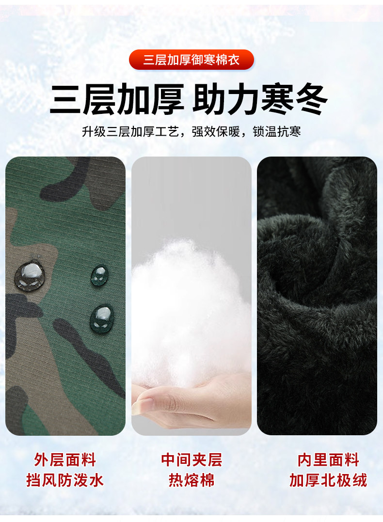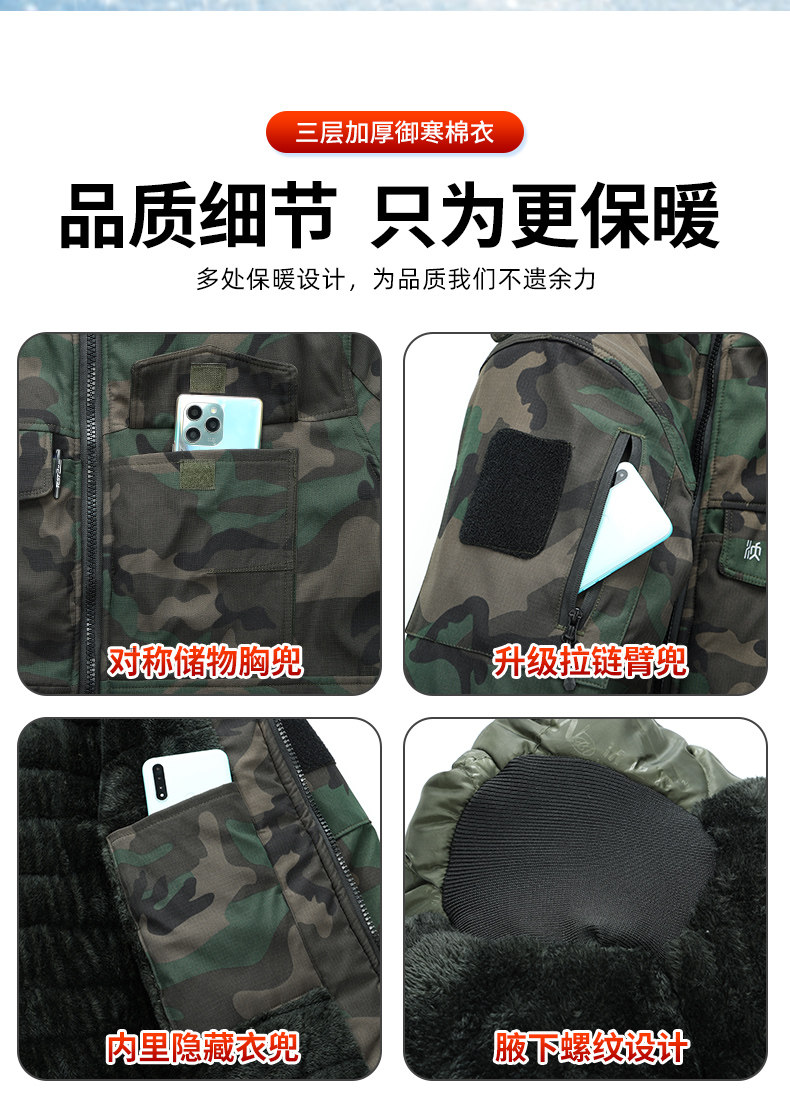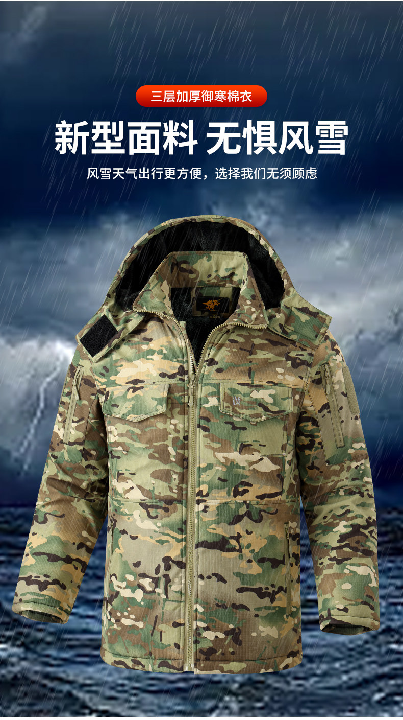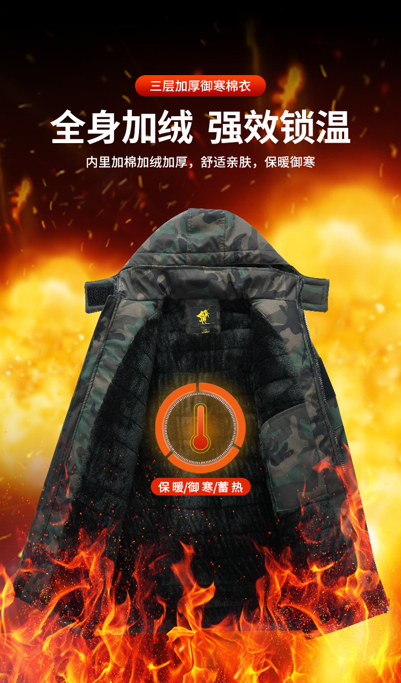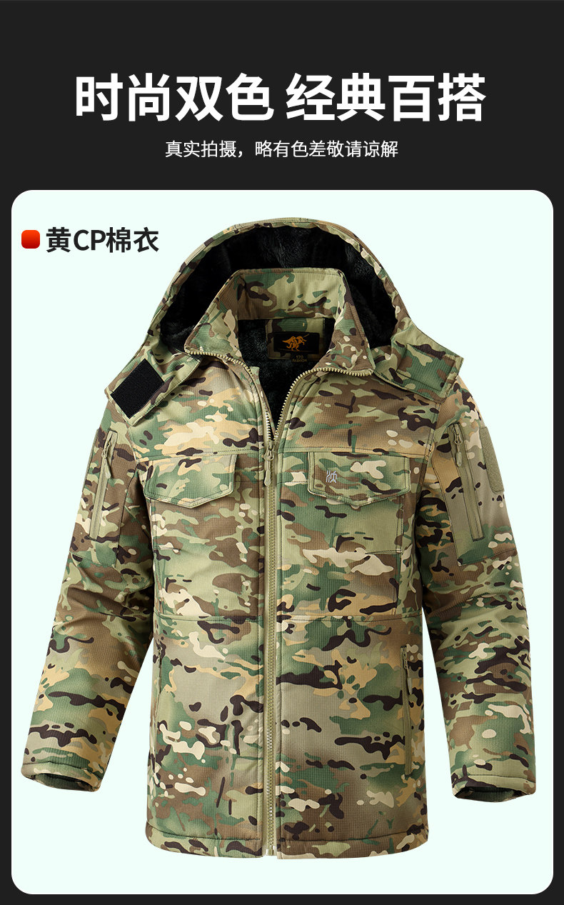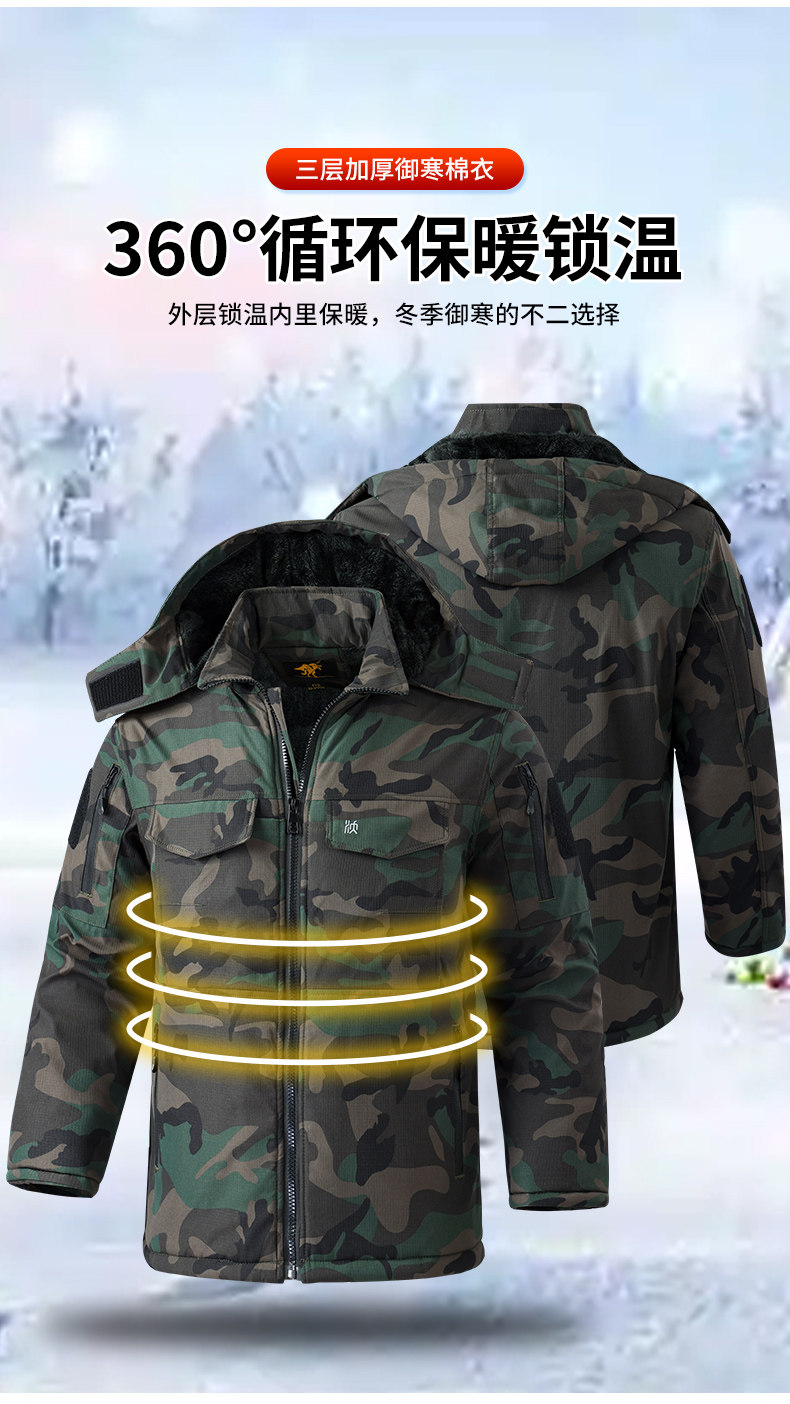 Winter Fleece-Lined Thickened Tactical Camouflage Cotton Coat for Men, Waterproof, Cold-Resistant, Durable, Warm Outdoor Cotton Jacket