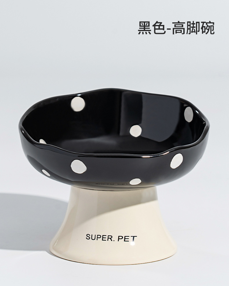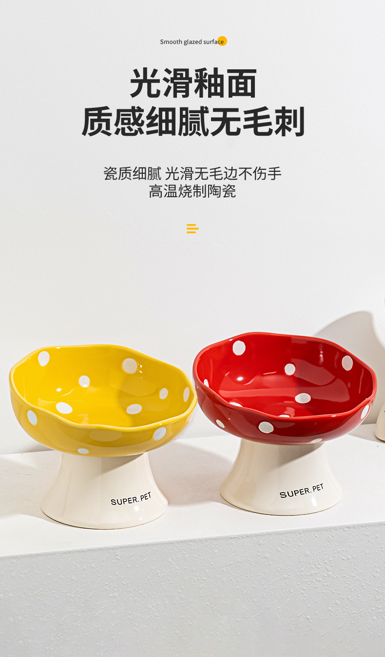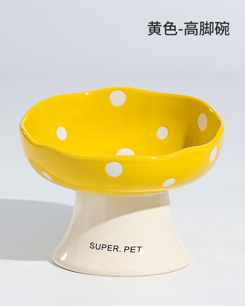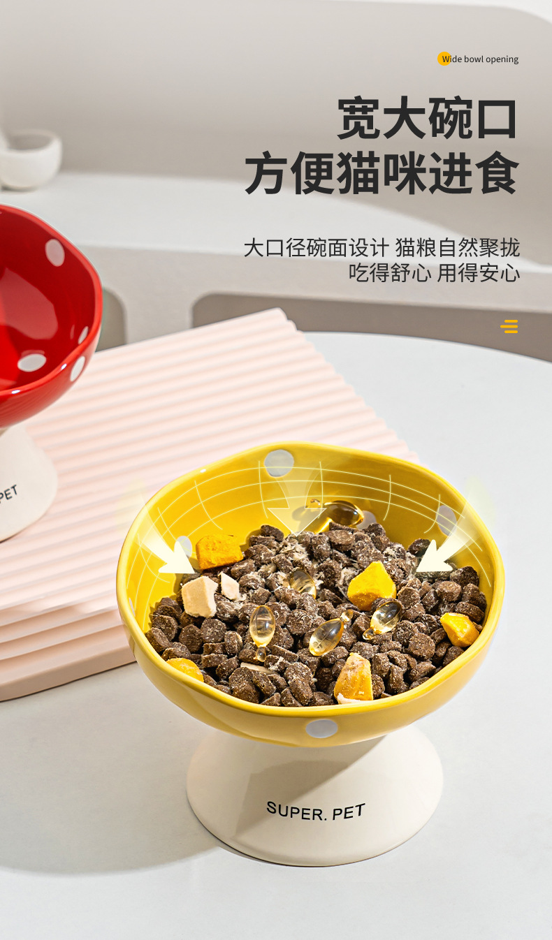 Cat Bowl, Ceramic Bowl, Large Diameter Cat Food Bowl, Ceramic Slanted Bowl, Anti-Spill, Anti-Black Chin, Mushroom-Shaped Elevated Cat Bowl