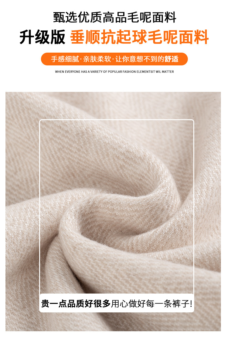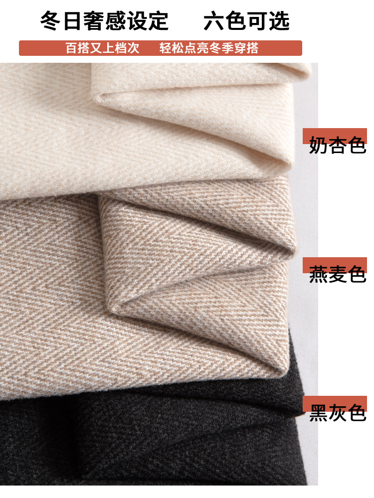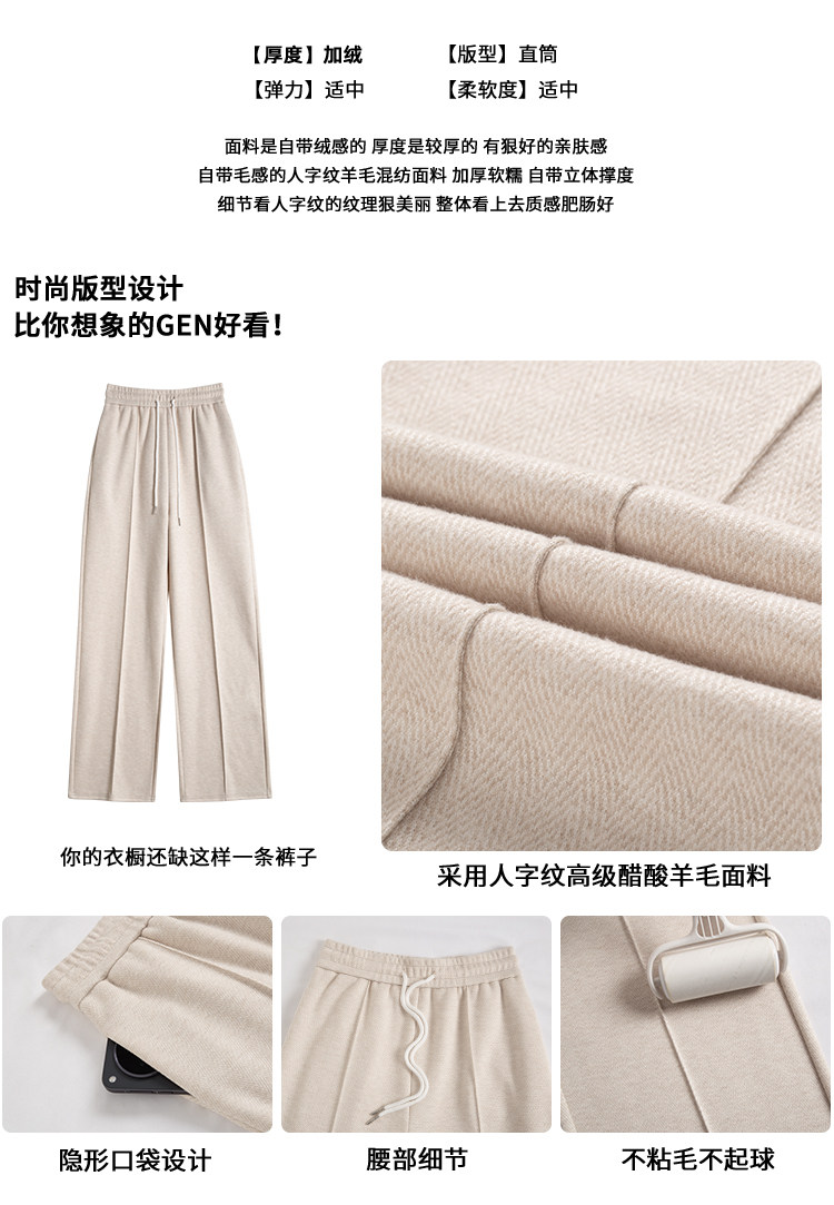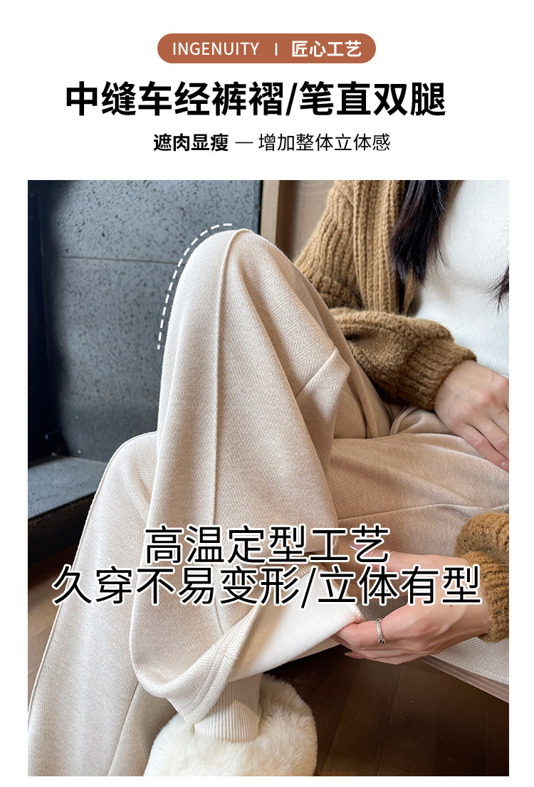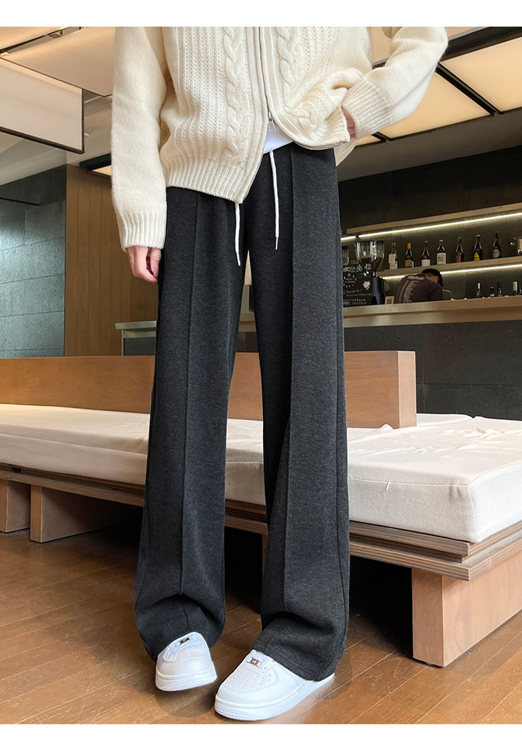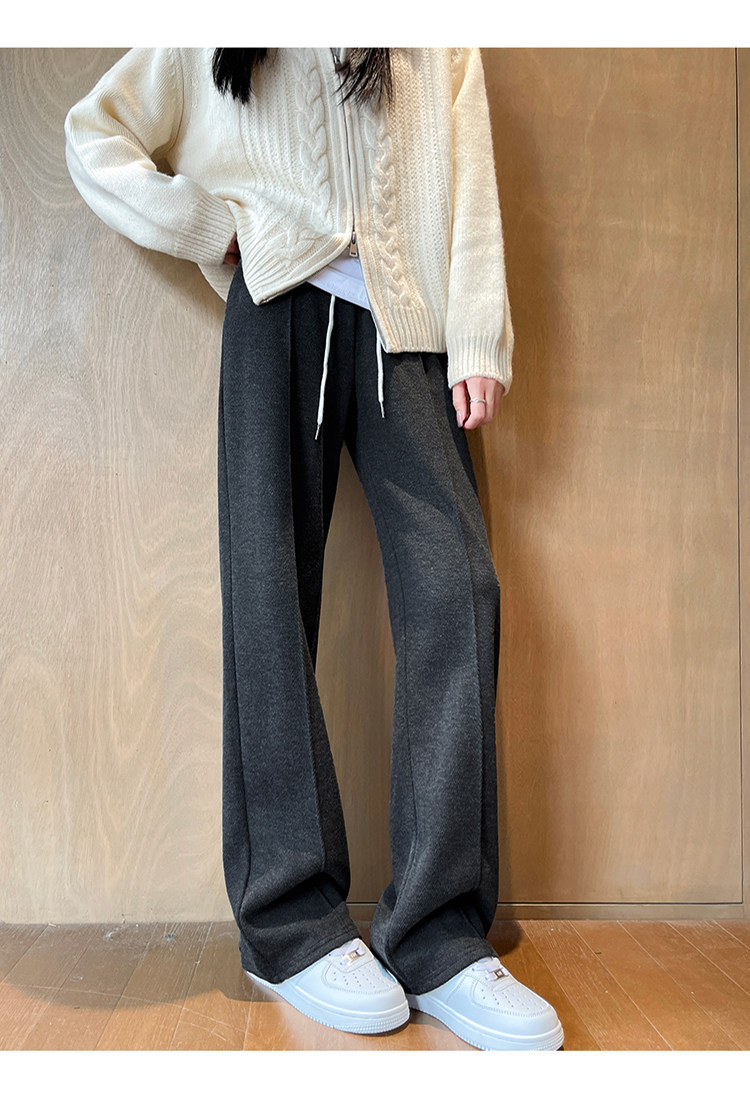 Narrow Wide-Leg Pants for Women, Winter, Petite, Casual, Fleece-Lined, Thickened Sweatpants, Herringbone Woolen, Glutinous Rice Straight-Leg Pants