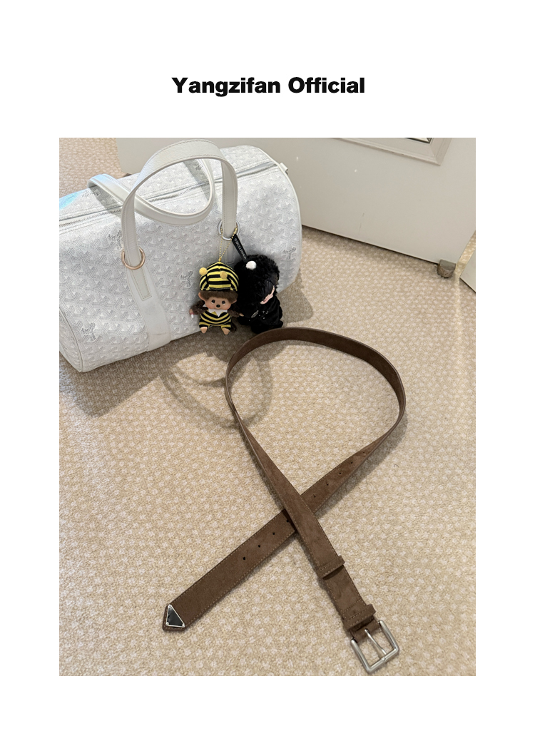 Yangzifan P Brand Frosted Suede Triangular Logo Vintage Belt for Women, High-End Accessory