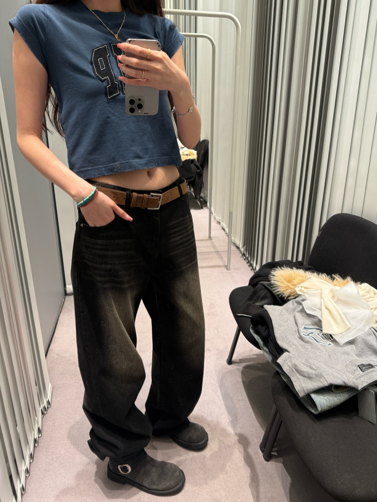 扣针结构顺滑牢固腰带尾部缀有黑色金属三角片