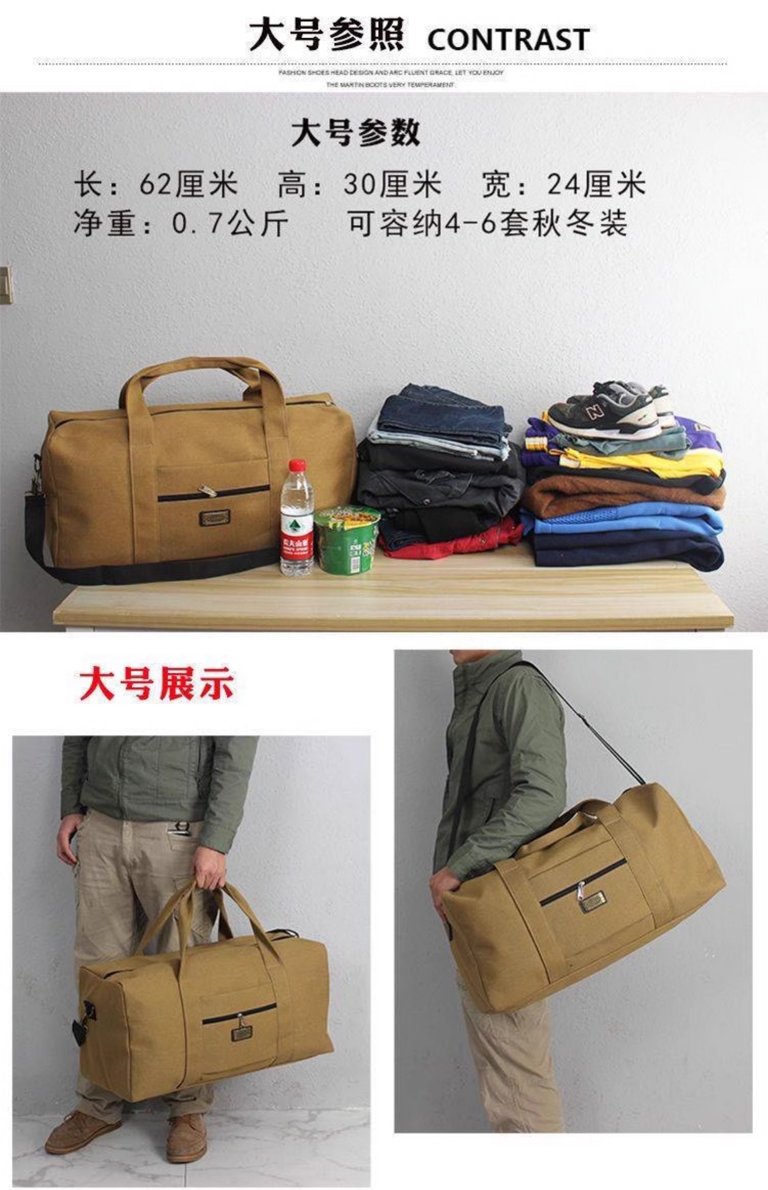 Canvas Handbag, Large-Capacity, Wear-Resistant Luggage Bag, Shoulder Cross-Body Travel Bag, Work and Business Trip Bag, Outdoor Travel Bag
