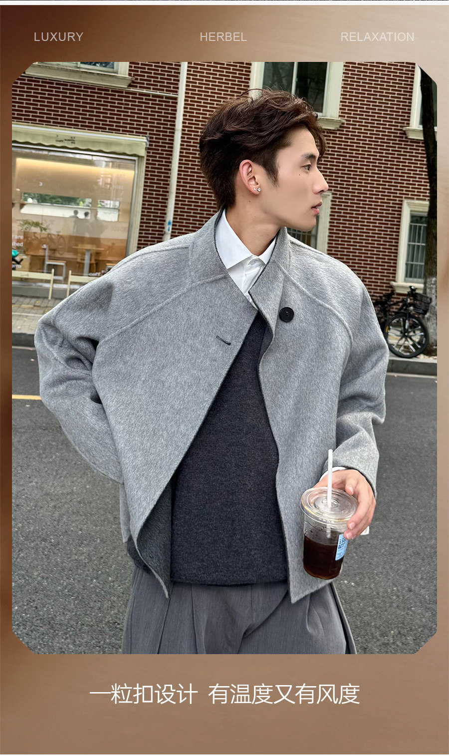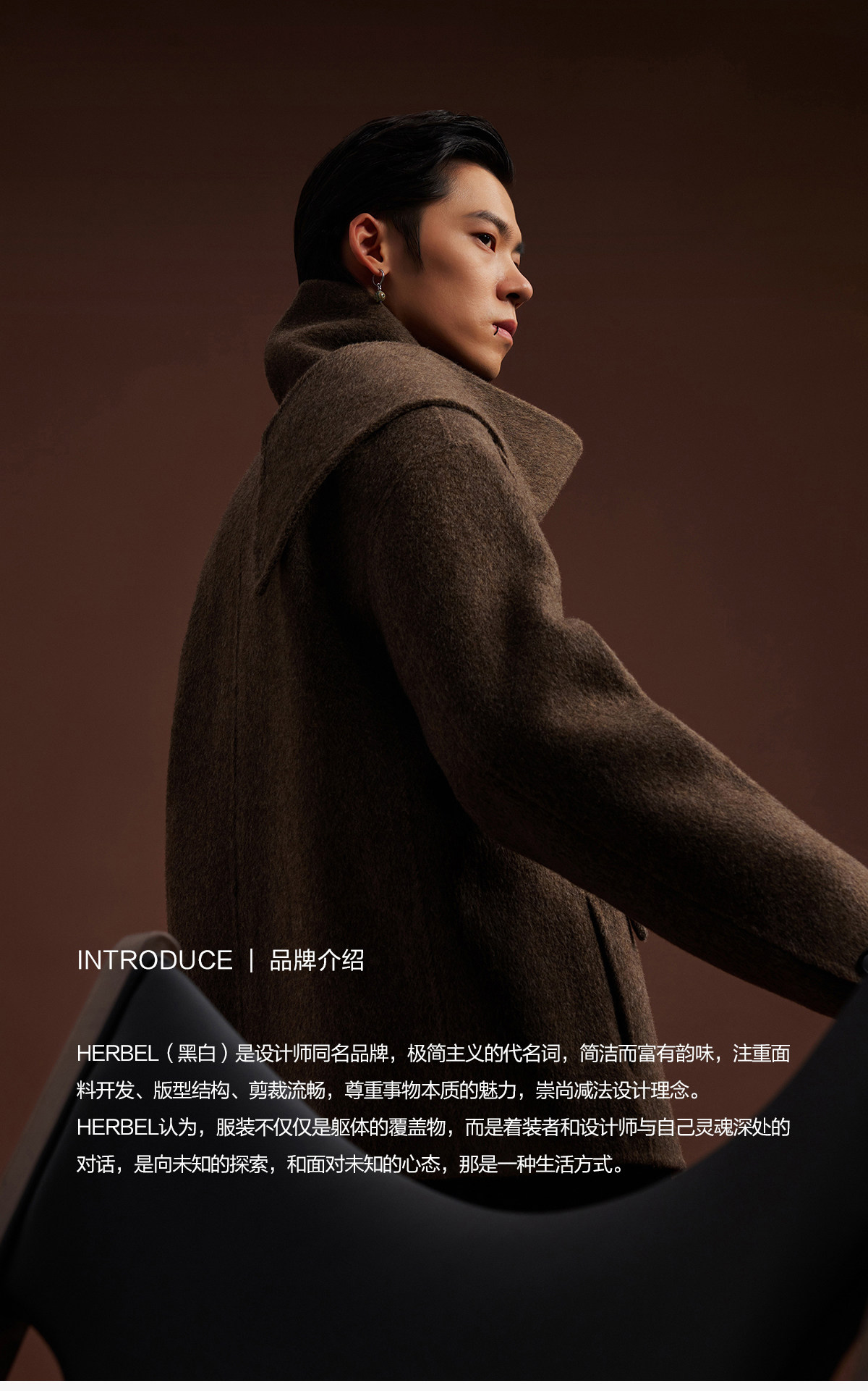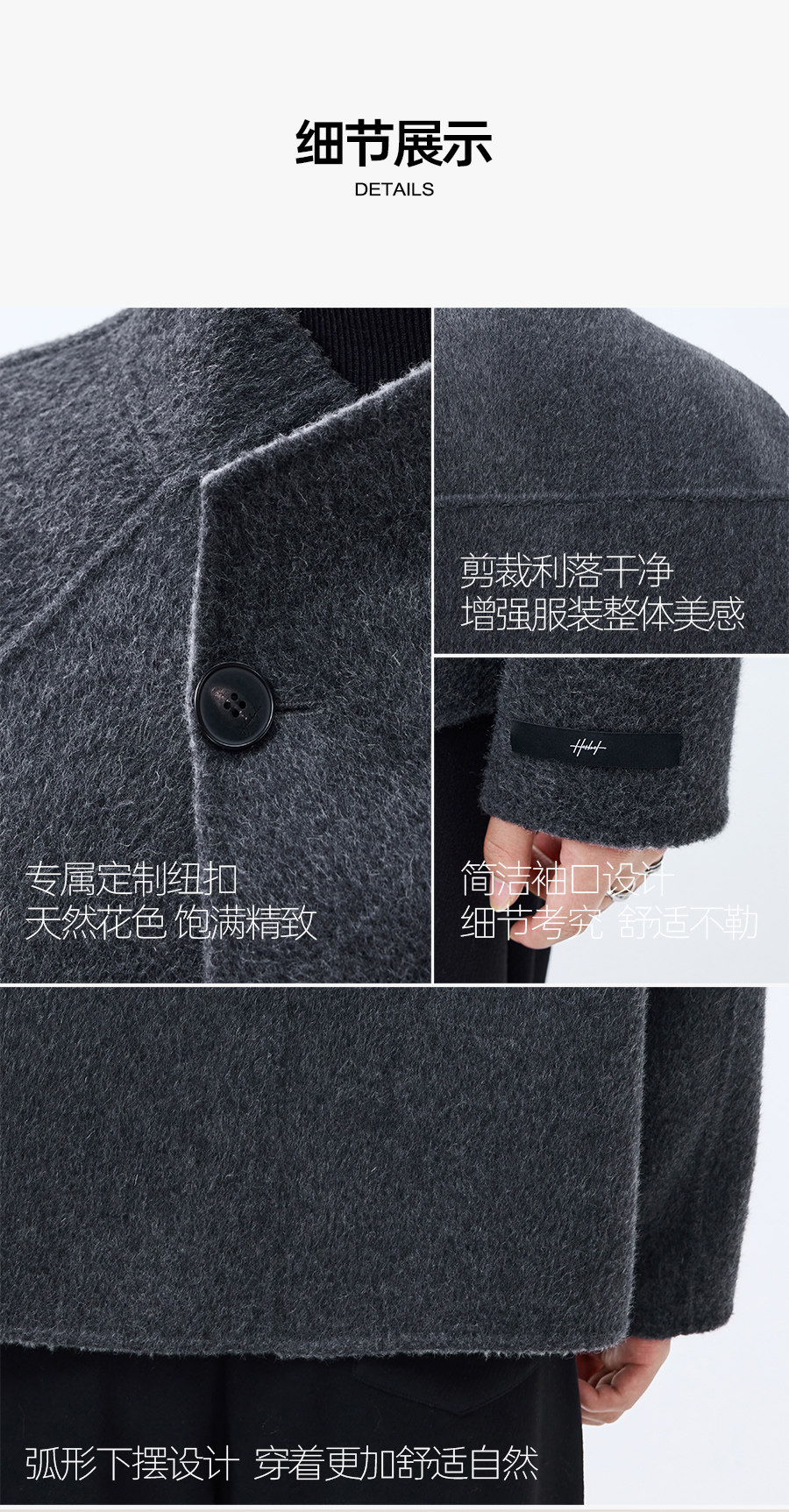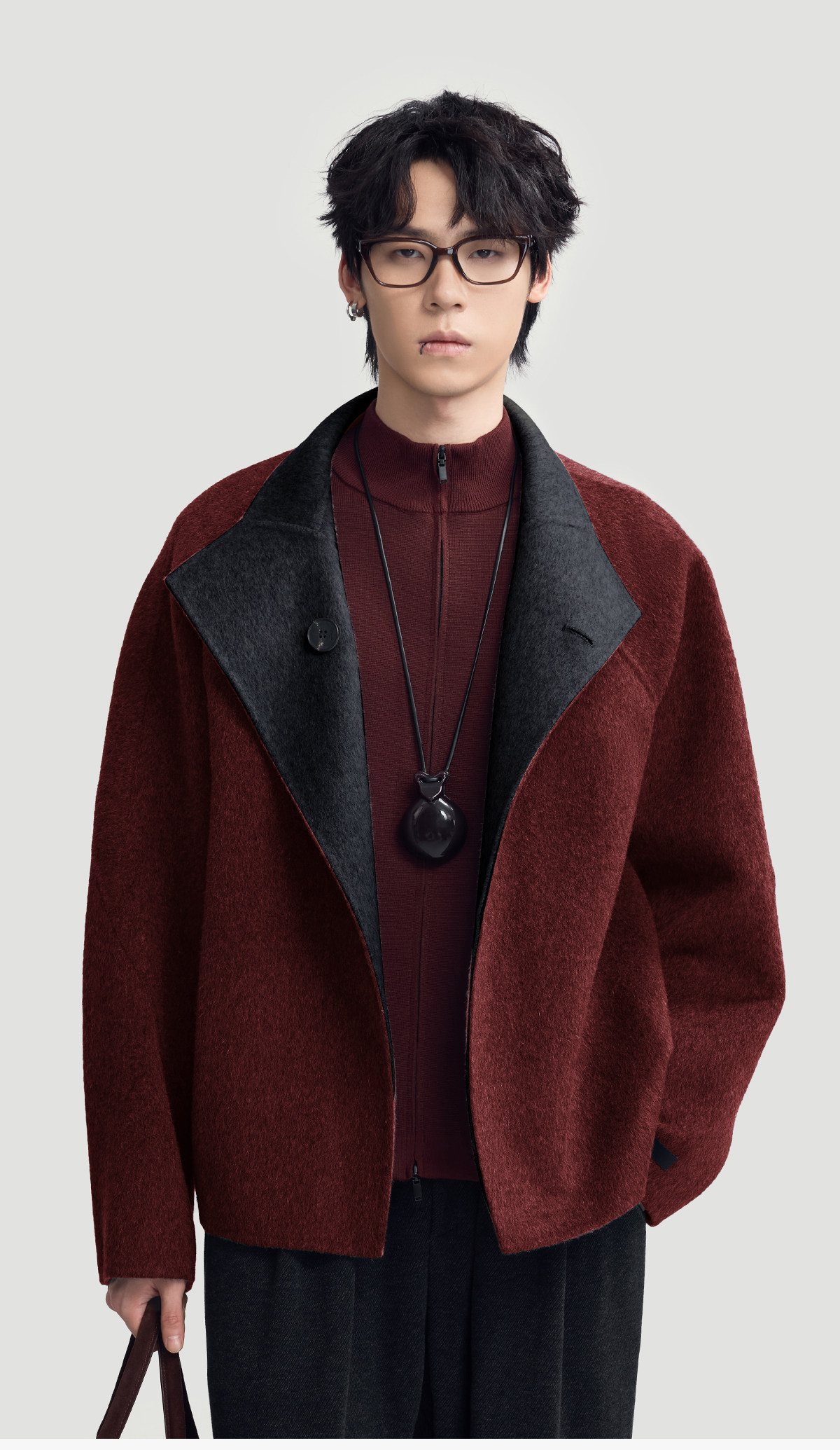 Herbel/Black and White 2026 Spring New Men's Short Coat Reversible Mulberry Silk Cashmere Woolen Jacket