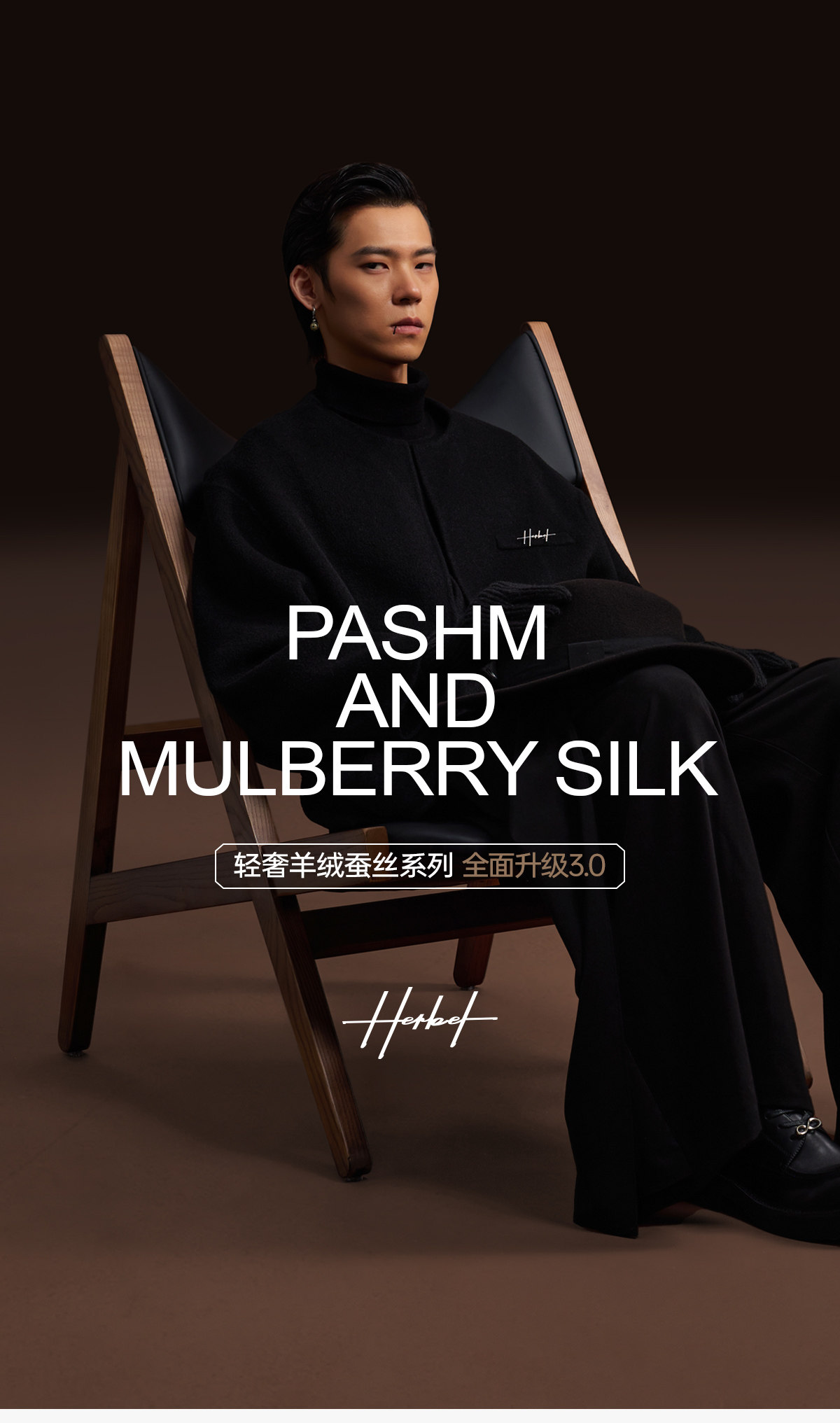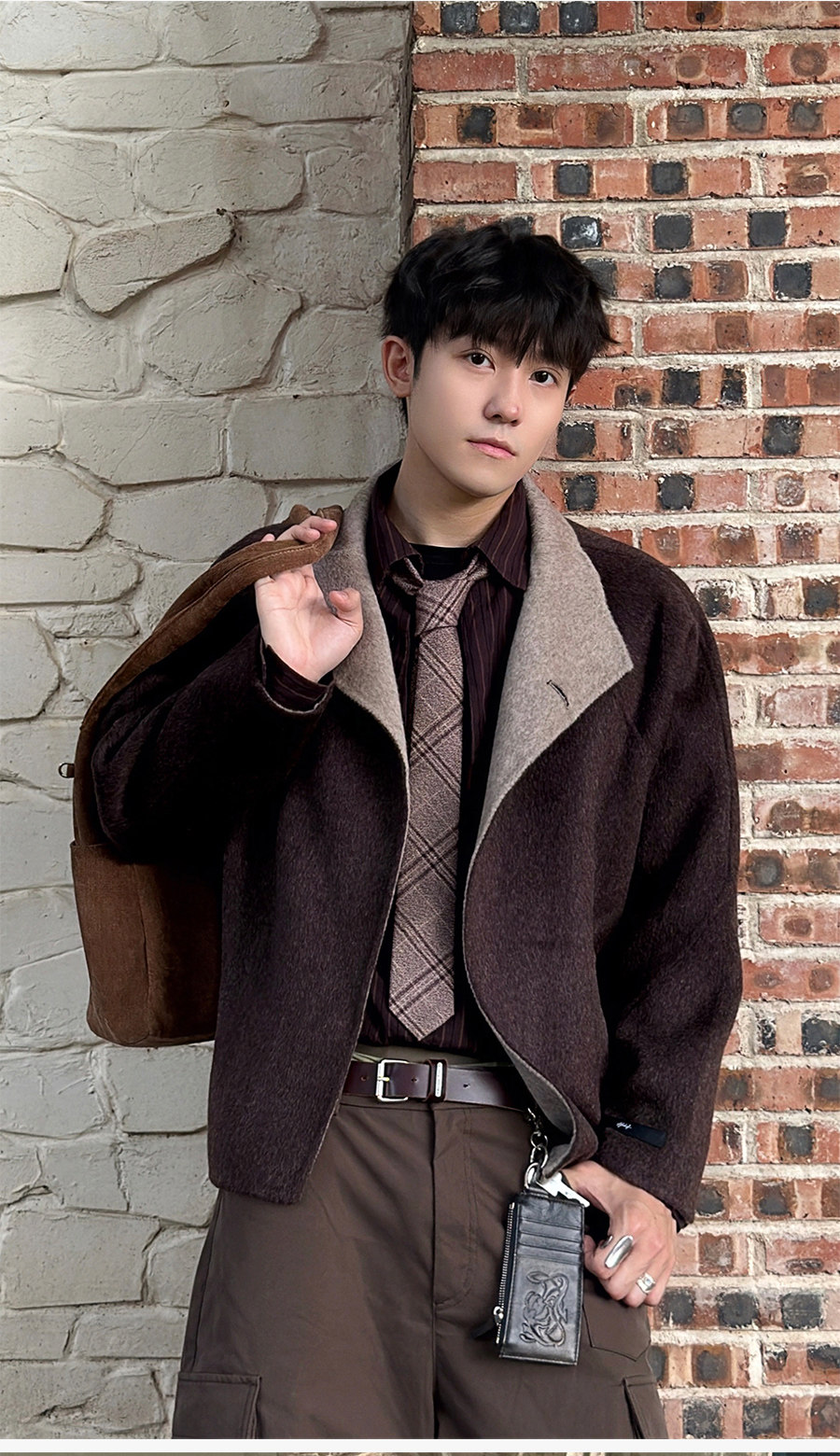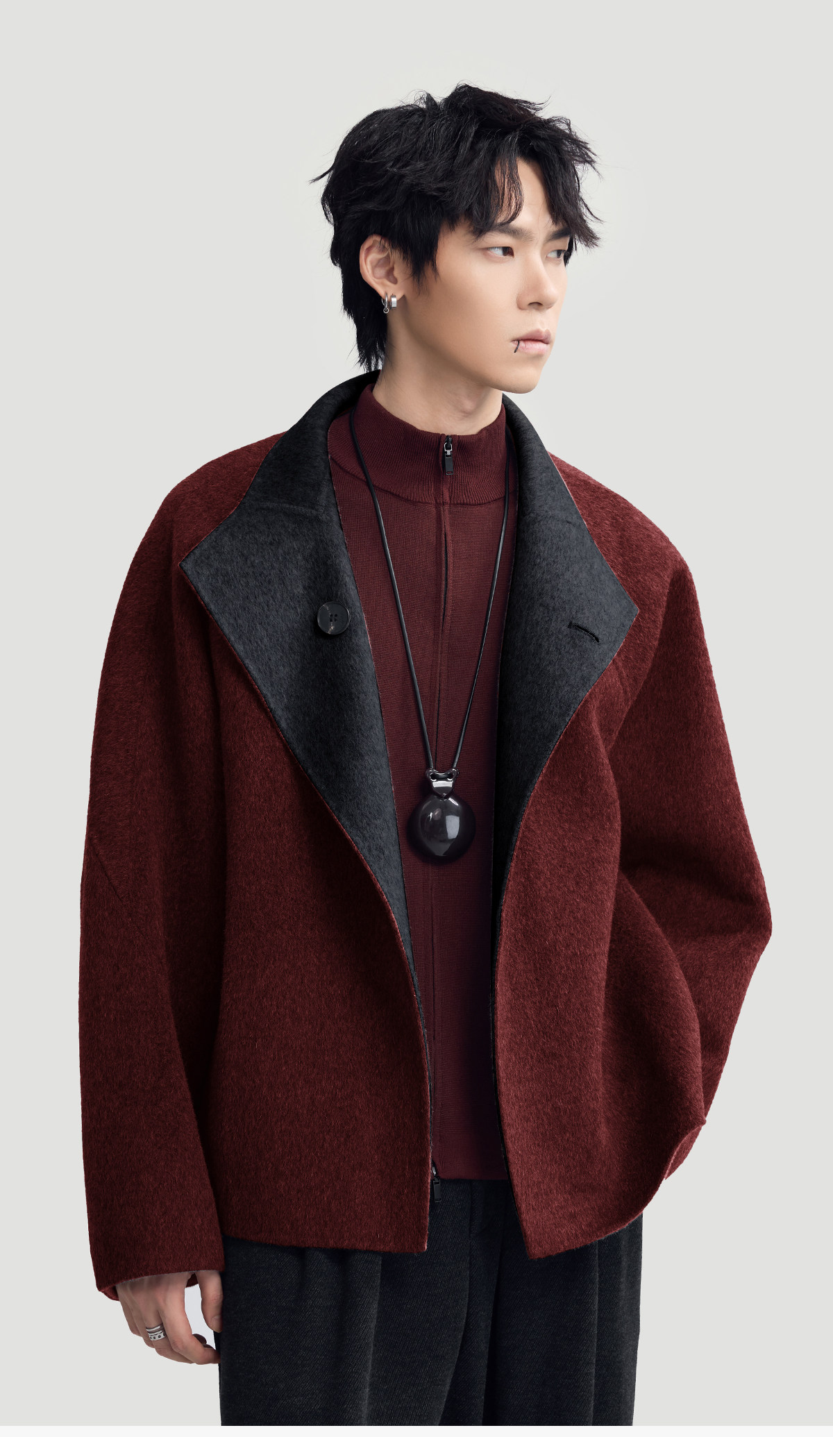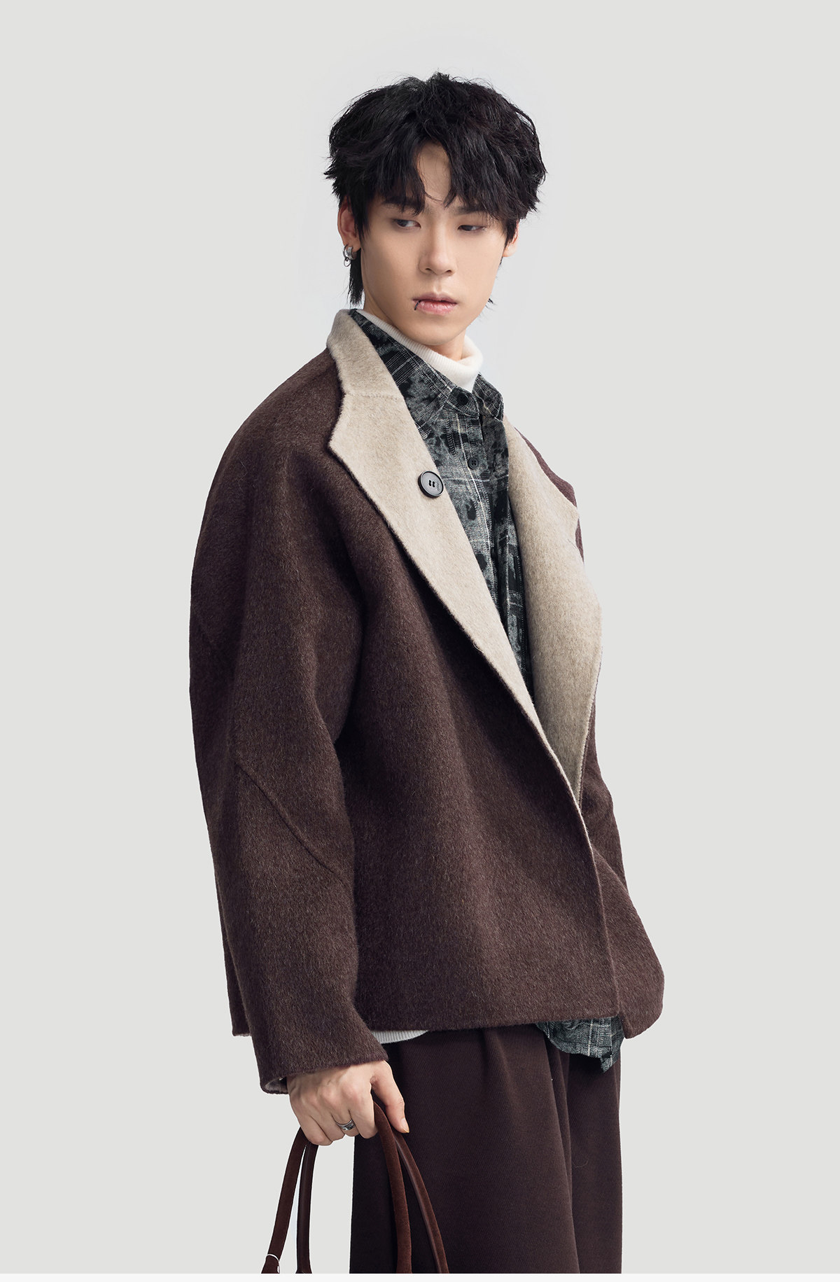 Herbel/Black and White 2026 Spring New Men's Short Coat Reversible Mulberry Silk Cashmere Woolen Jacket