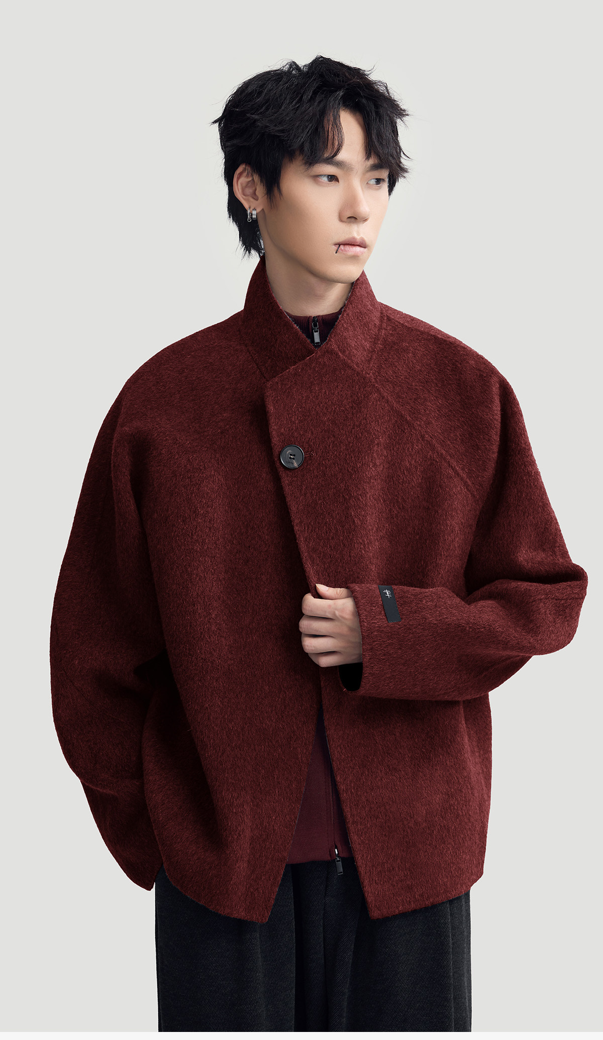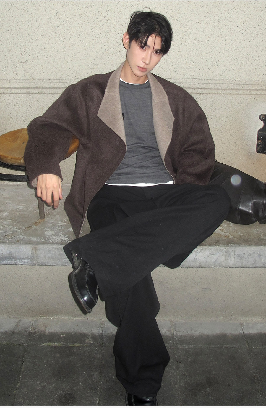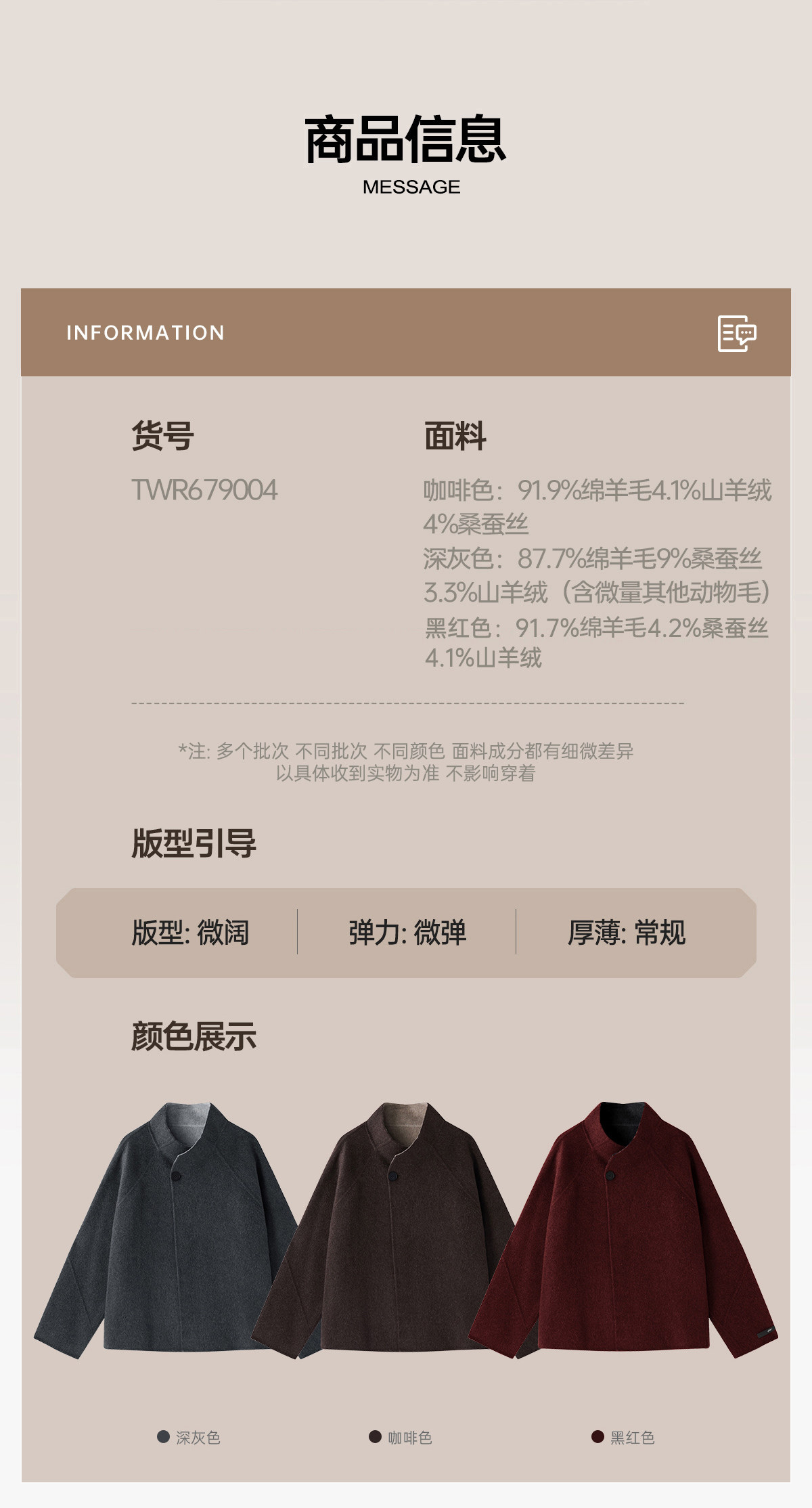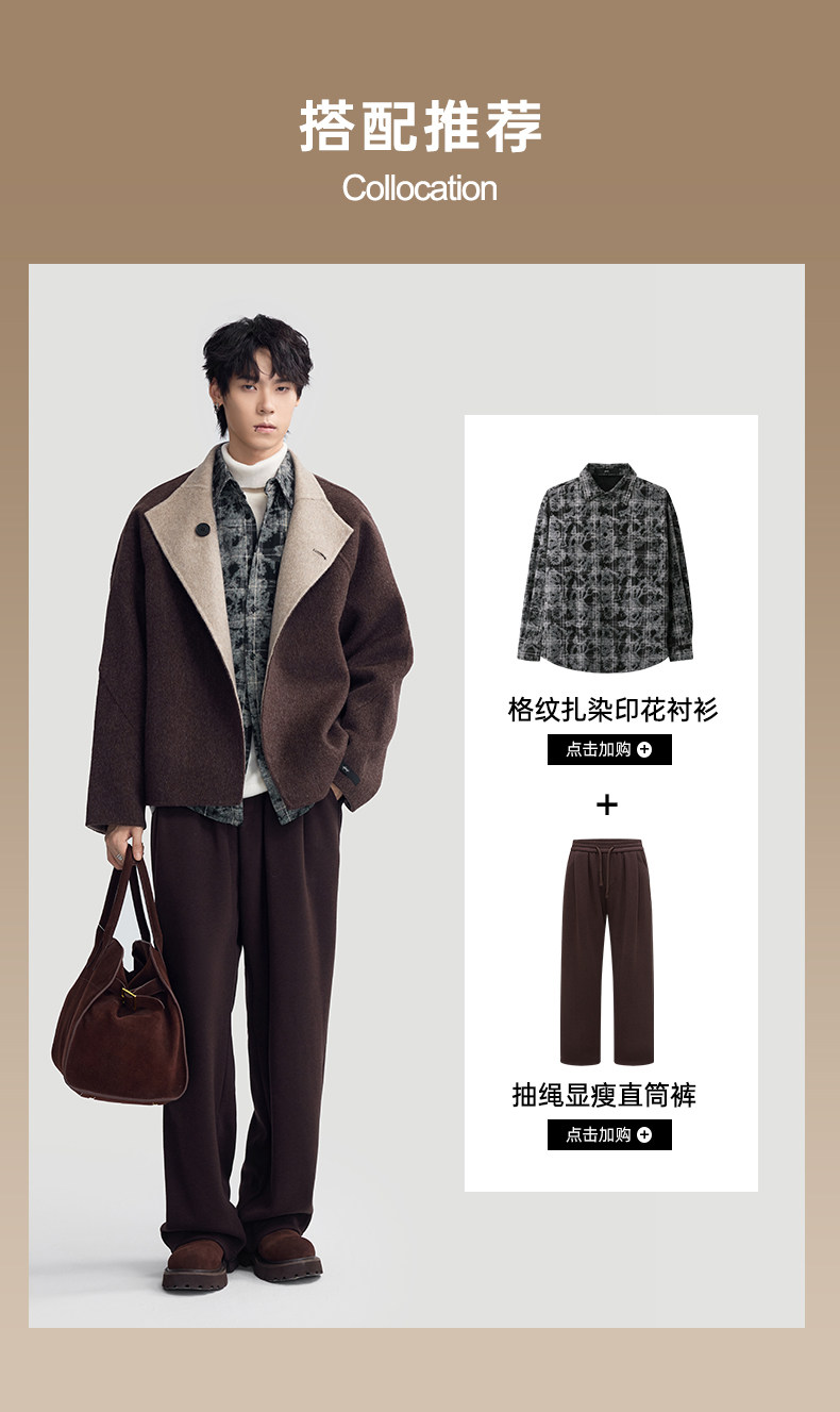 Herbel/Black and White 2026 Spring New Men's Short Coat Reversible Mulberry Silk Cashmere Woolen Jacket