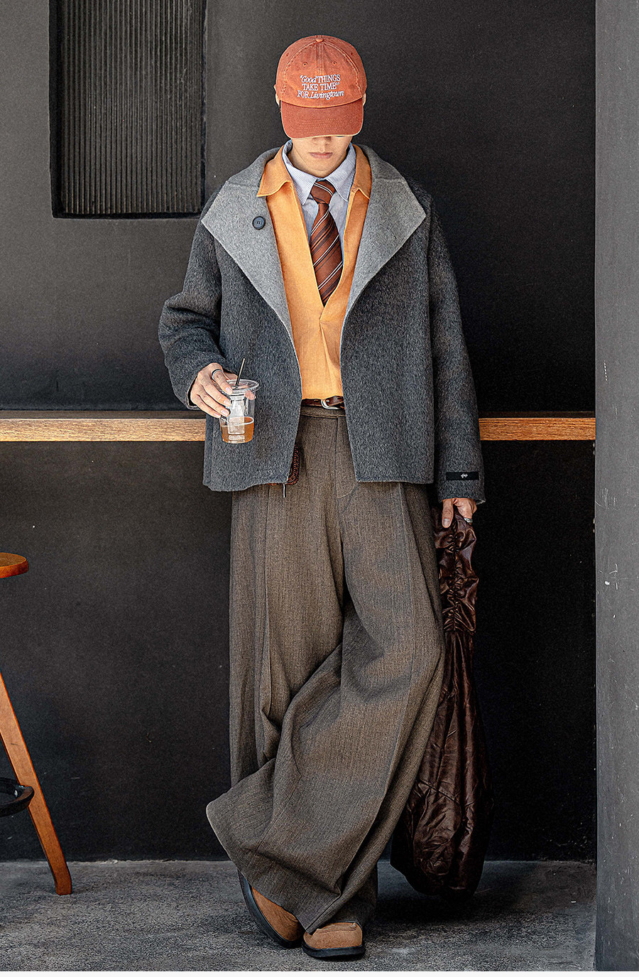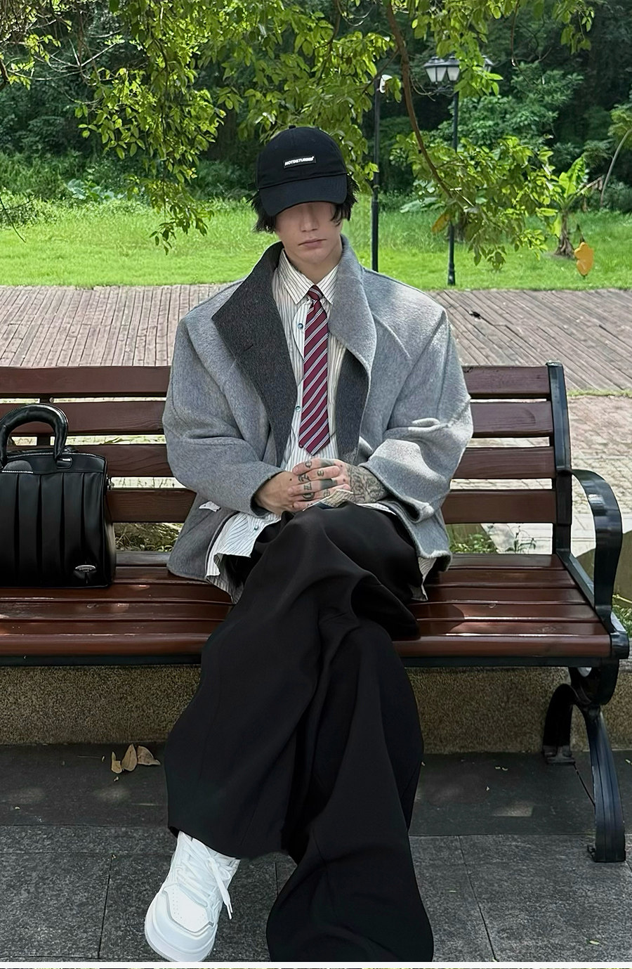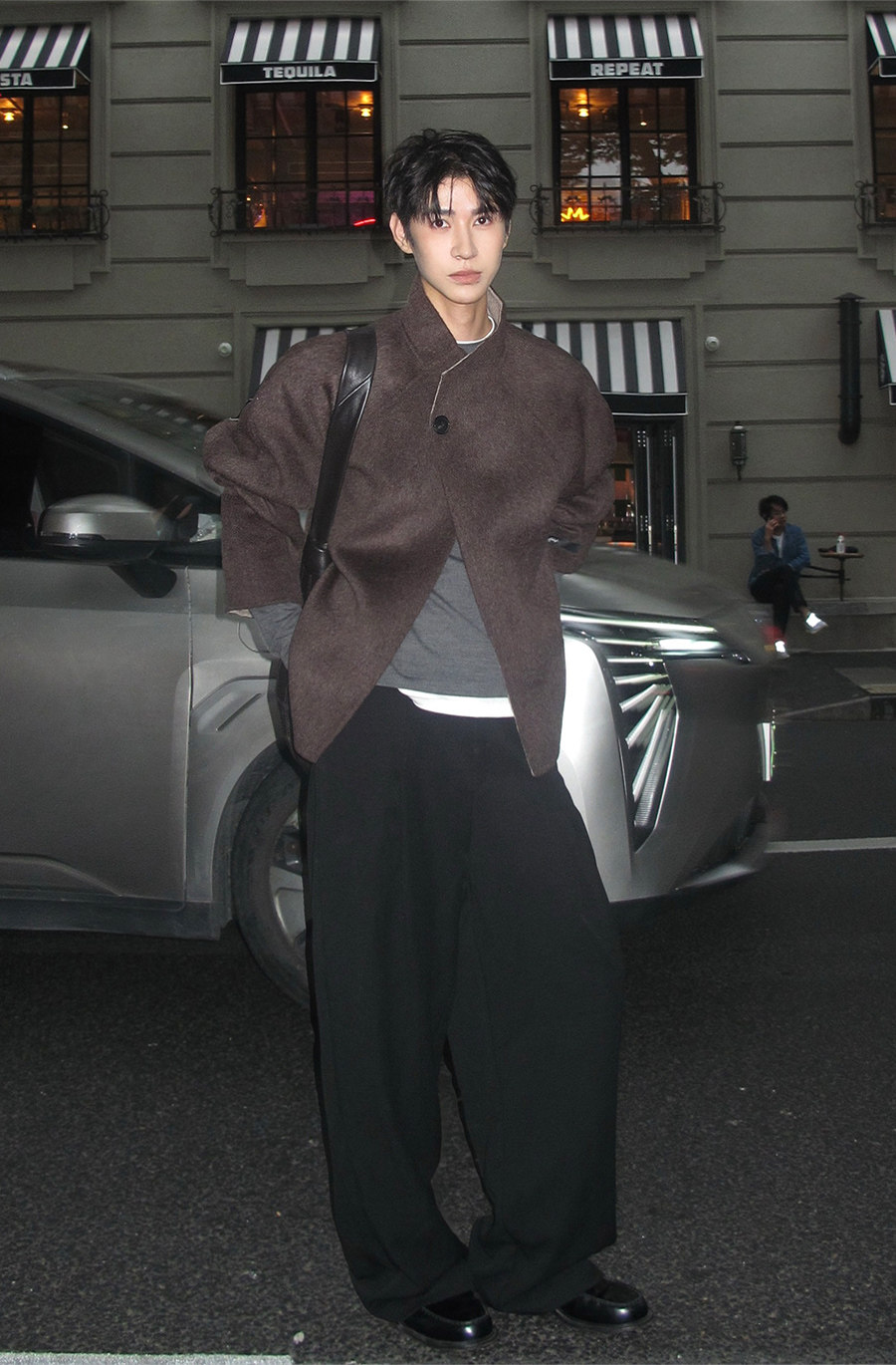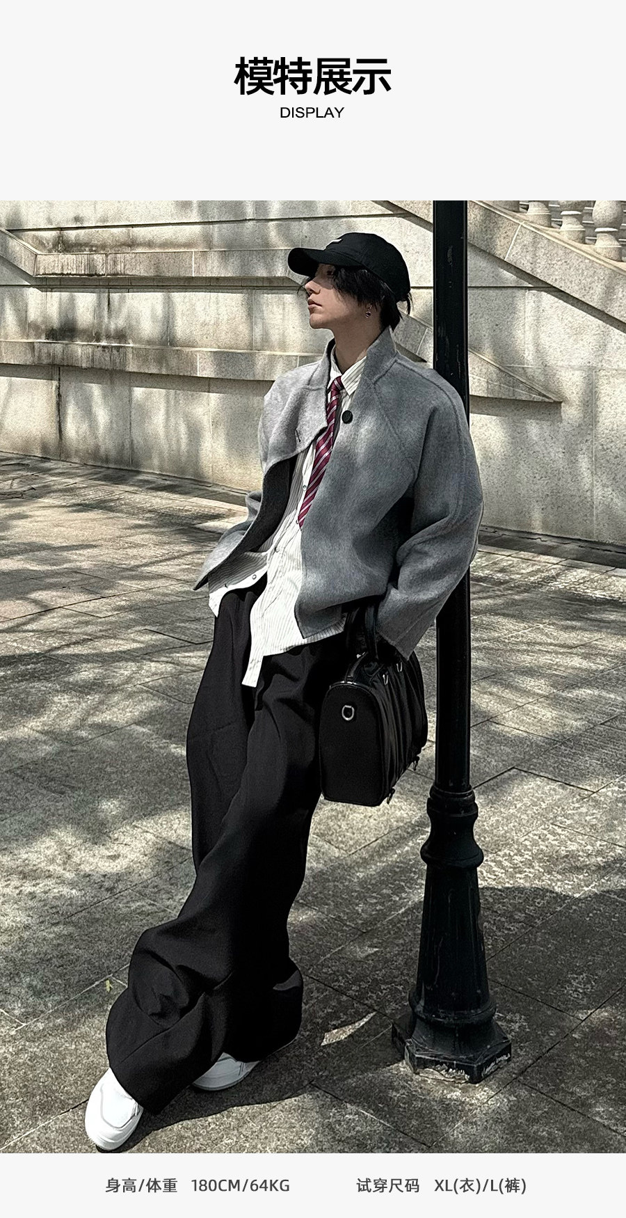 Herbel/Black and White 2026 Spring New Men's Short Coat Reversible Mulberry Silk Cashmere Woolen Jacket