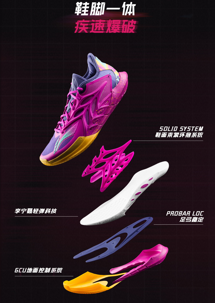 Li-Ning Pokémon Collaboration Series Blitz 12 Gengar | Basketball Shoes Men's Shoes Cushioning Practical Low-Top Sports Shoes
