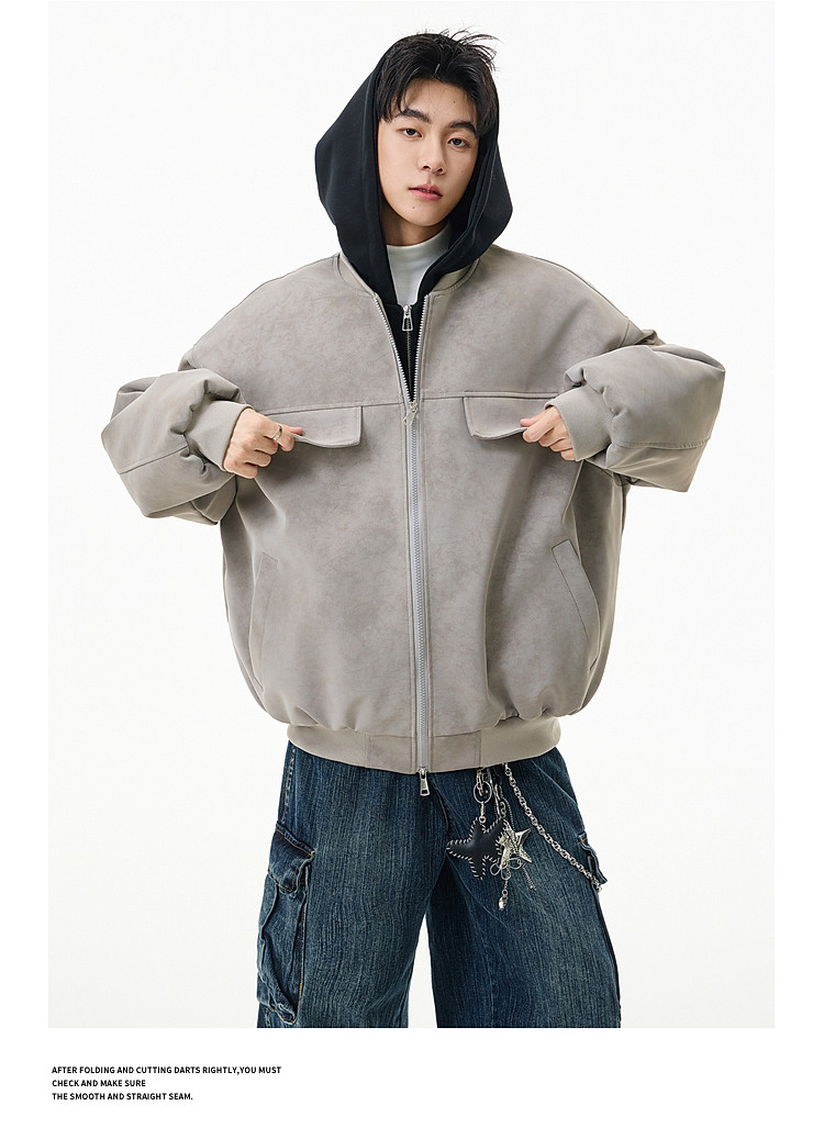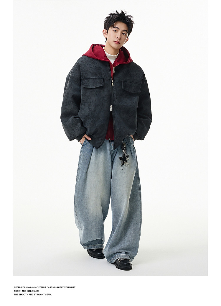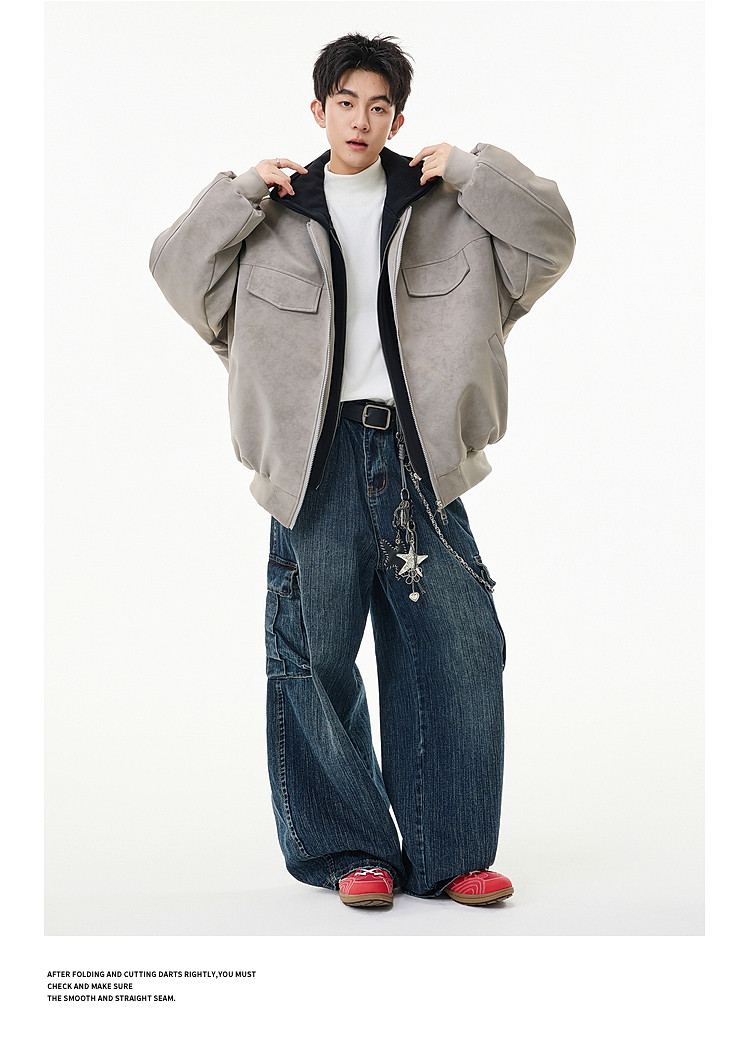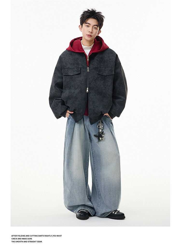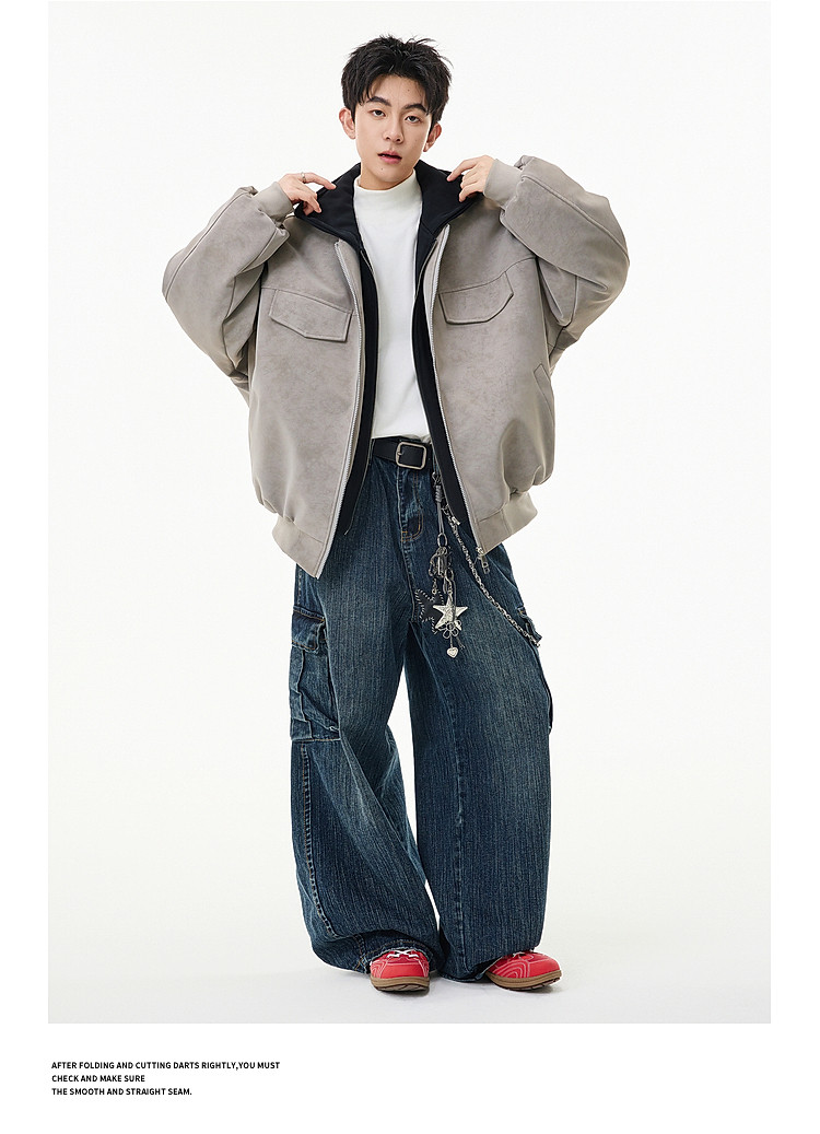 Wukong Has in Stock American Retro Style Faux Two-Piece Patchwork Hooded Cotton Coat for Men, Winter Pu Leather Windproof and Warm Cotton Jacket