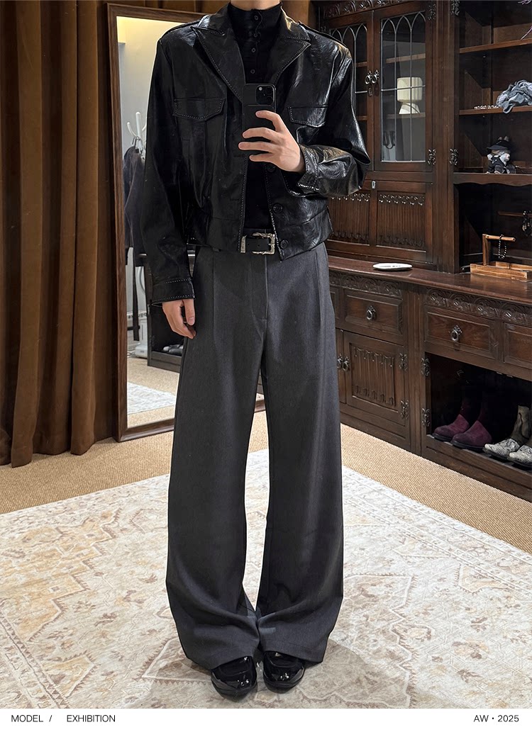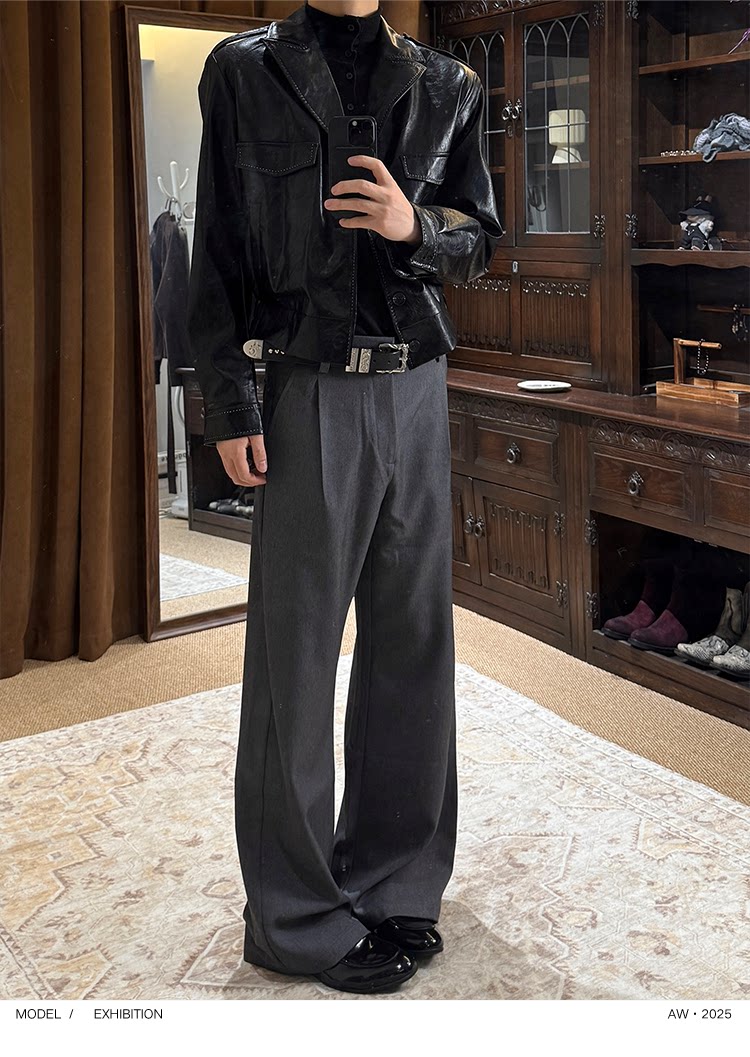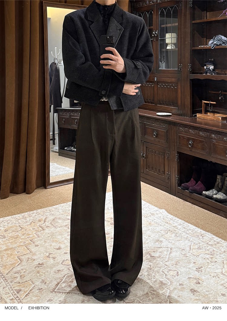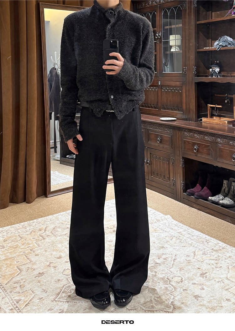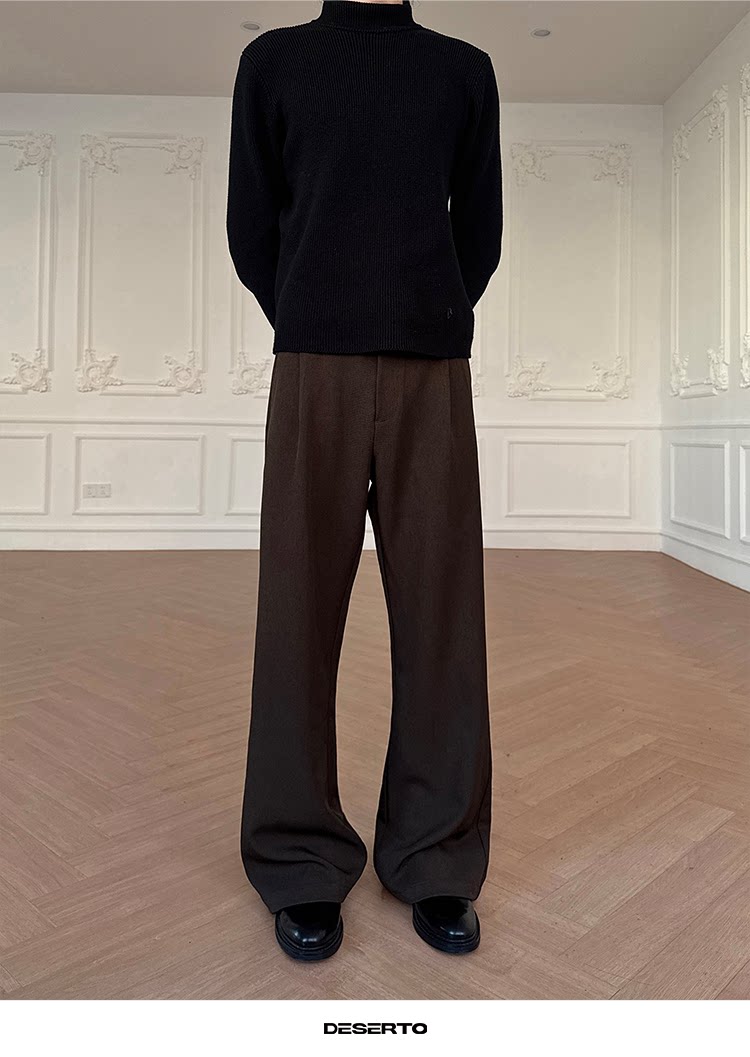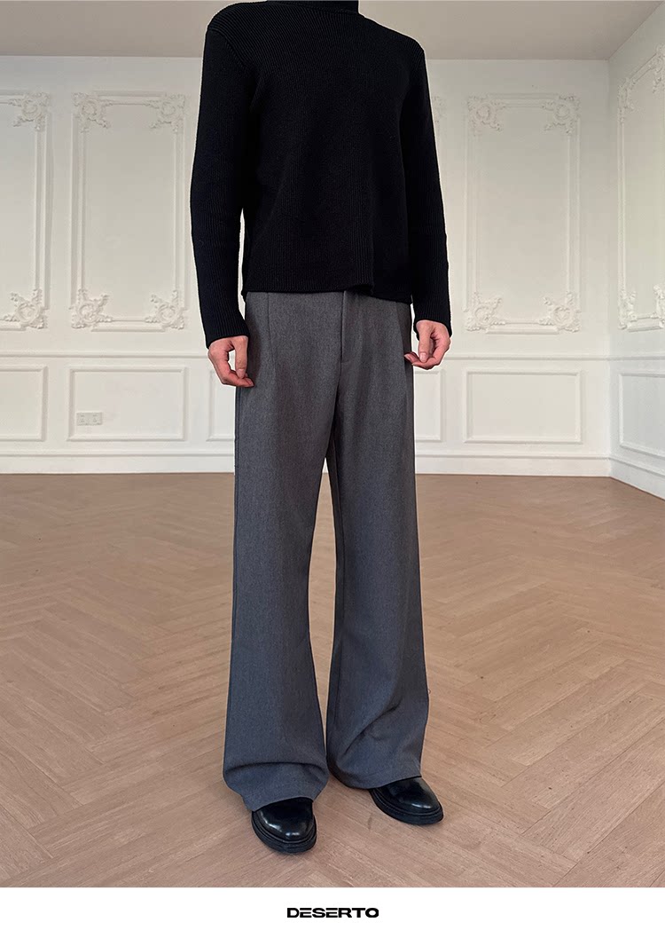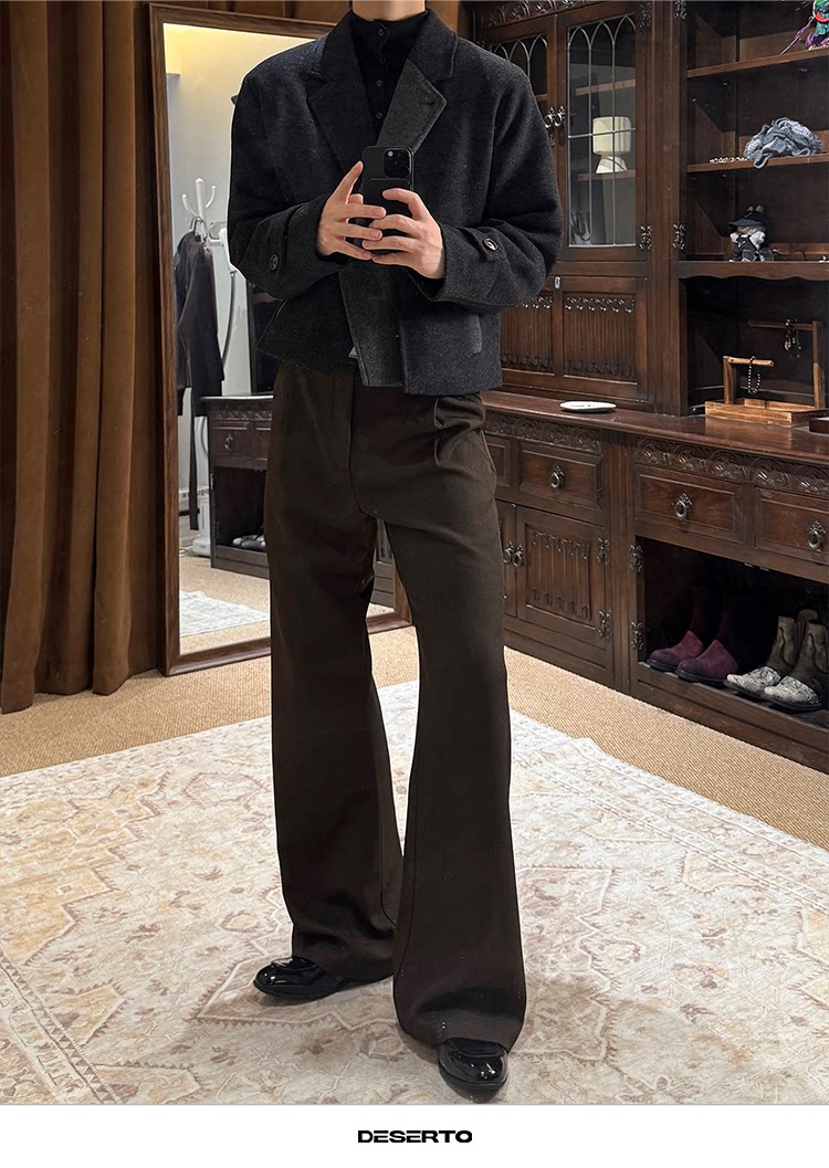 Deserto 510g Strong Twisted Yarn Blended Single-Pleat Basic Flared Dress Pants, Suitable for All Seasons, Casual Pants for Men