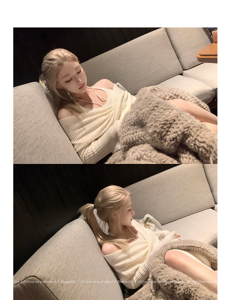 Doggyqin Calls It a Sister-Like Style/Full Wool Yarn Waist-Slimming Dress, Autumn and Winter Pure Desire Halter Neck Knit Top