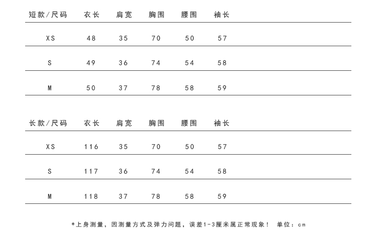 长款和短款两个版本根据自己的穿着喜好和需求进行选择