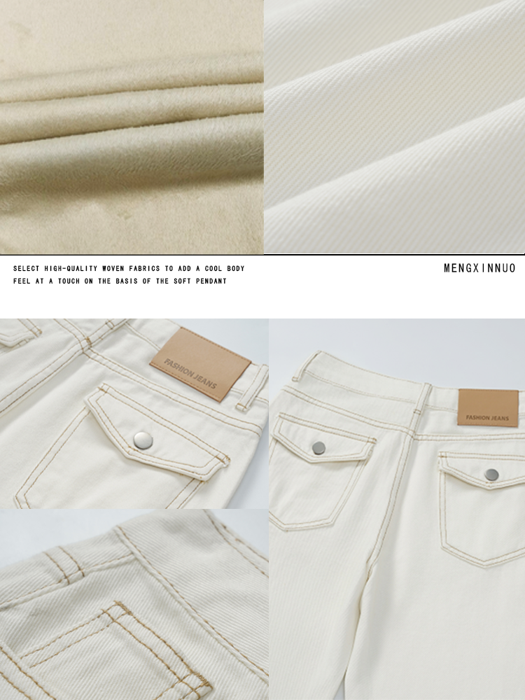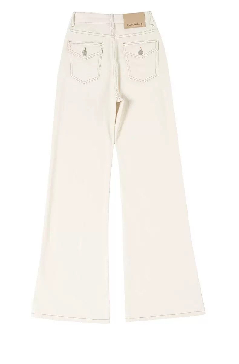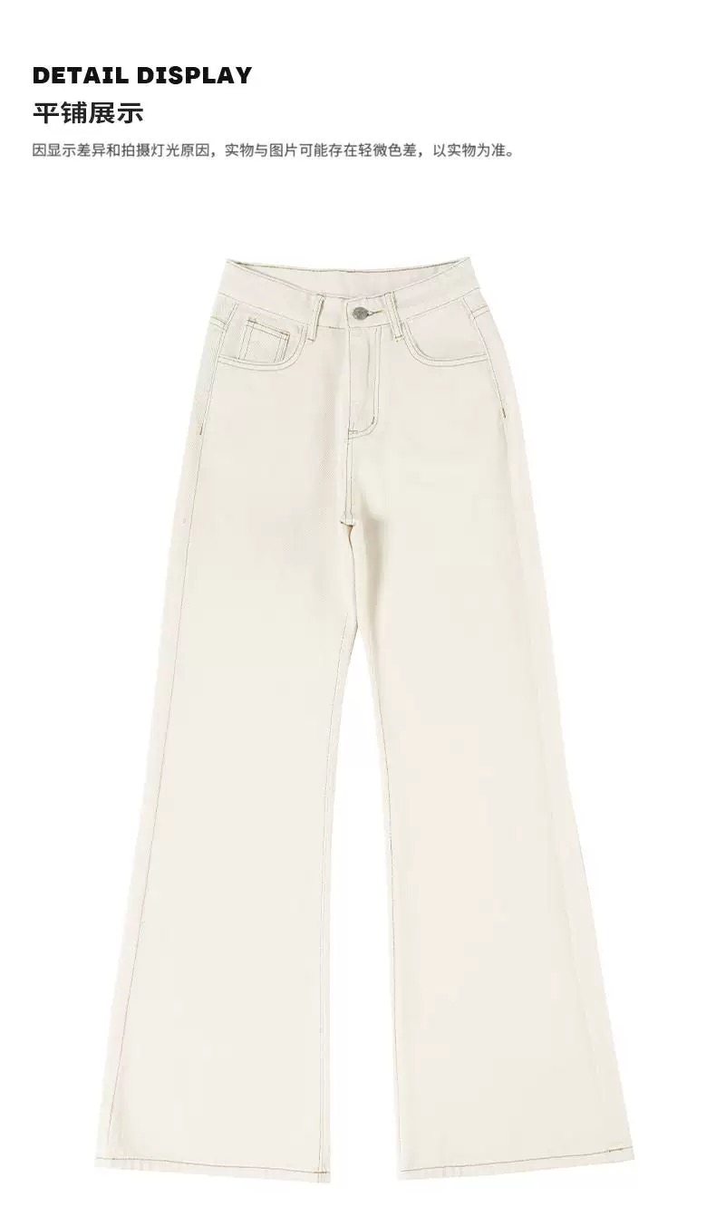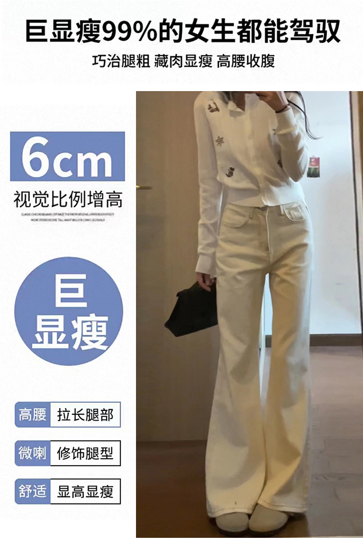 Off-White Fleece-Lined Flared Jeans for Women, 2025 Autumn and Winter New Style, Slimming, Drapey, Non-Tight Straight-Leg Bell-Bottom Pants