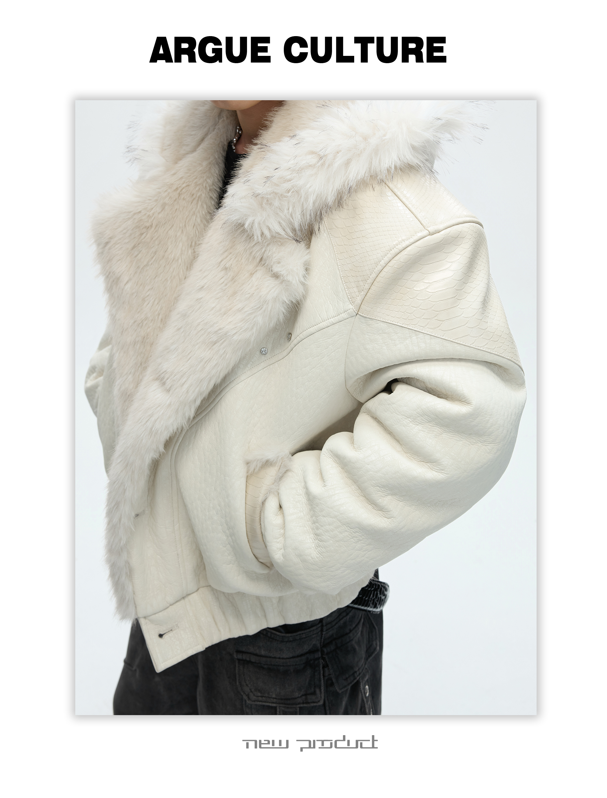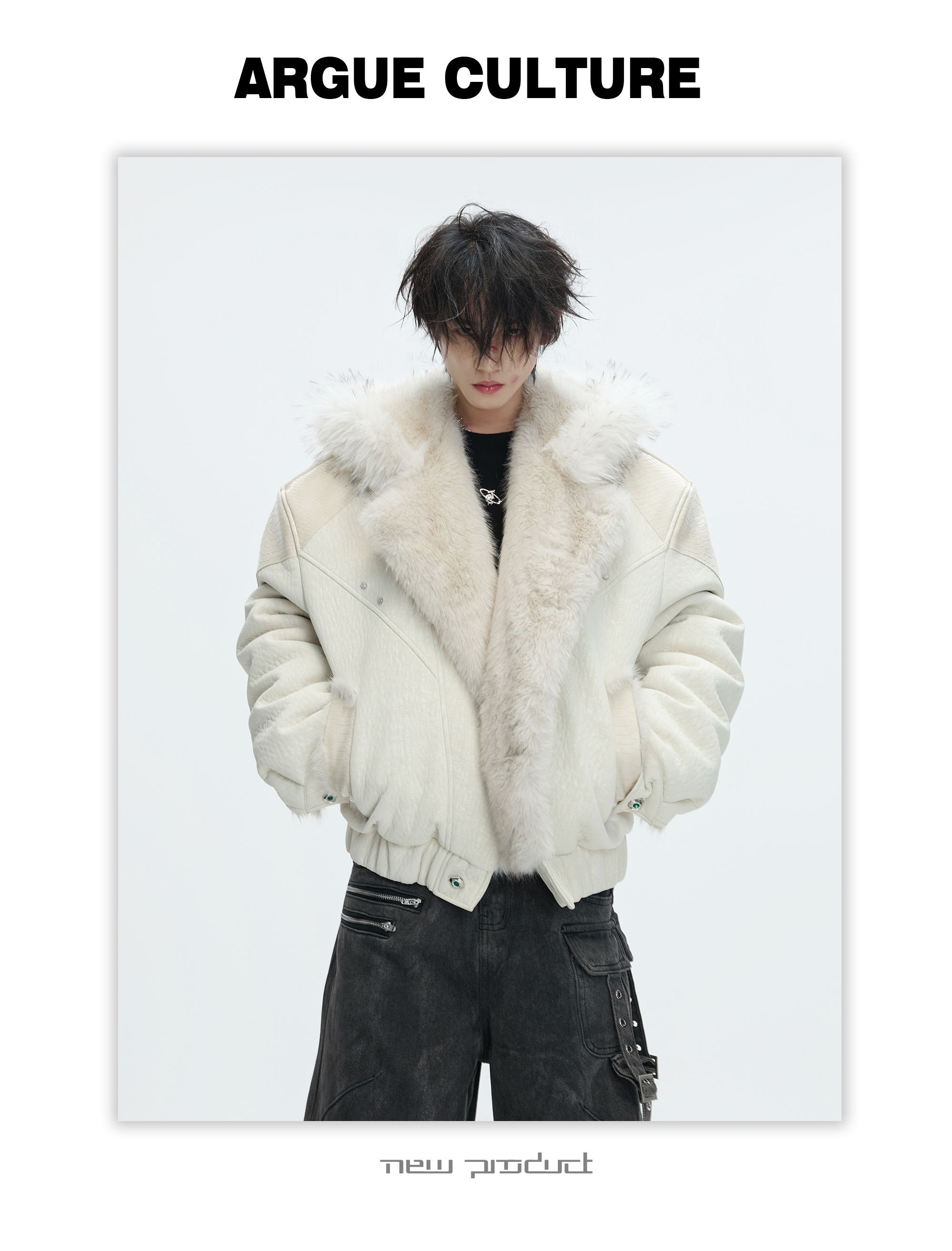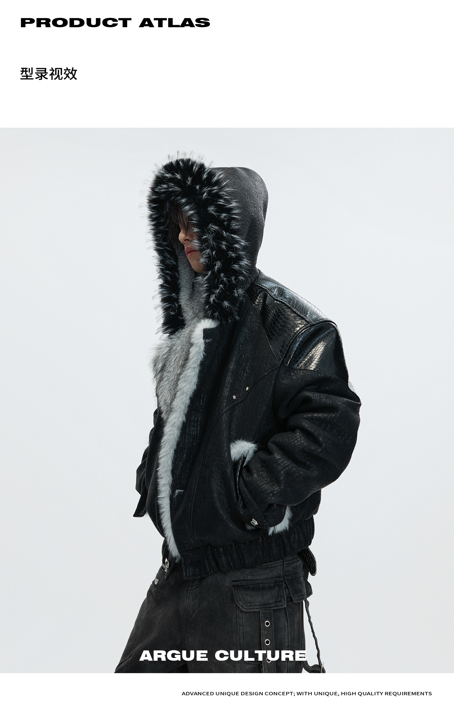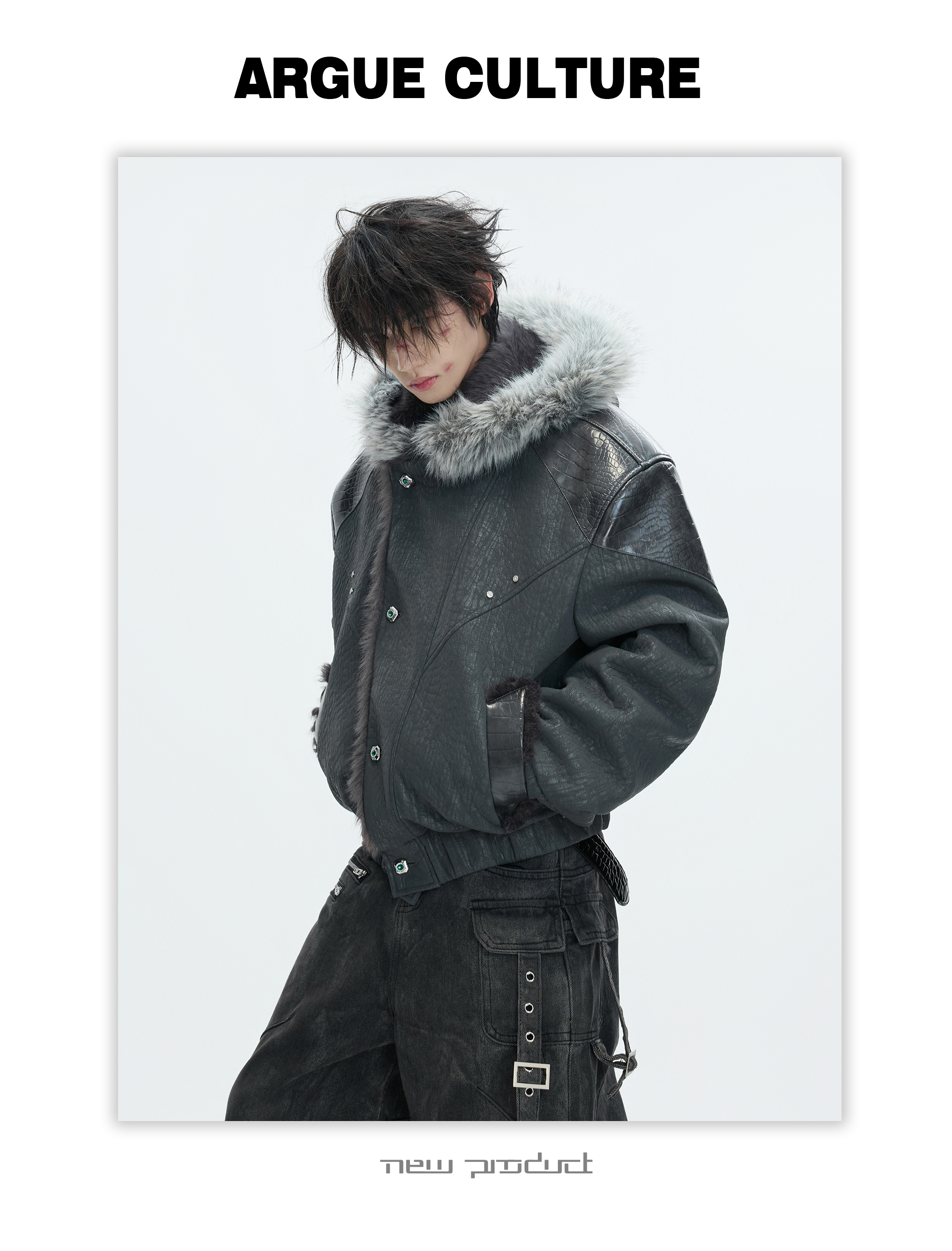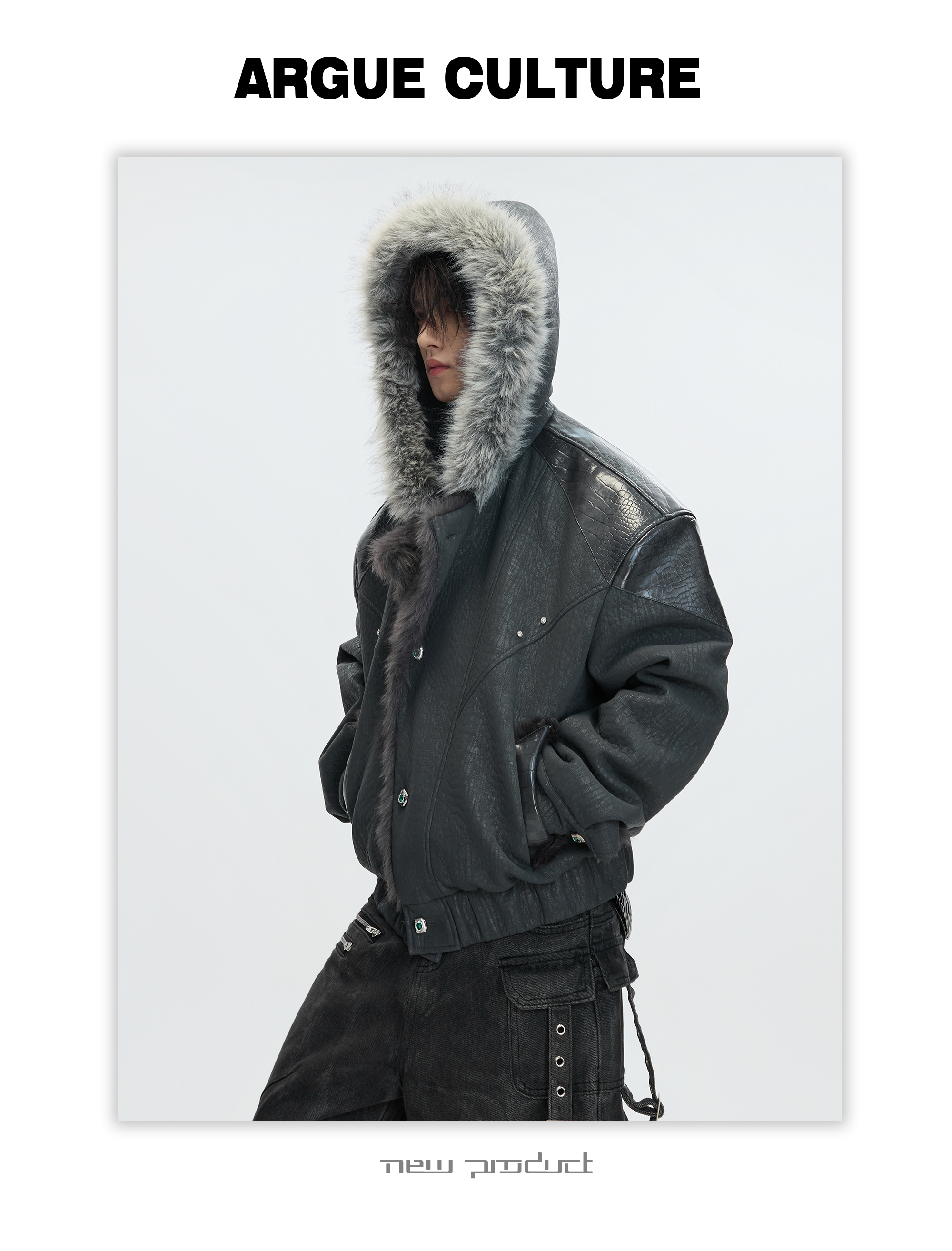 Argue Culture Peeking into the Snow Wolf* Patchwork Color-Block Faux Mink Fur Mountain Eagle Cotton Padded Thick Hooded Jacket