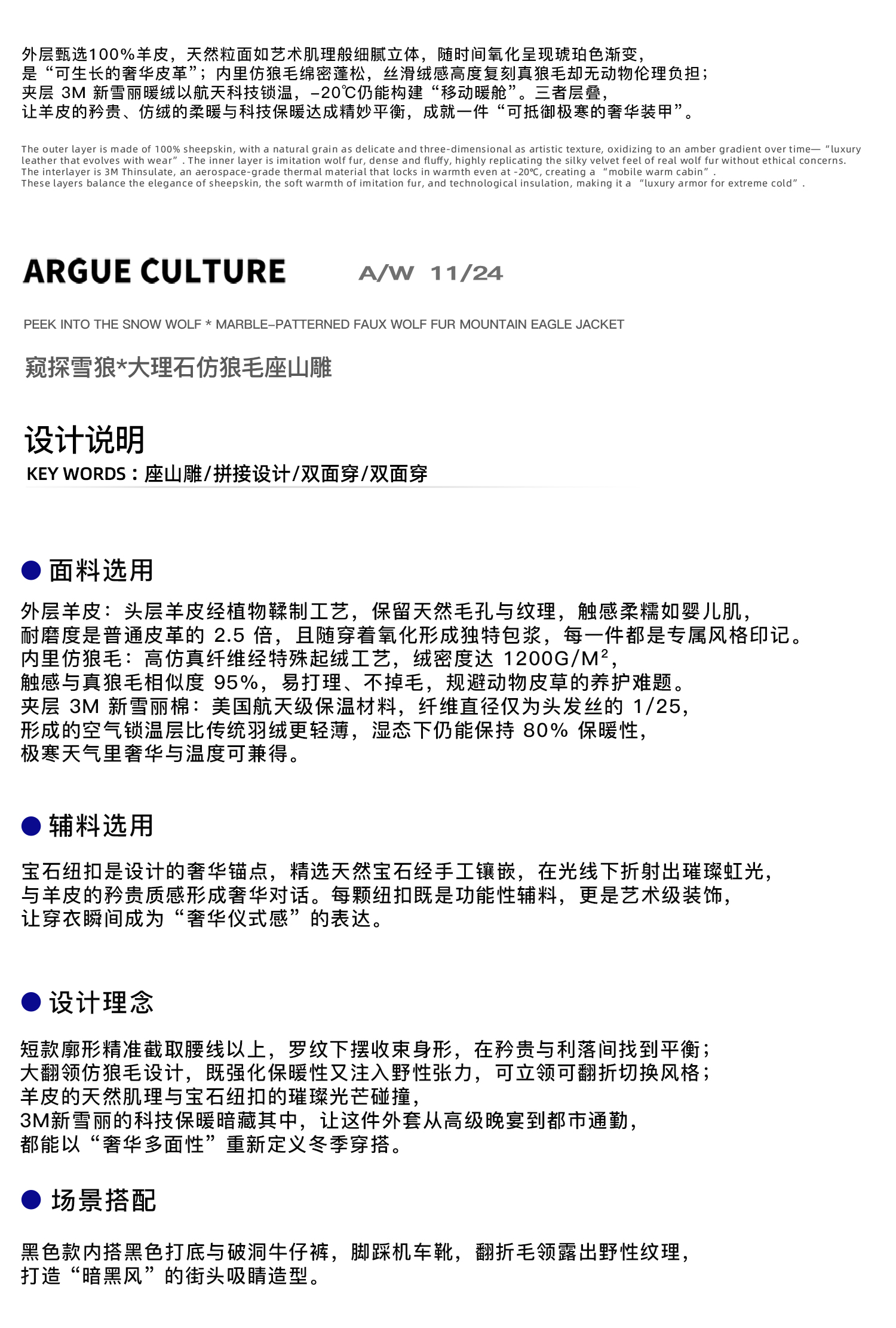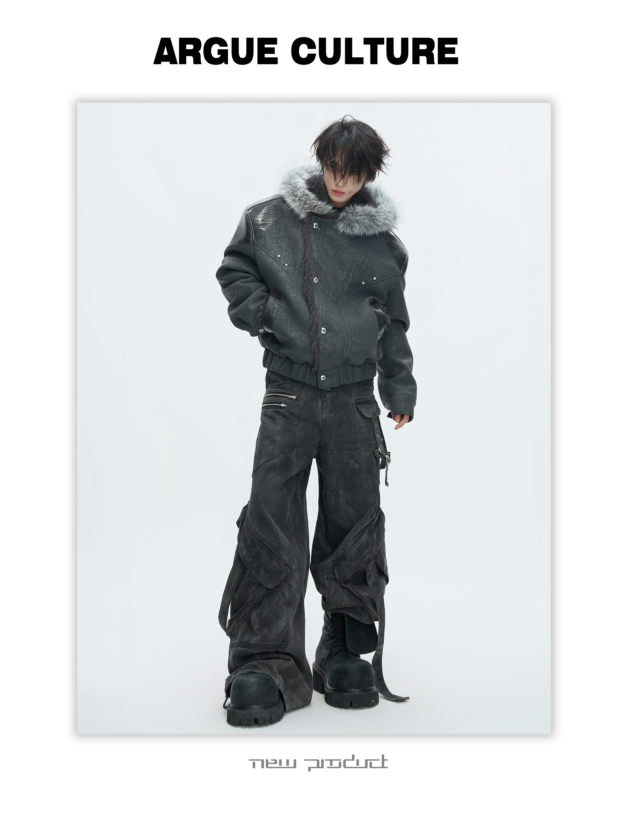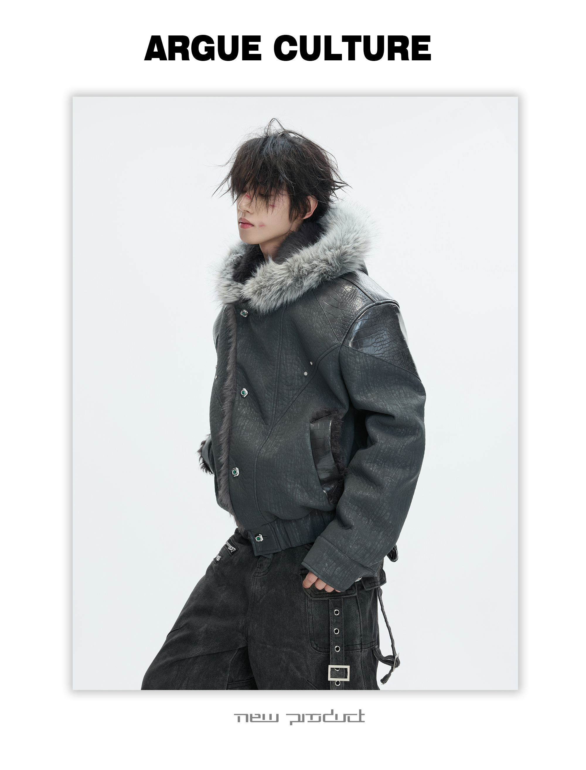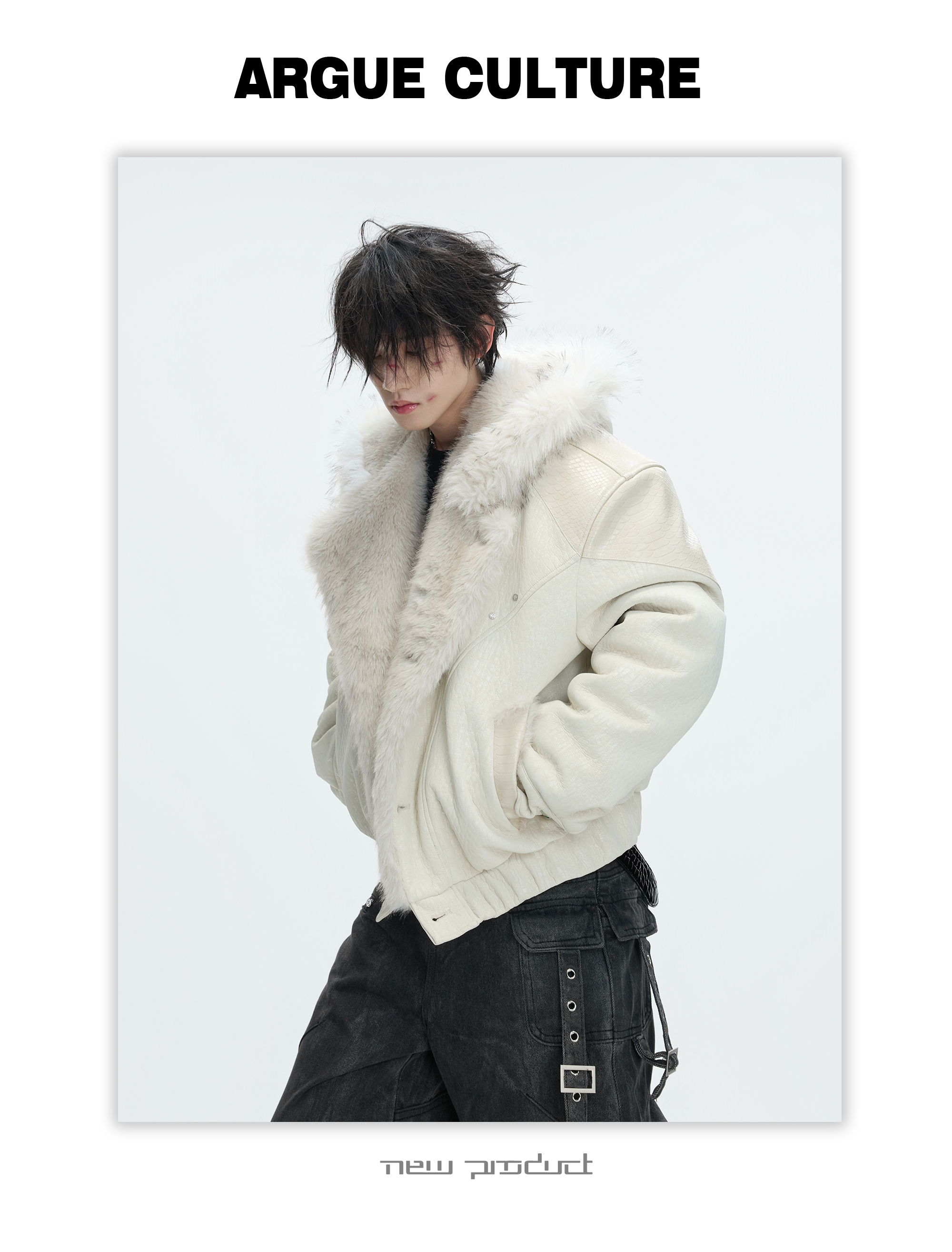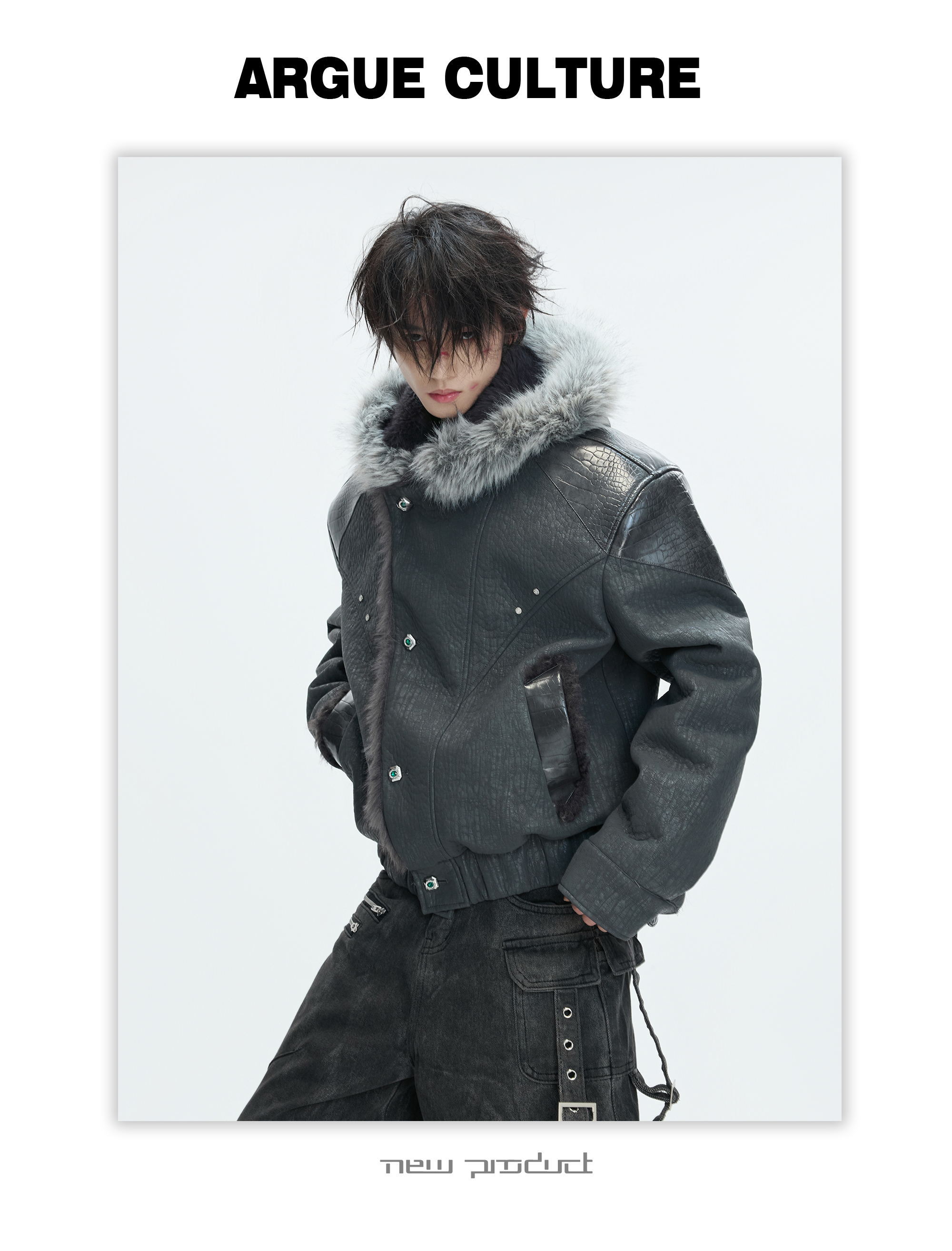 Argue Culture Peeking into the Snow Wolf* Patchwork Color-Block Faux Mink Fur Mountain Eagle Cotton Padded Thick Hooded Jacket