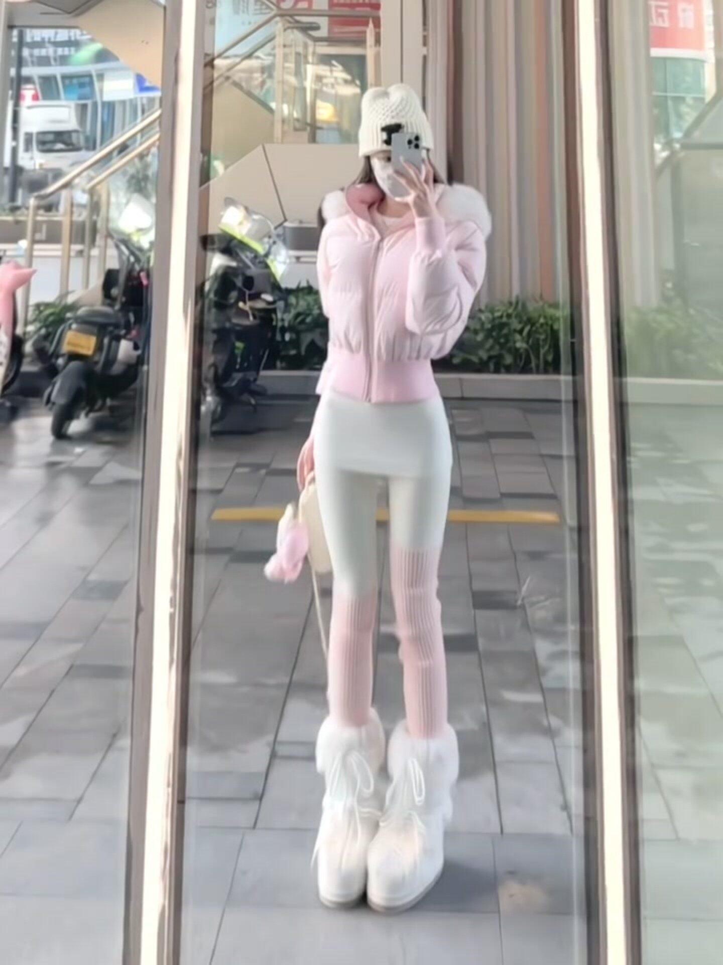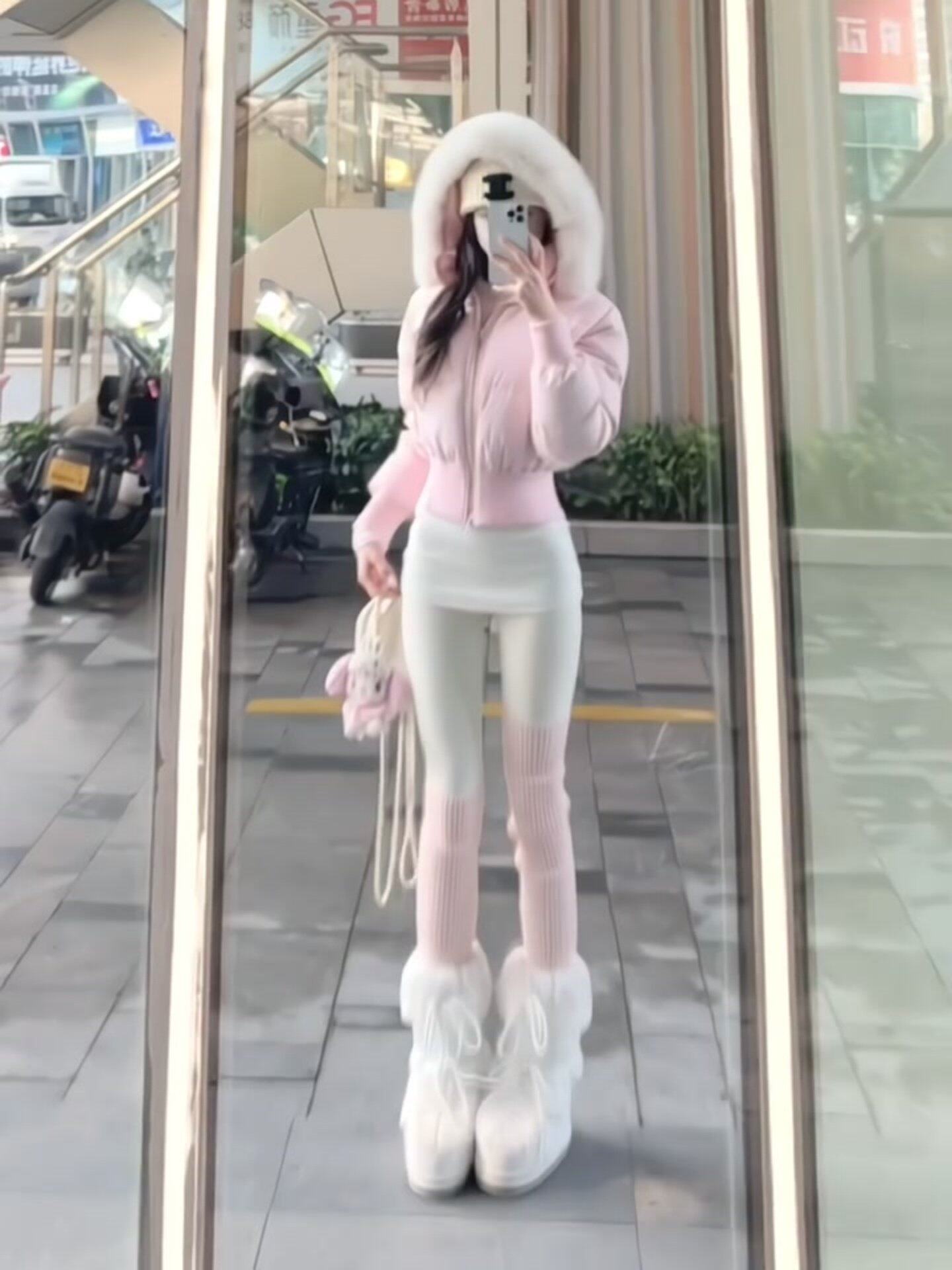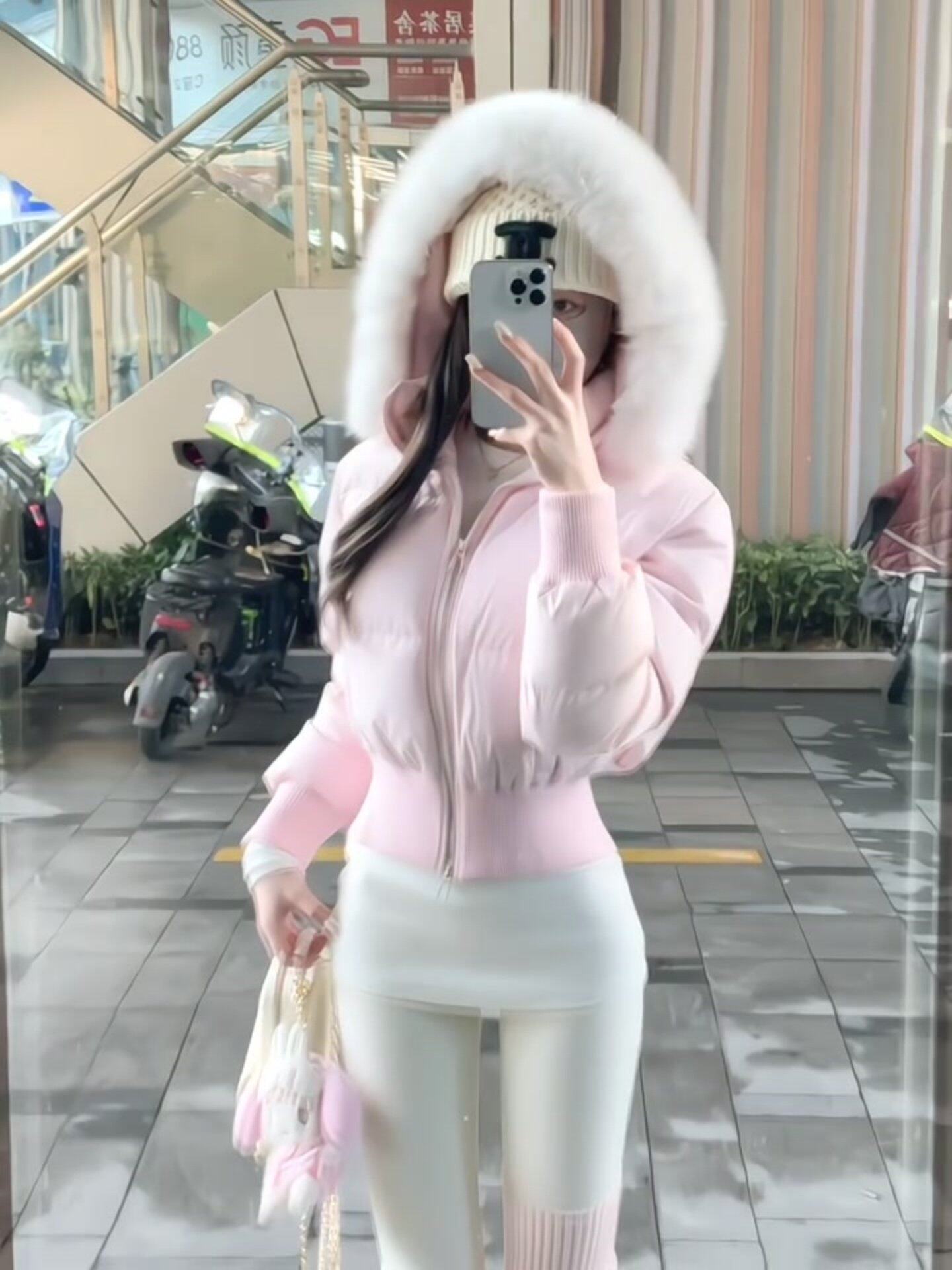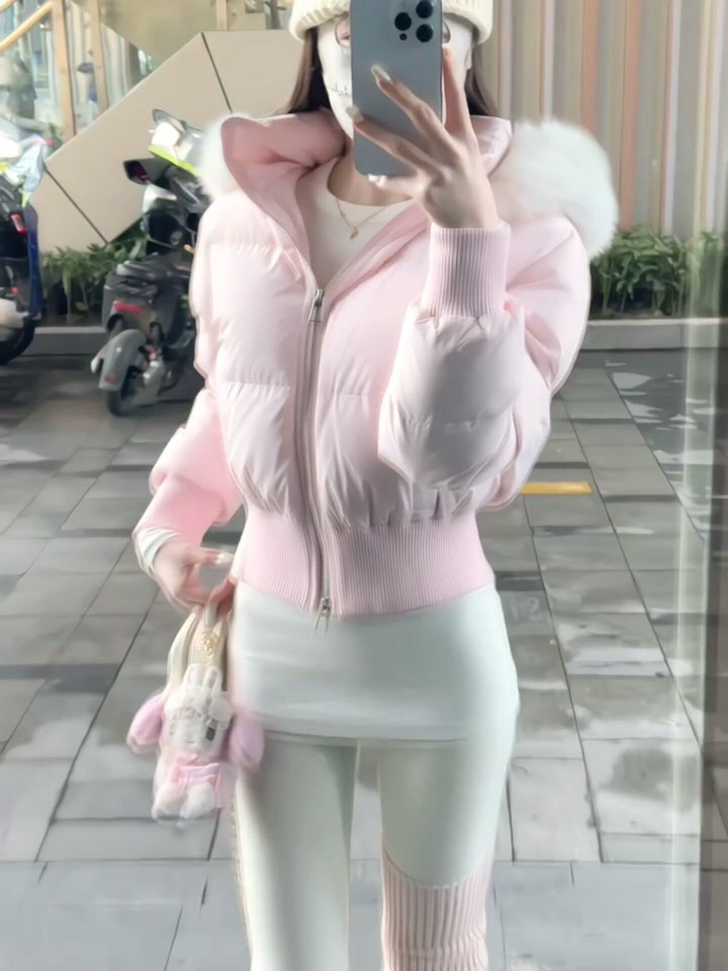 Little Seagull Waist-Cinching Short Style with Large Fur Collar, New Winter Pink down Cotton Jacket for Women, 2025 Winter Thick Cotton Coat