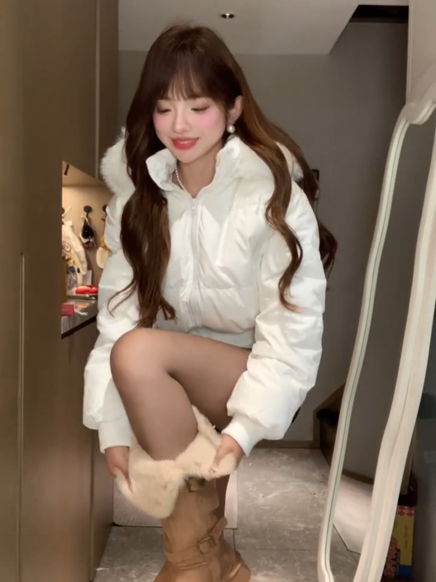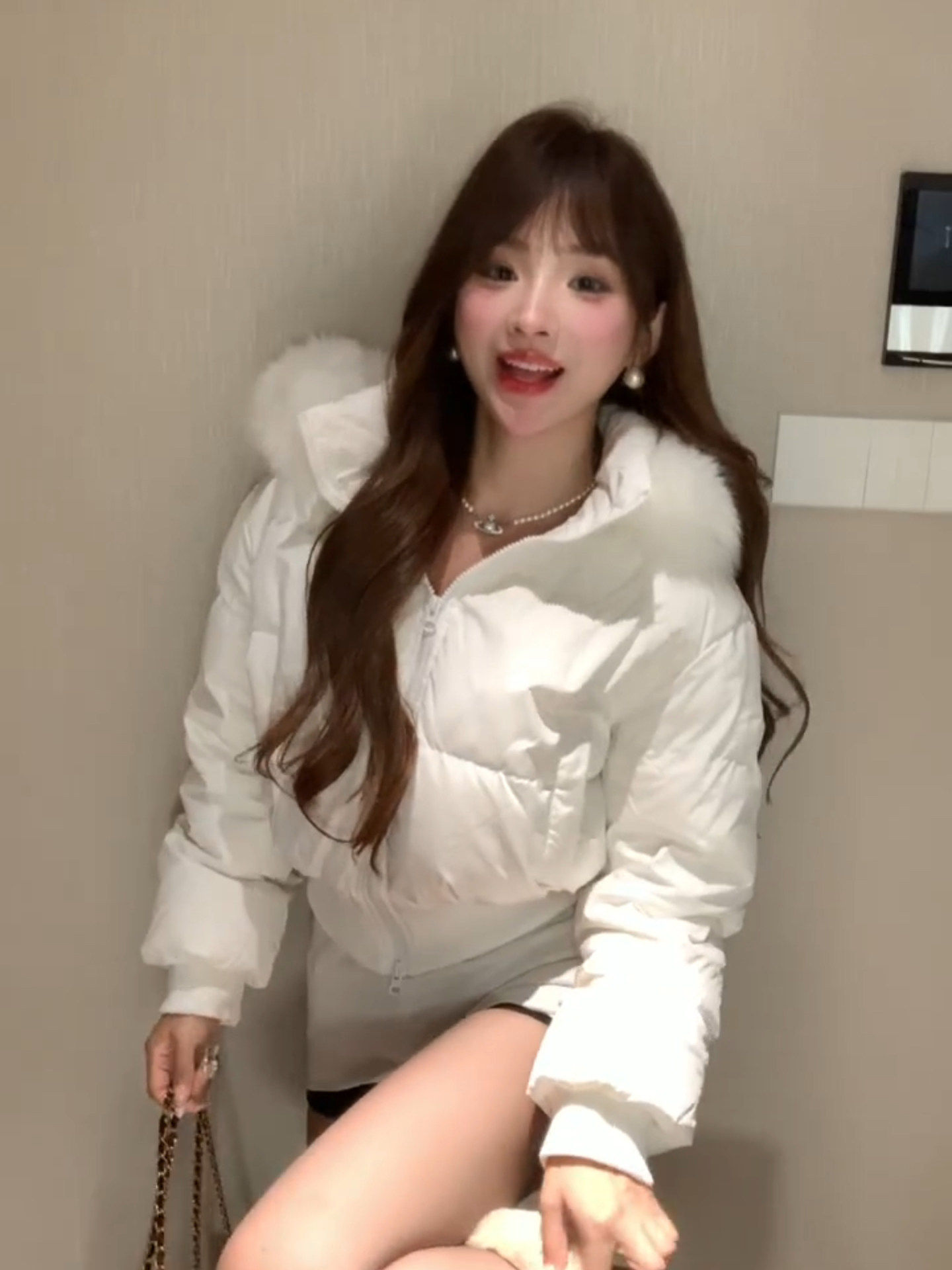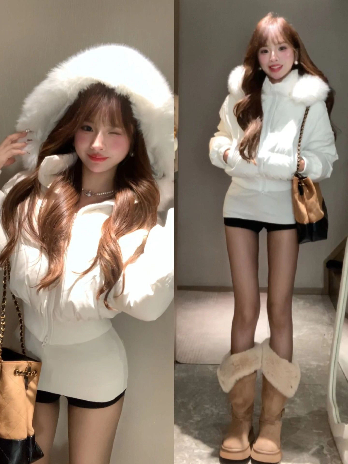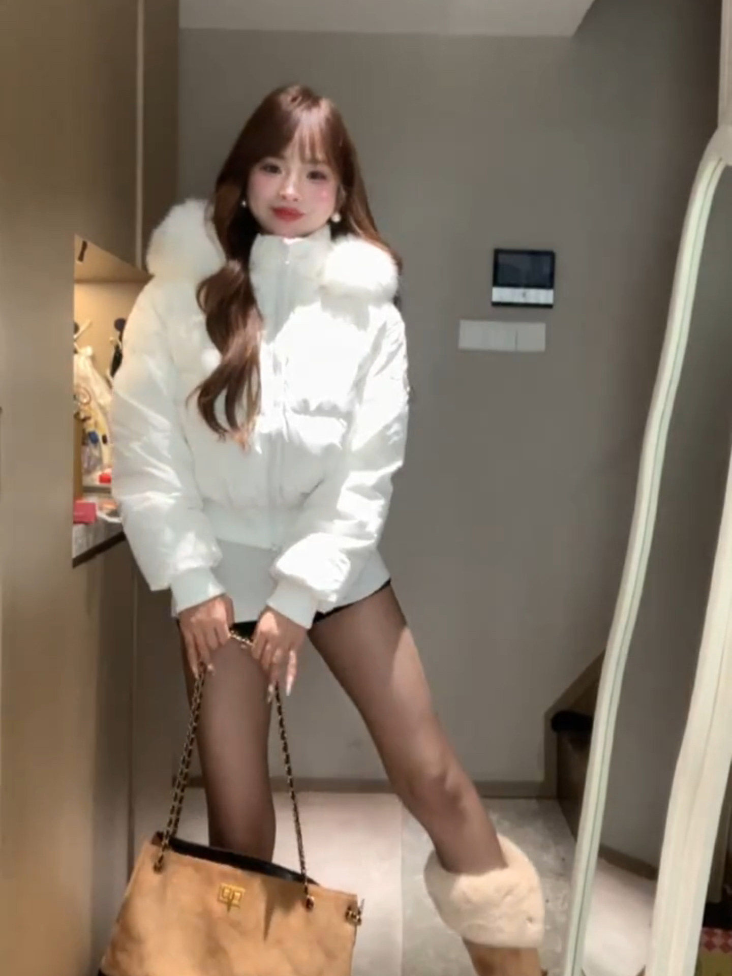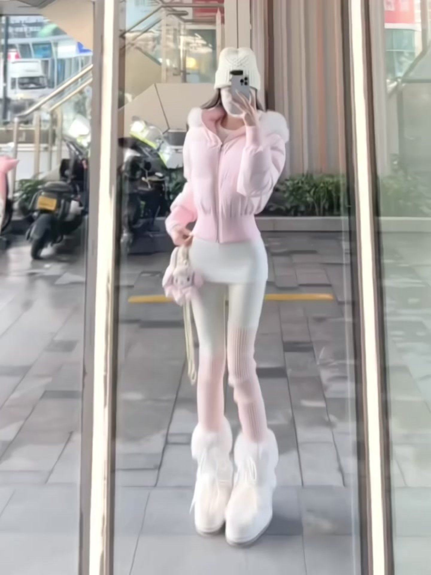 Little Seagull Waist-Cinching Short Style with Large Fur Collar, New Winter Pink down Cotton Jacket for Women, 2025 Winter Thick Cotton Coat