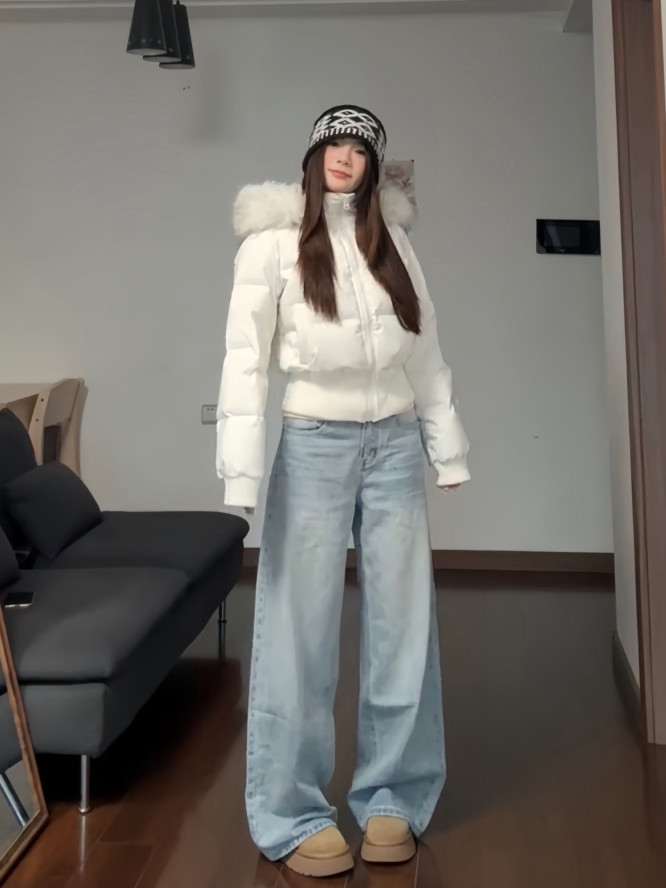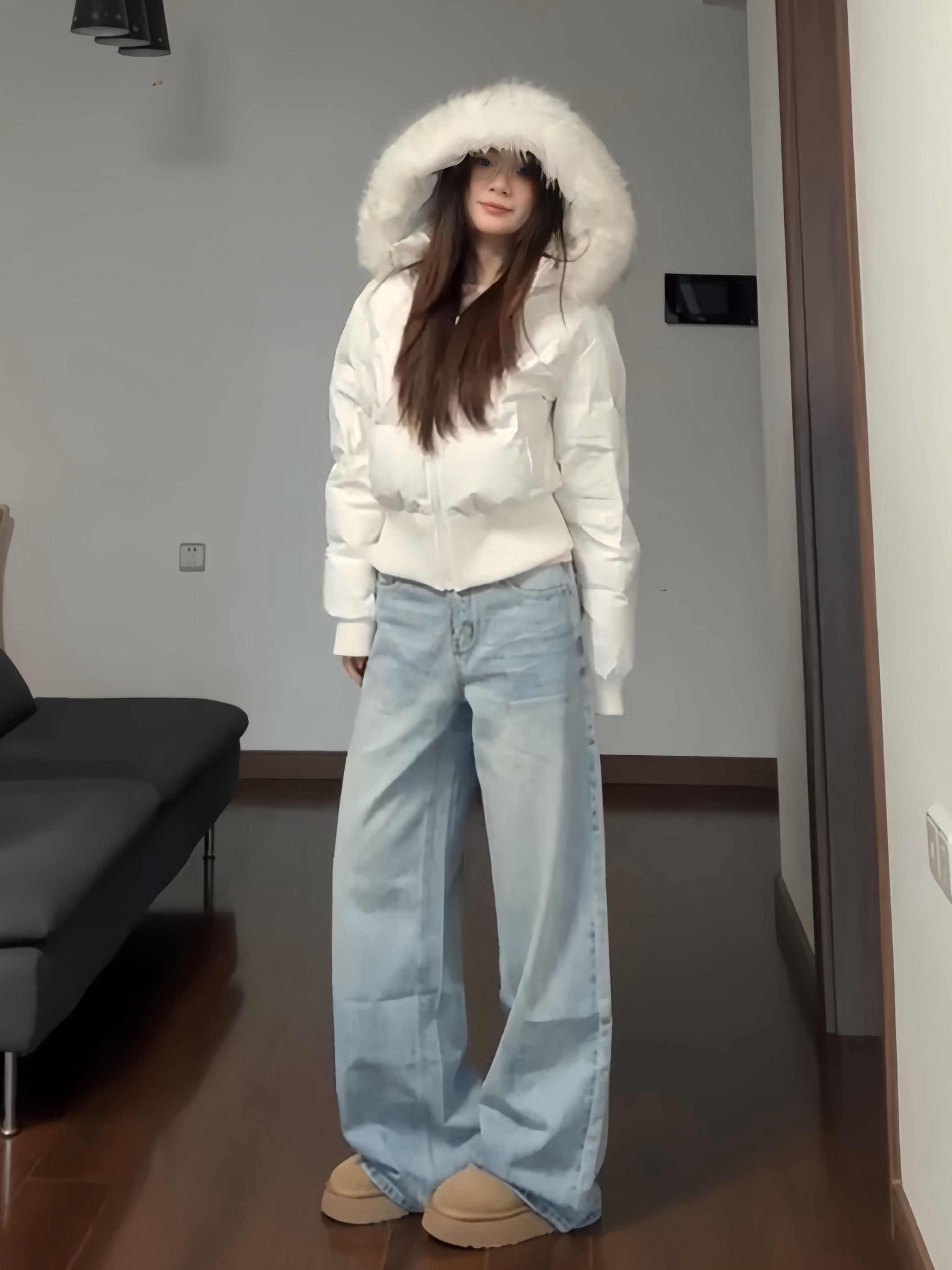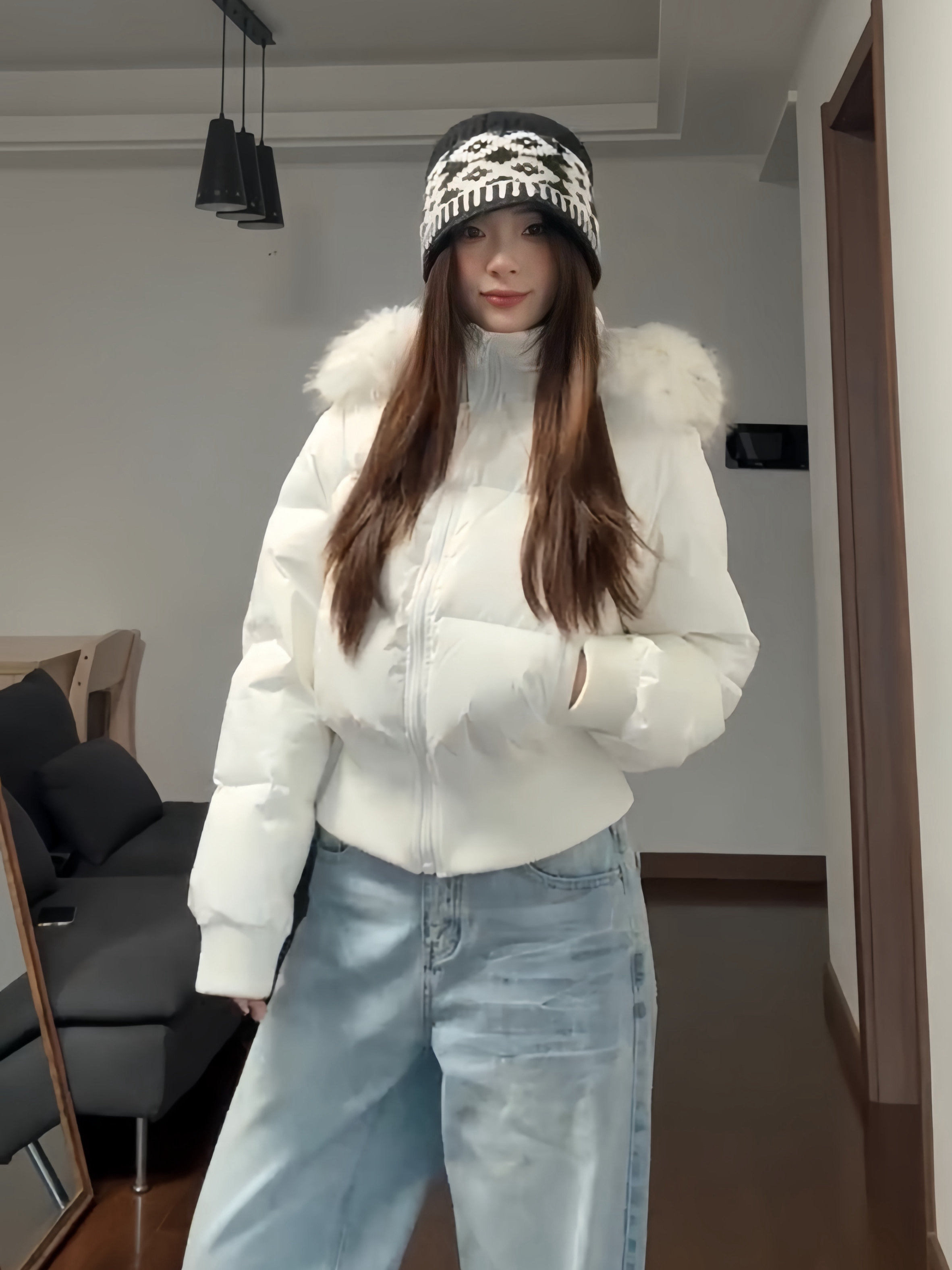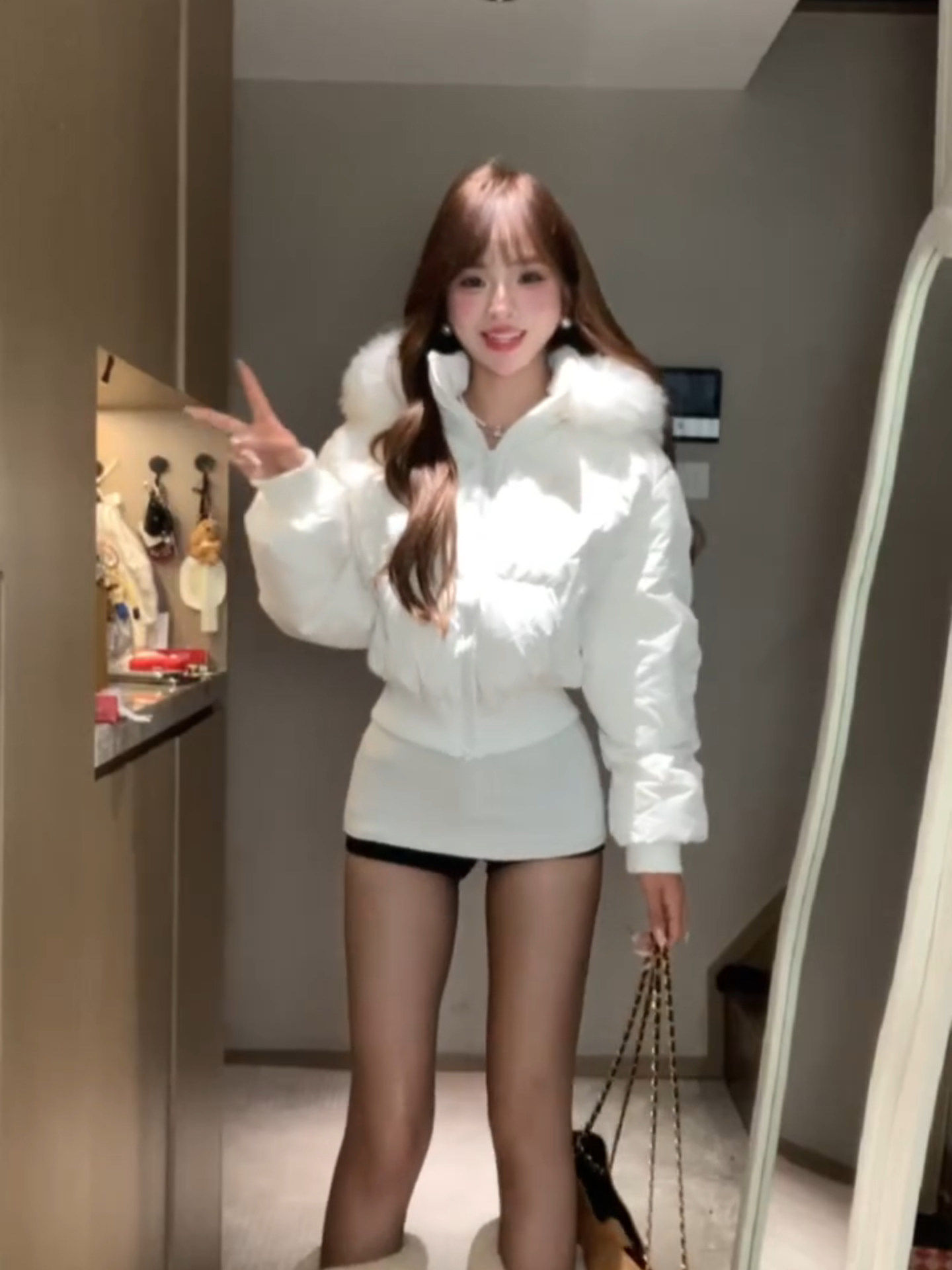 Little Seagull Waist-Cinching Short Style with Large Fur Collar, New Winter Pink down Cotton Jacket for Women, 2025 Winter Thick Cotton Coat