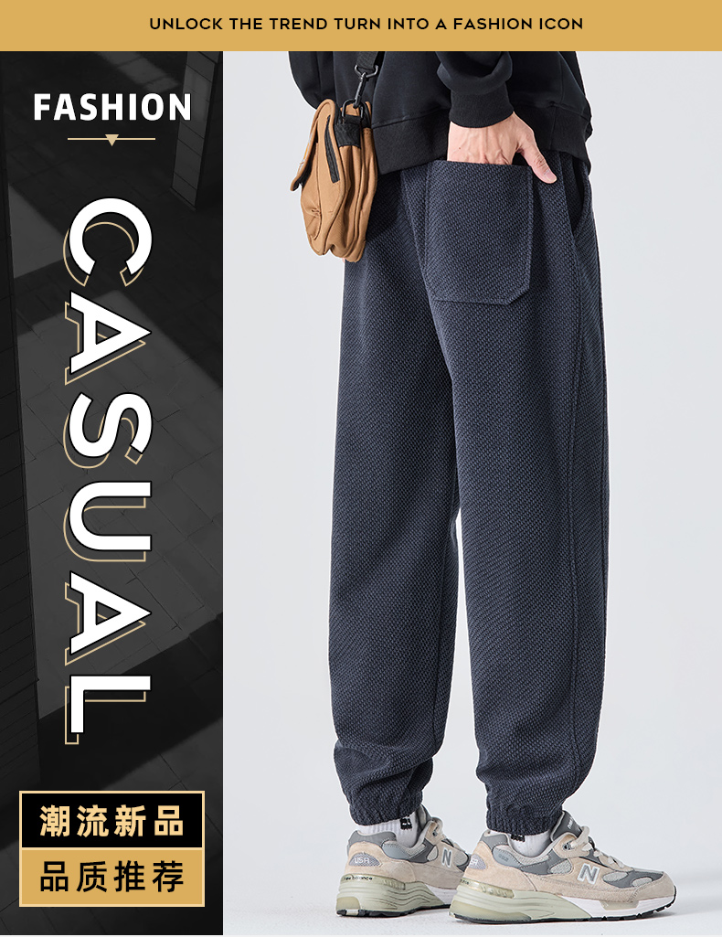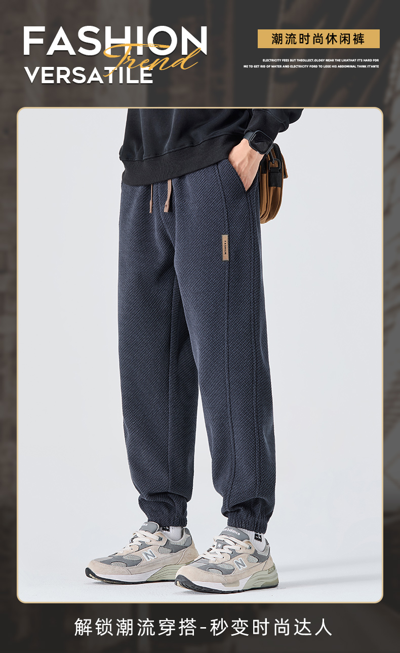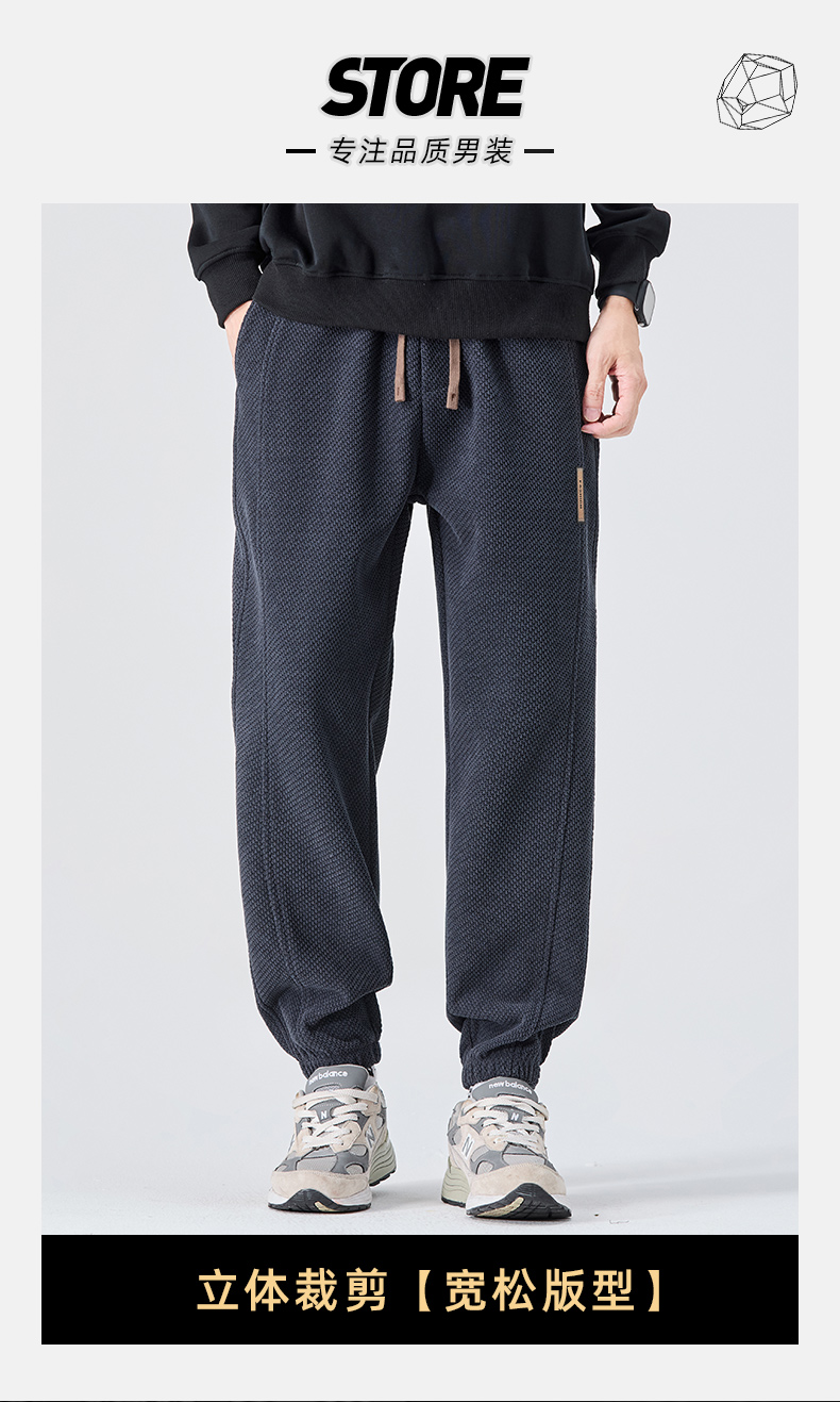 Men's Fleece-Lined Thick Sweatpants for Autumn and Winter, Loose-Fitting Sports Pants, Thermal Insulation, American-Style Fleece Casual Pants for Men