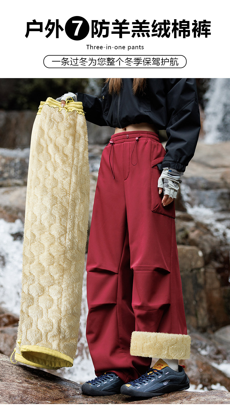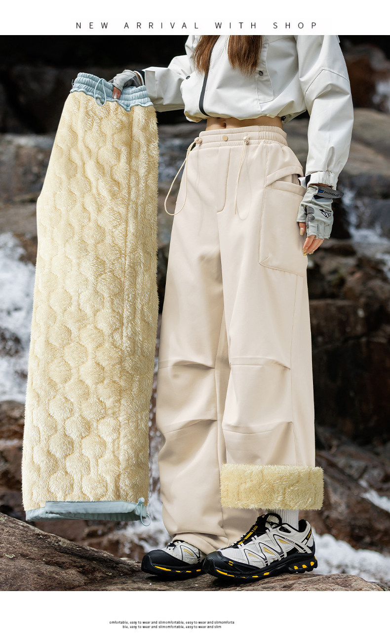 Lulusonic Northeast Lamb Wool Pants for Women, Fleece-Lined, Thickened, Windproof, Waterproof, Warm, Suitable for Temperatures as Low as -40 Degrees ℃ Down Cotton Pants