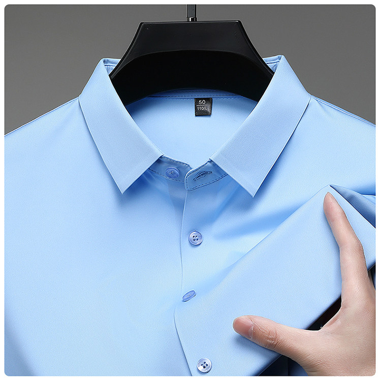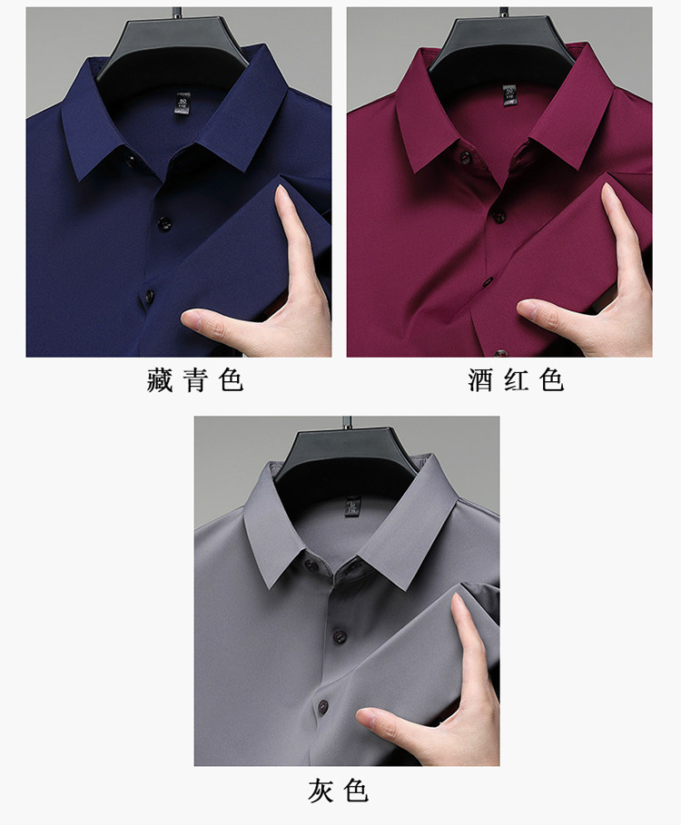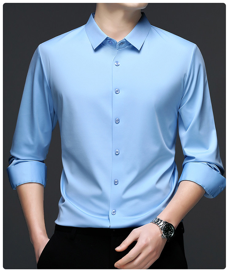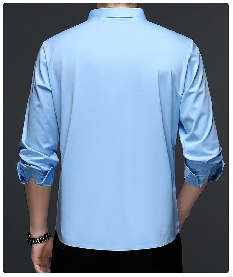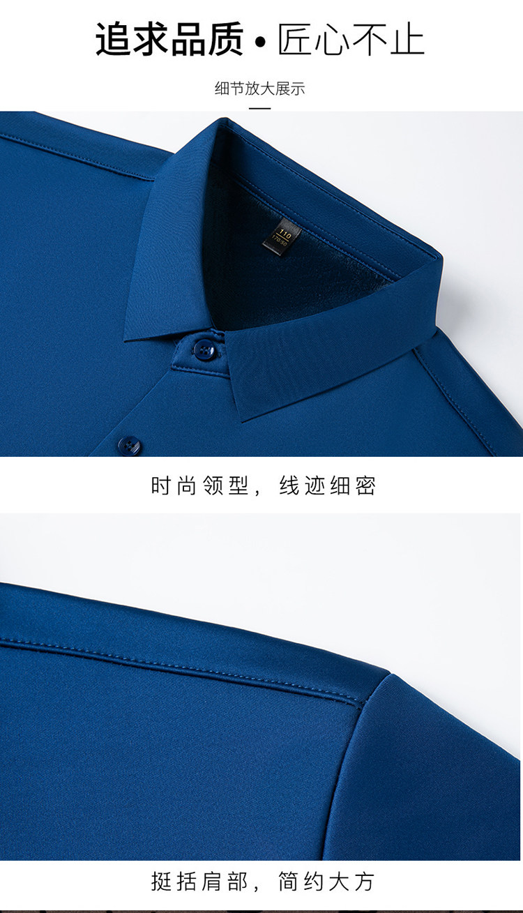 Romon High-End Men's Large Size Long-Sleeved Shirt Autumn and Winter Fleece-Lined Thickened Solid Color Business Wrinkle-Free Shirt for Men