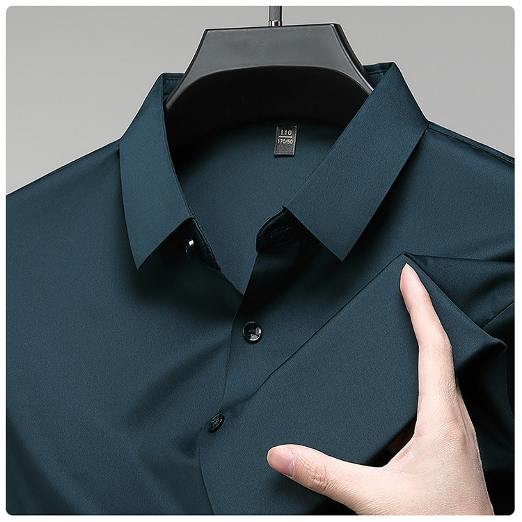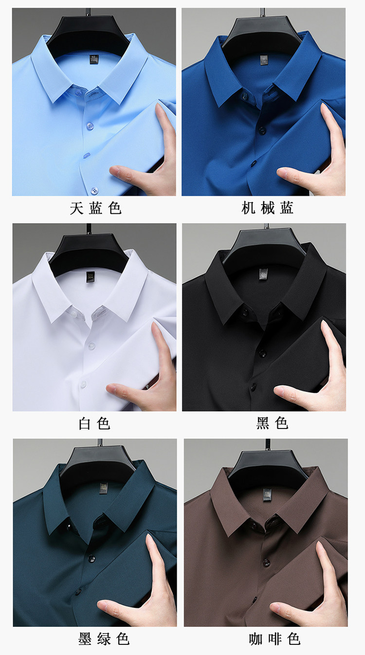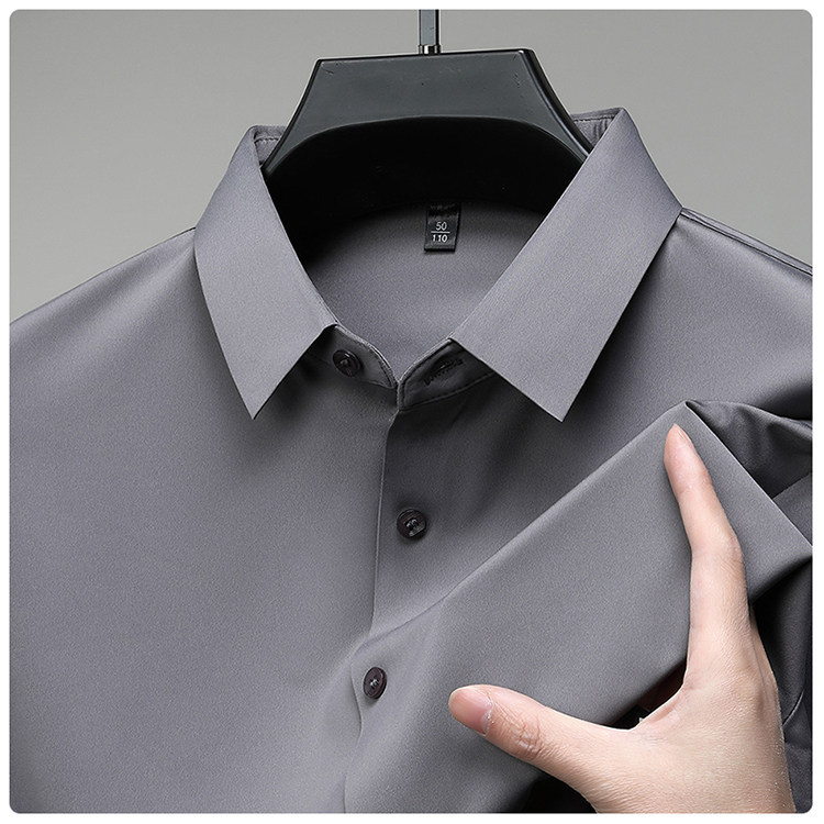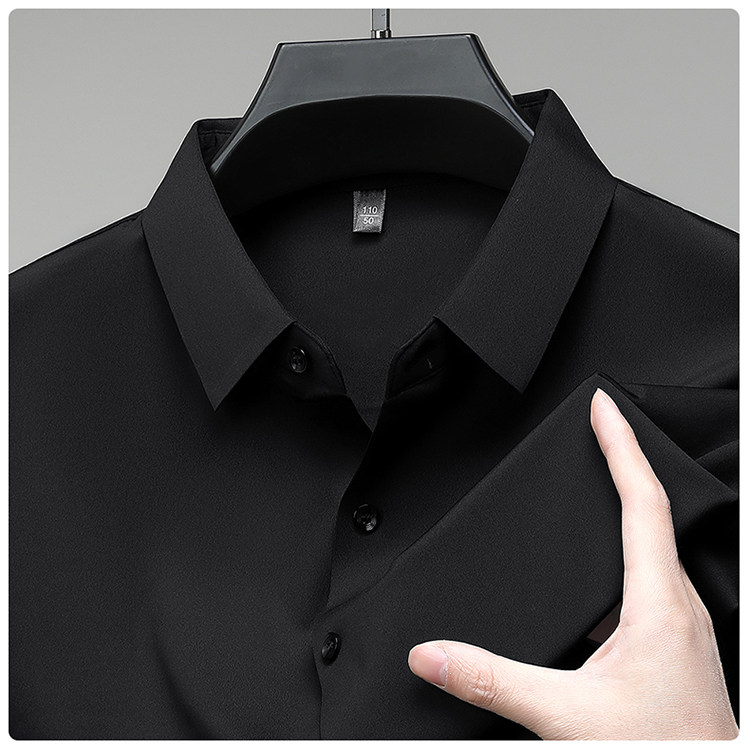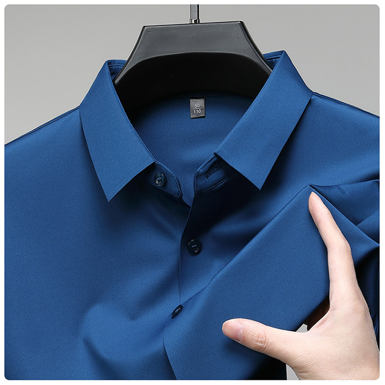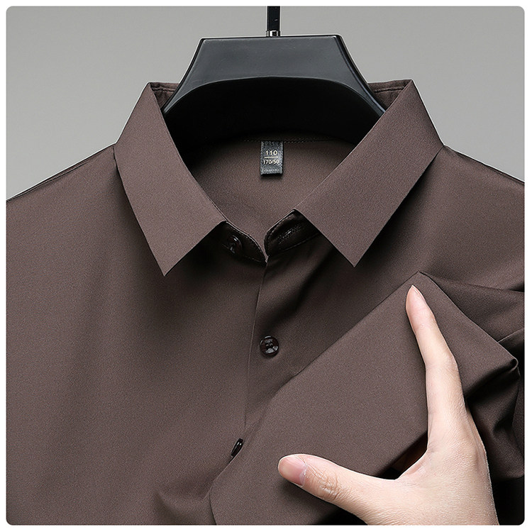 Romon High-End Men's Large Size Long-Sleeved Shirt Autumn and Winter Fleece-Lined Thickened Solid Color Business Wrinkle-Free Shirt for Men