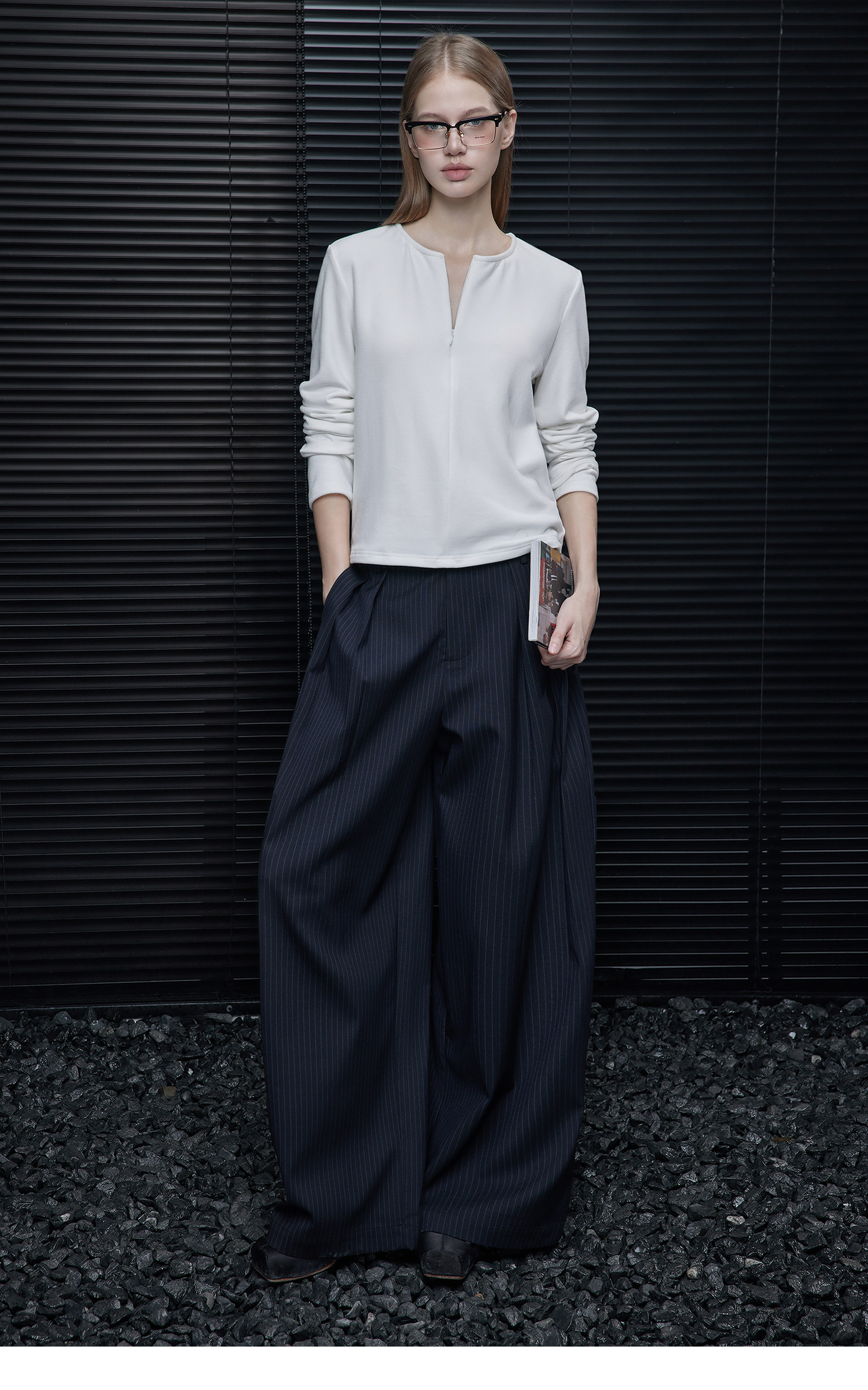 Moment Navy Blue Striped Wide-Leg Trousers for Women 2025 Autumn and Winter New Hot Style with a High-End Feel and Great Drape, Very Beautiful