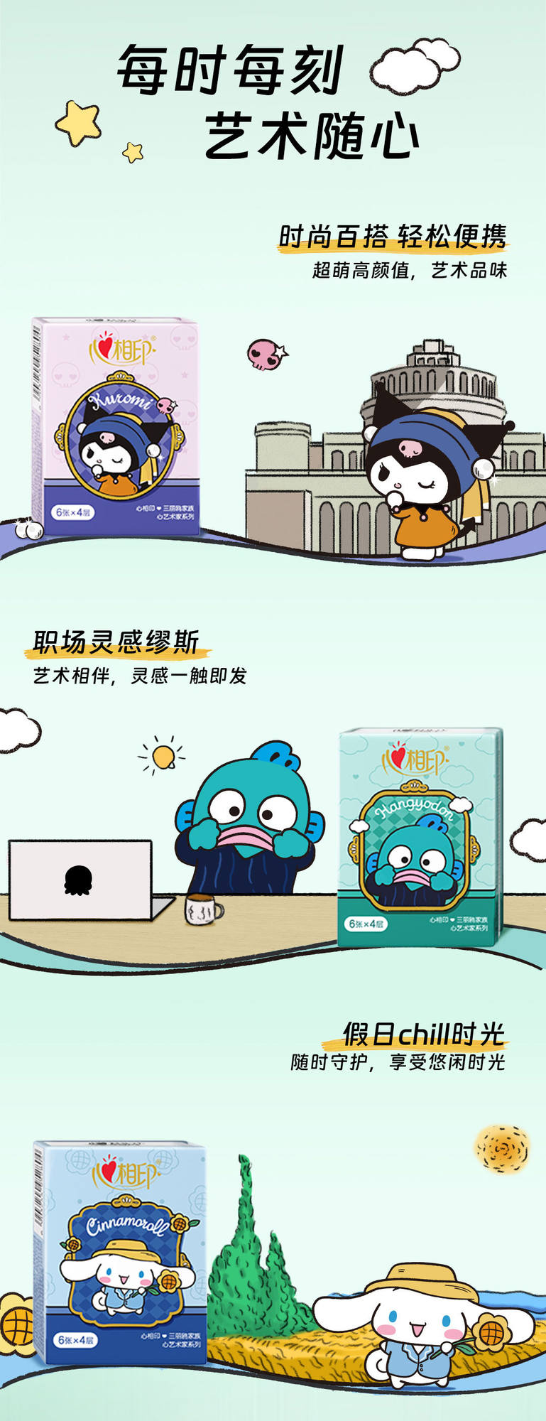 Heart-To-Heart Handkerchief Paper Sanrio Collaboration Heart Artist Series Small Pack Tissue Napkin Paper Collaboration Edition