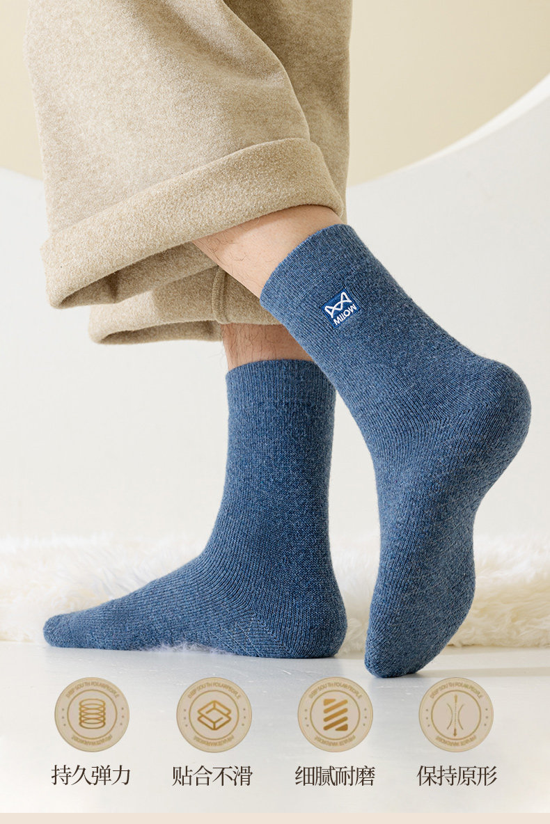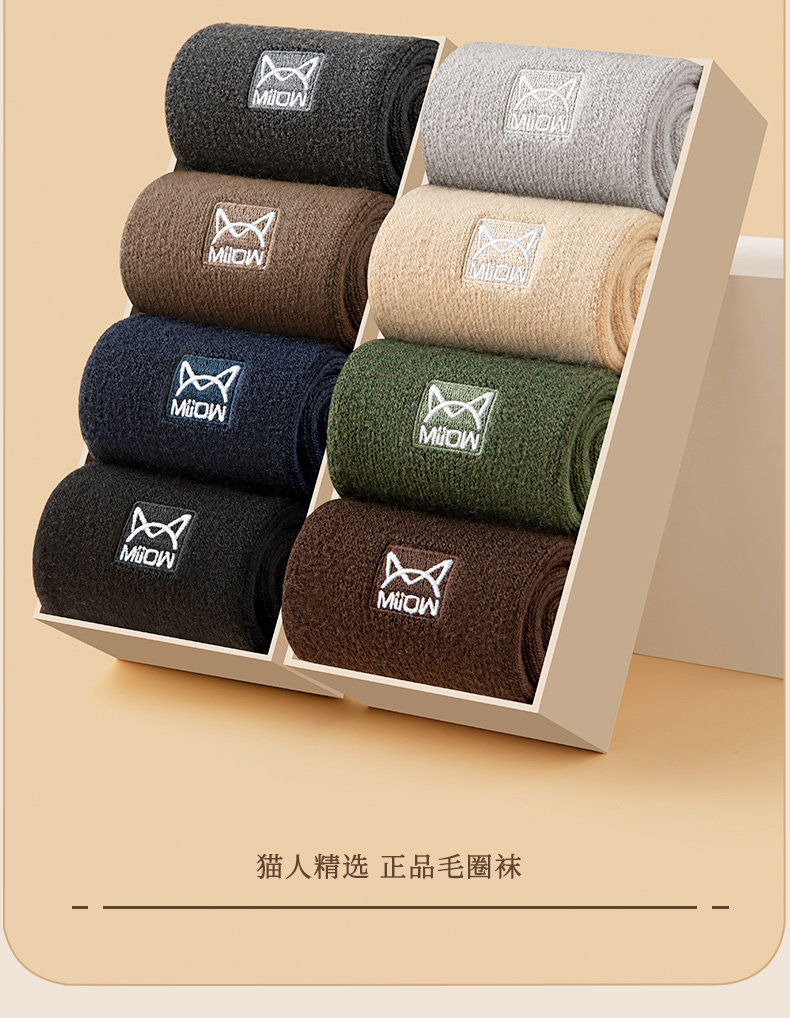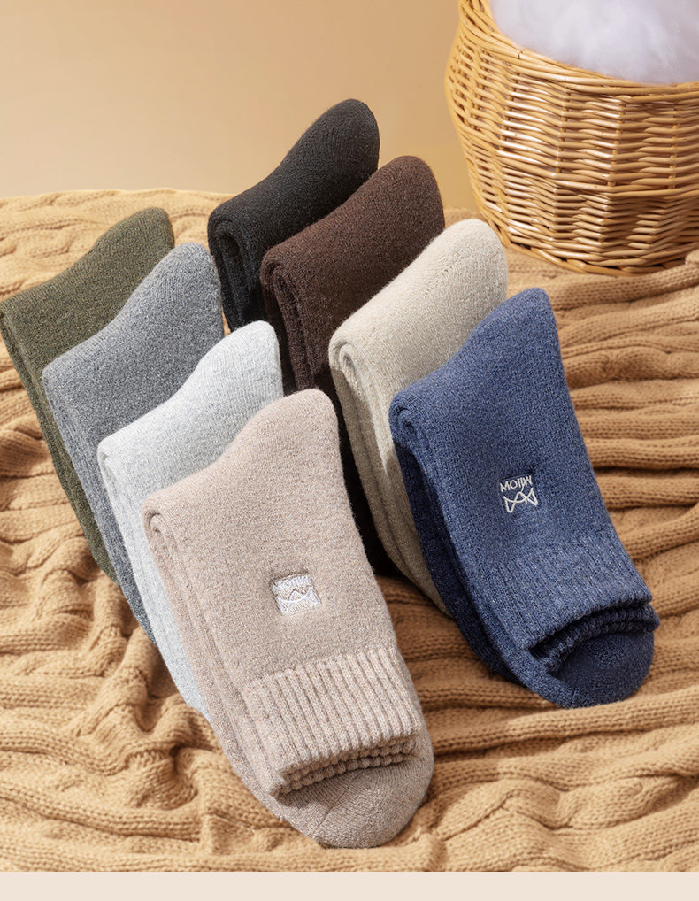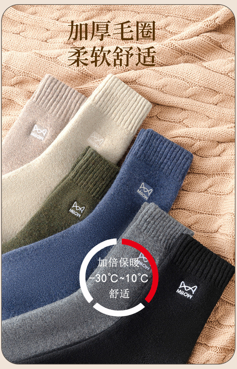 Catman Thickened Socks for Men, Winter Style, Fleece-Lined, Mid-Calf Length, 2025 New Popular Model, Warm and Heat-Generating Men's Terry Cotton Socks