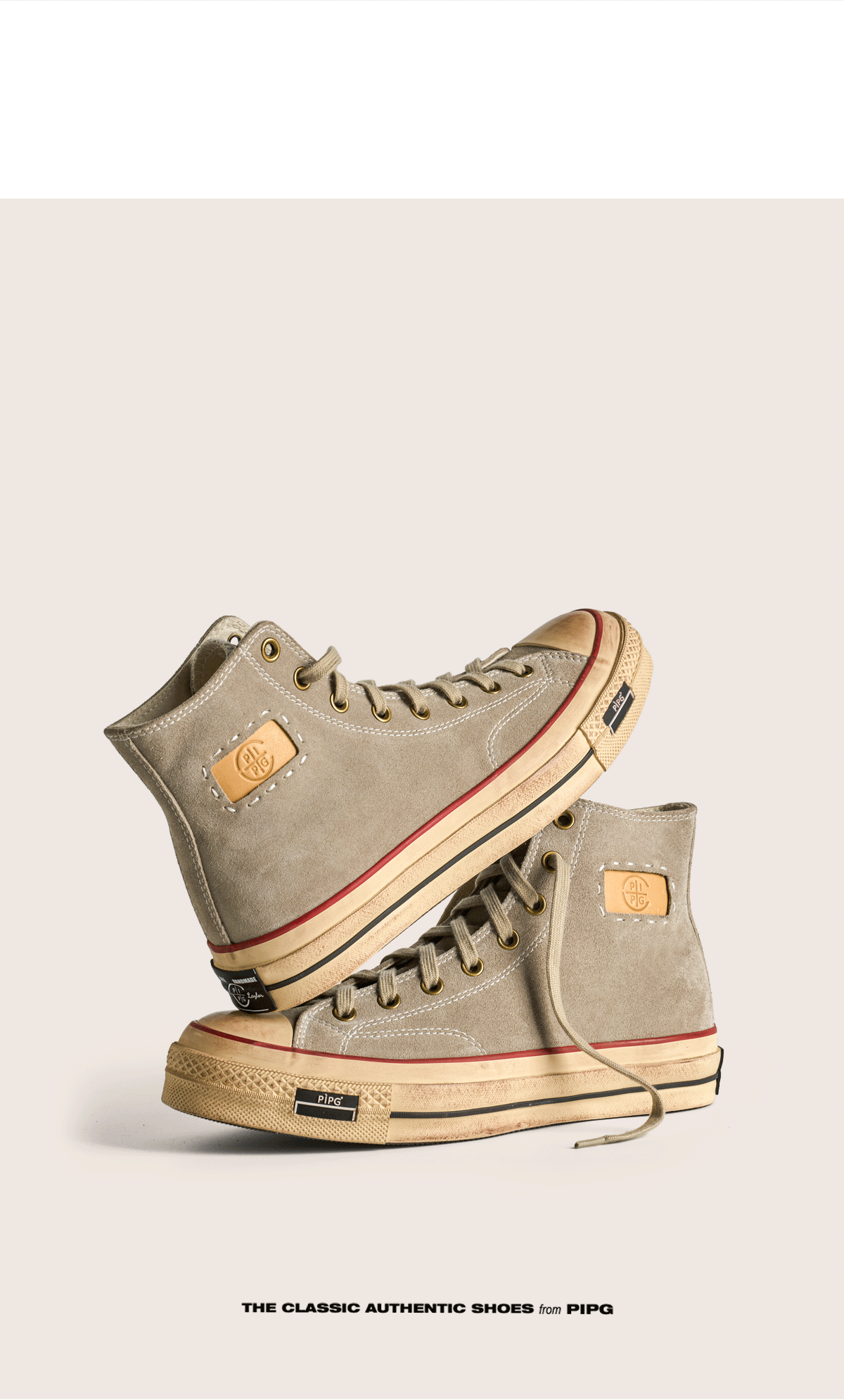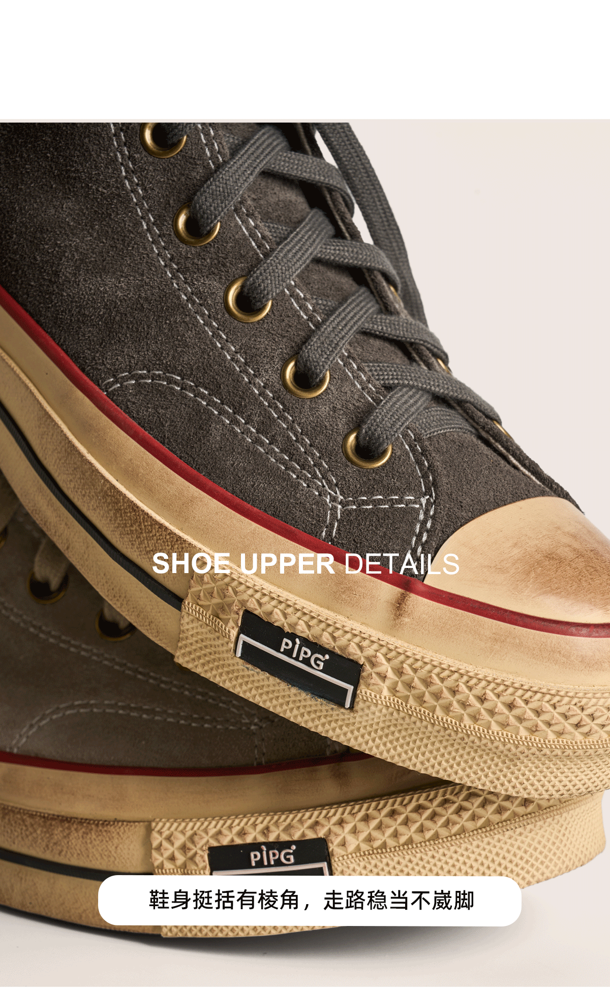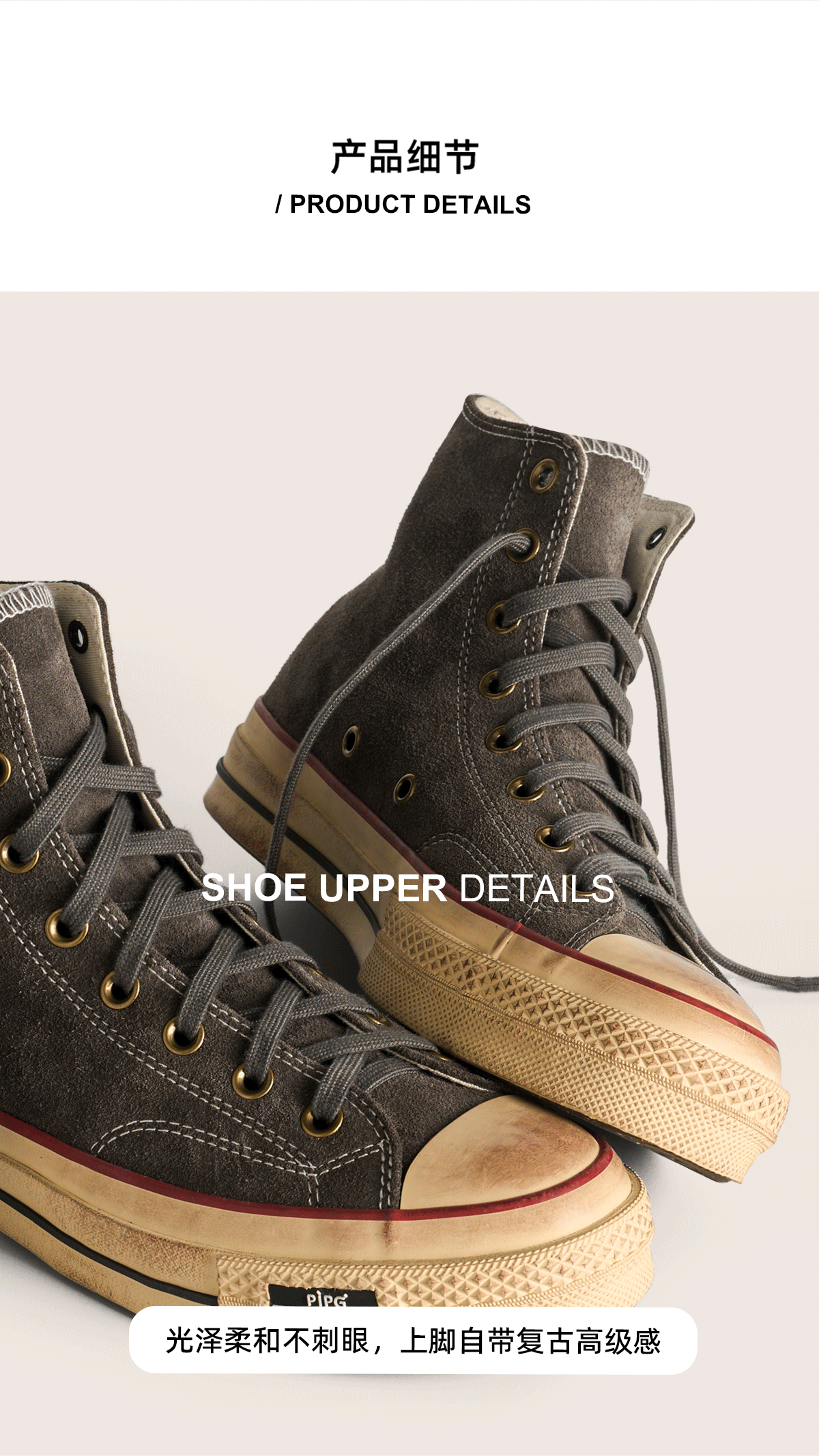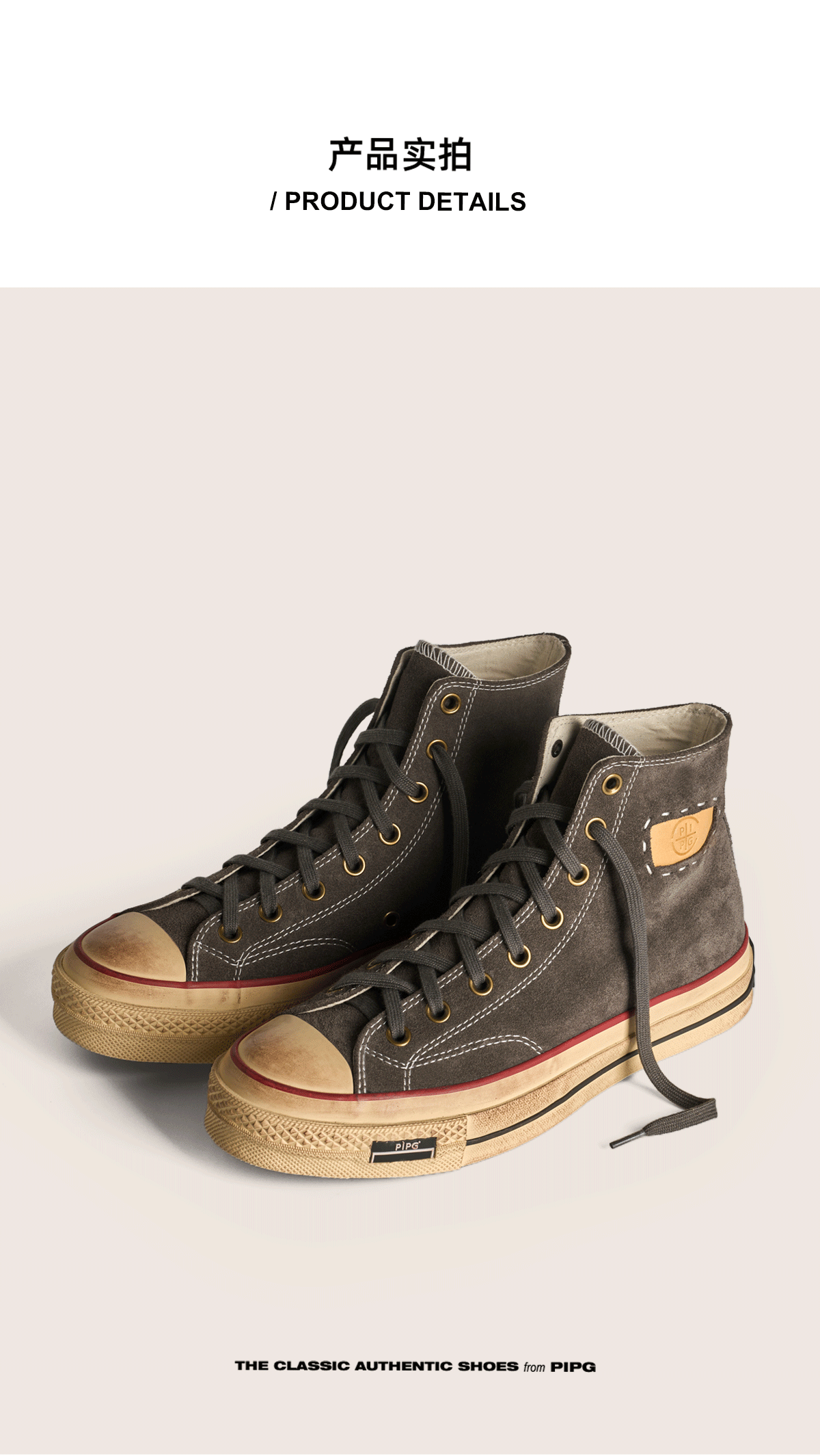Pipg Men's and Women's Retro Distressed Cow Suede Canvas Shoes Mid-High Top Vulcanized Shoes Thick-Soled Handmade Casual Sneakers