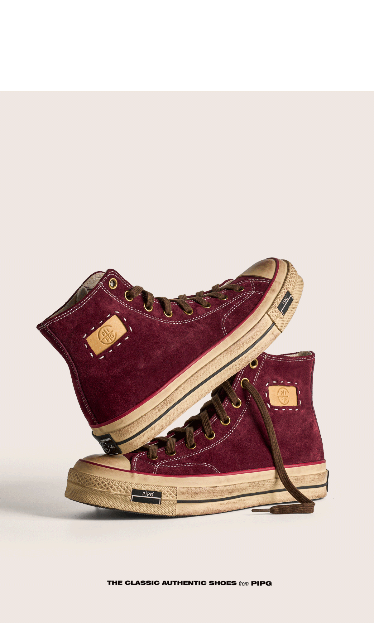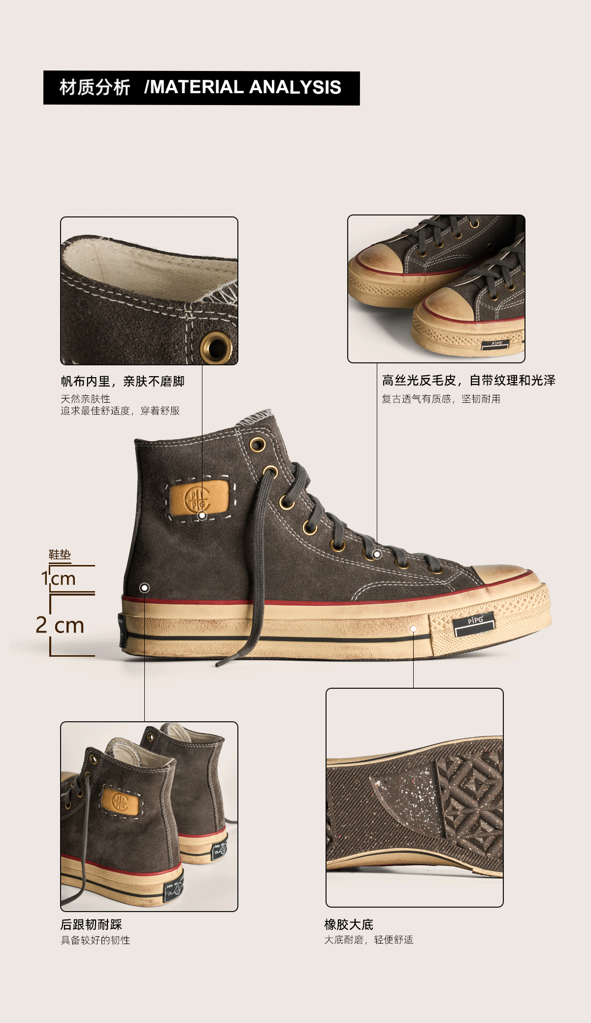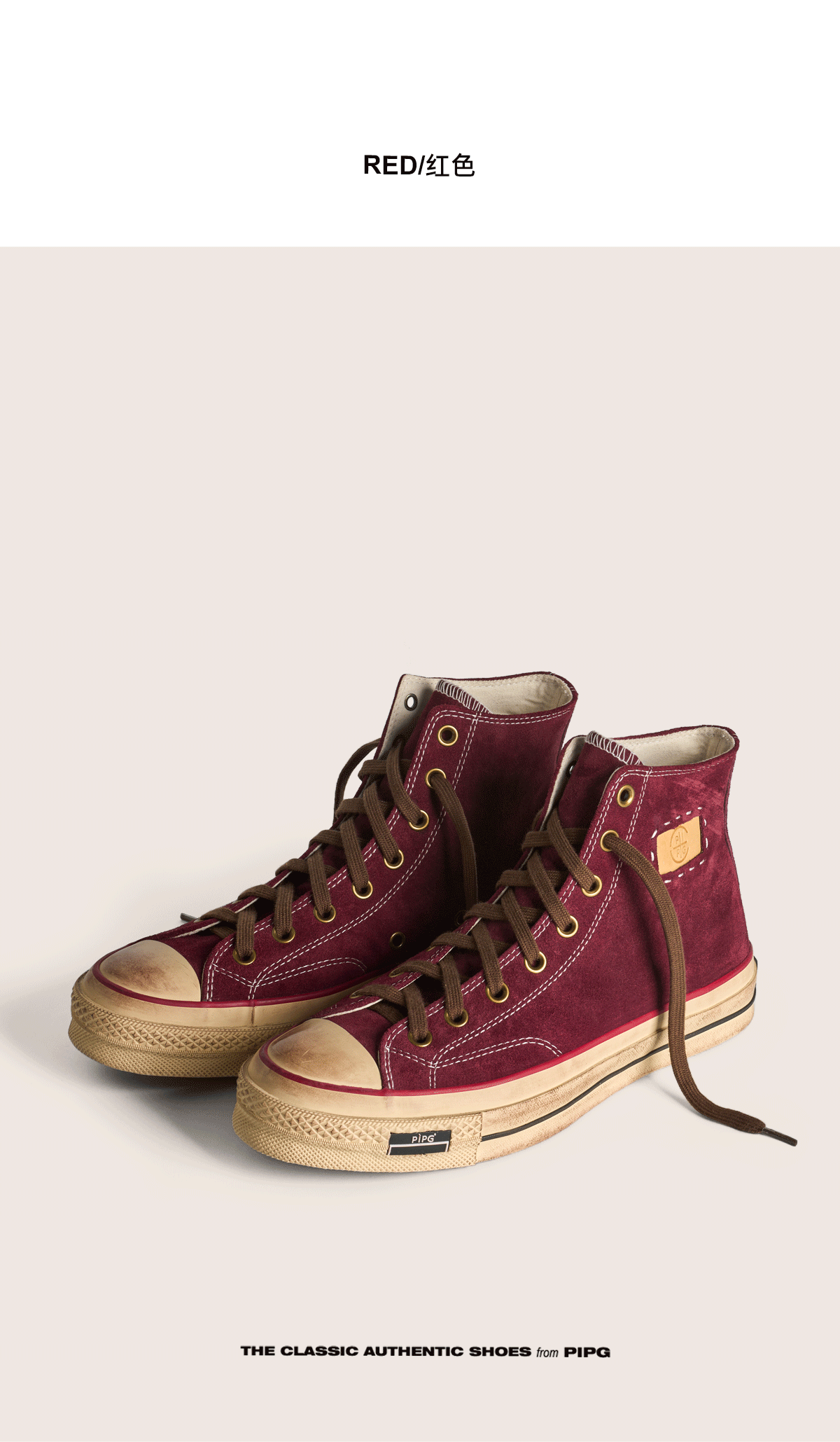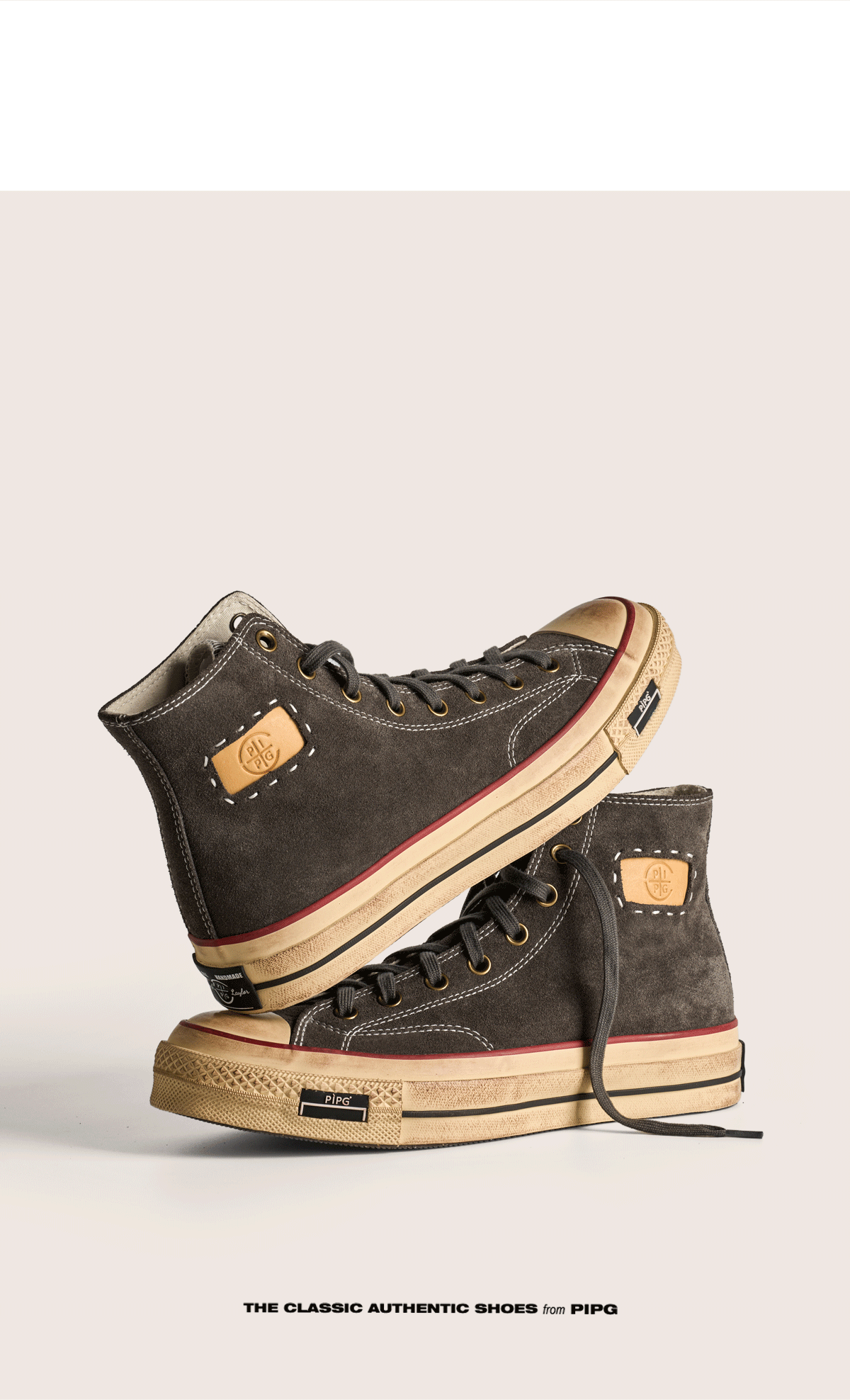 Pipg Men's and Women's Retro Distressed Cow Suede Canvas Shoes Mid-High Top Vulcanized Shoes Thick-Soled Handmade Casual Sneakers
