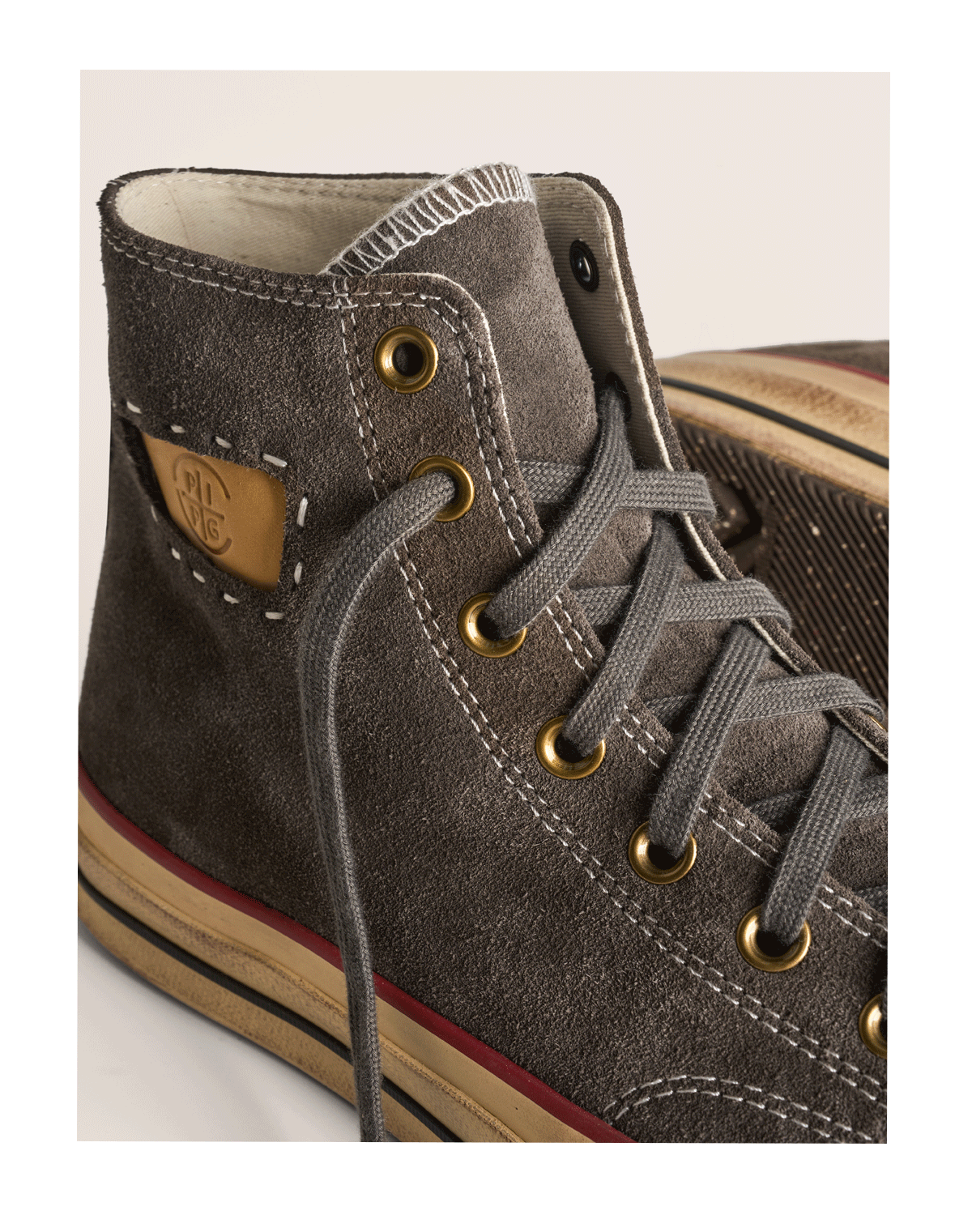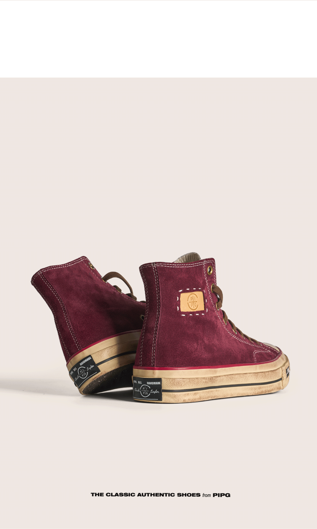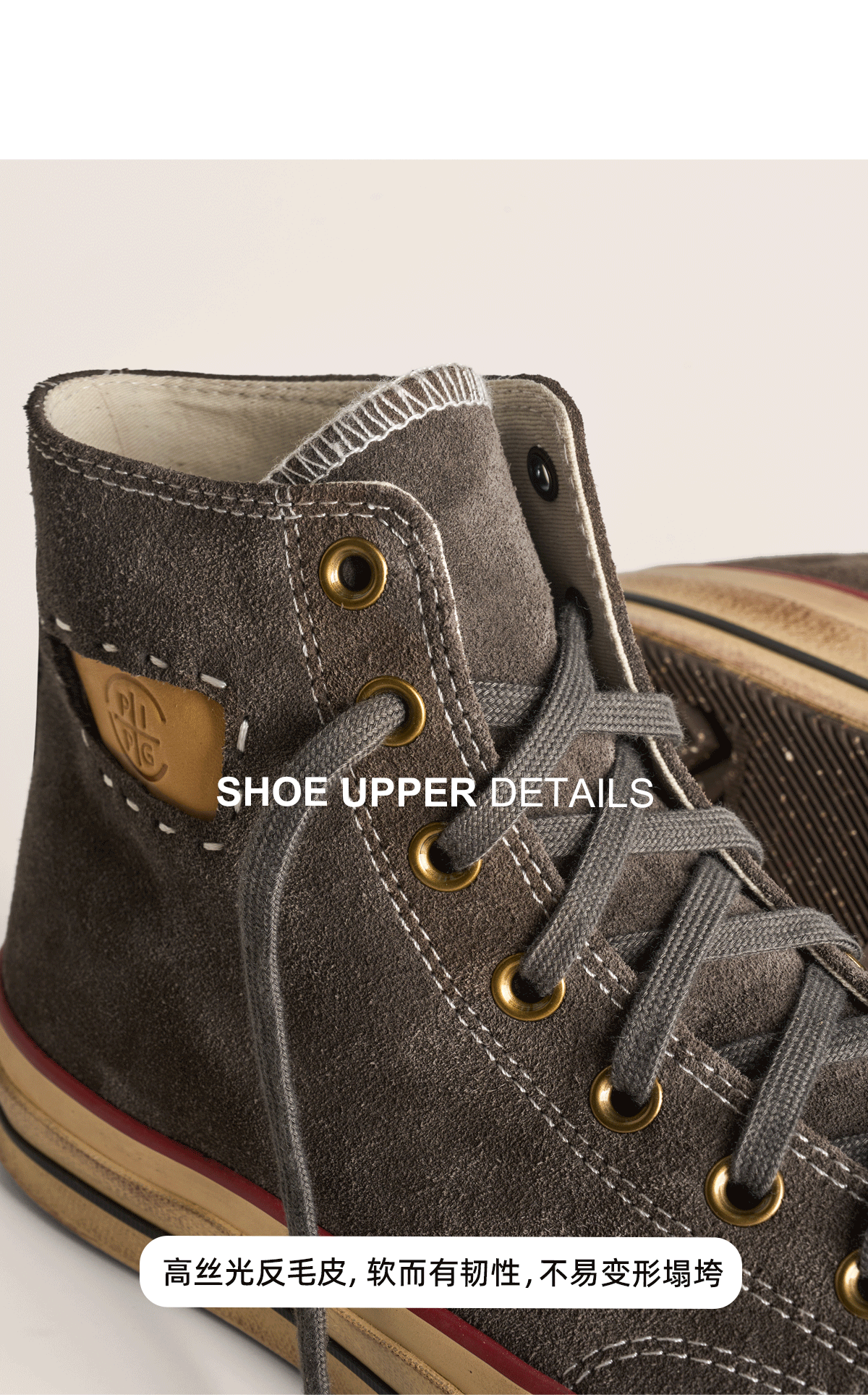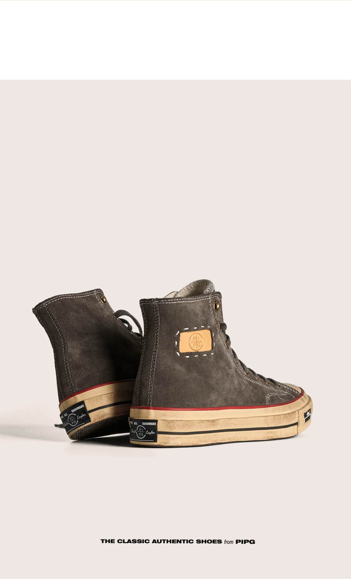 Pipg Men's and Women's Retro Distressed Cow Suede Canvas Shoes Mid-High Top Vulcanized Shoes Thick-Soled Handmade Casual Sneakers