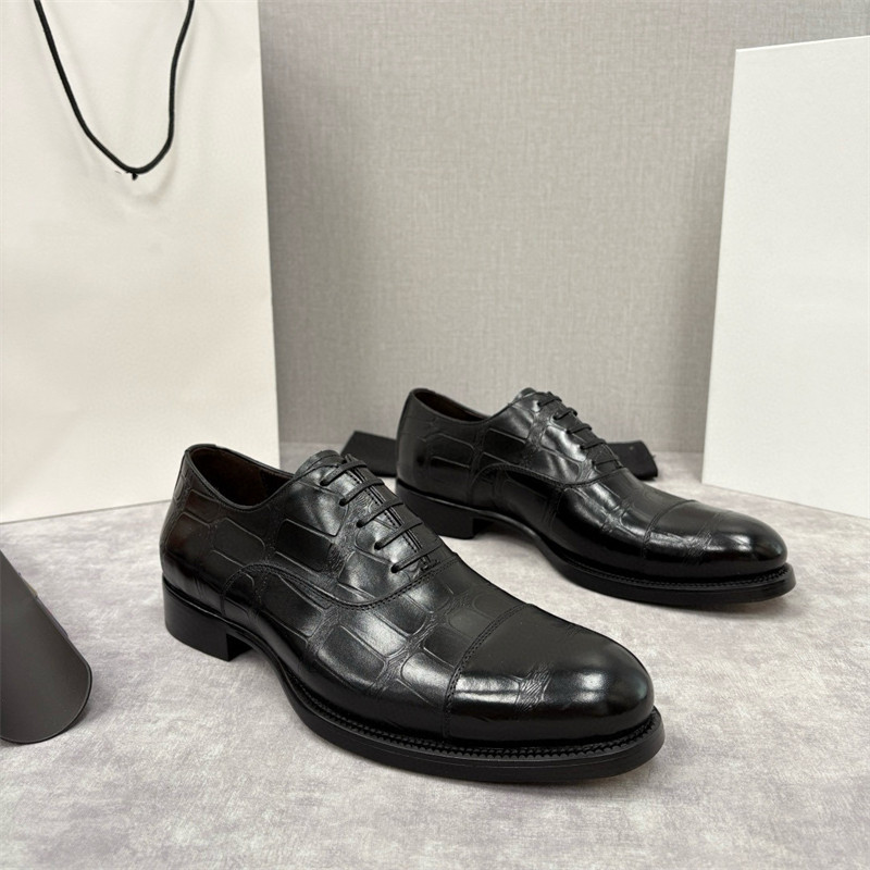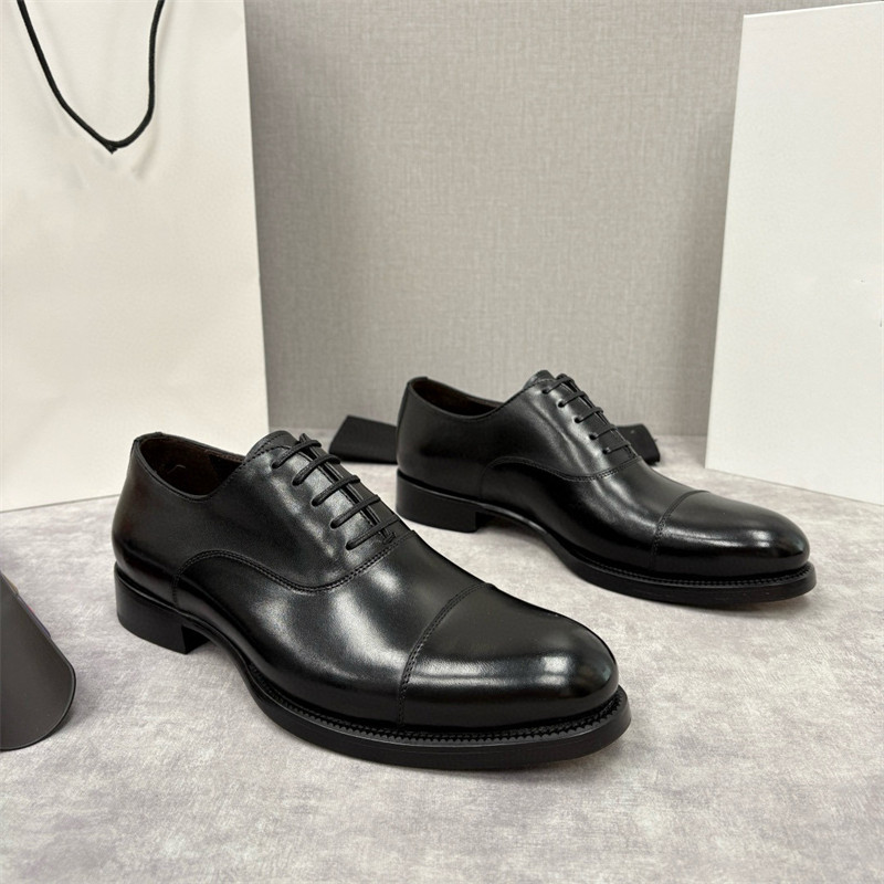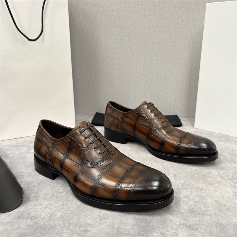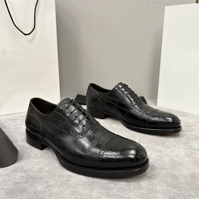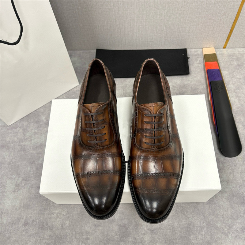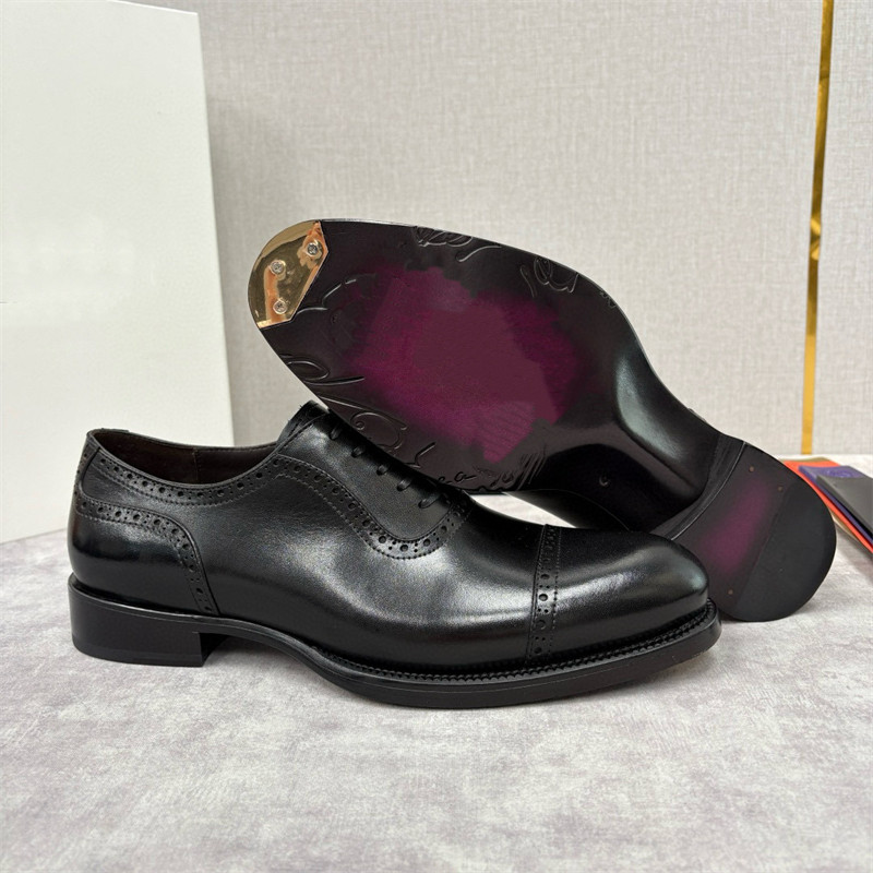 European Trendy Brand First-Layer Cowhide Business Formal Leather Shoes for Men, High-End Leather-Soled Three-Joint Derby Shoes, Brogues