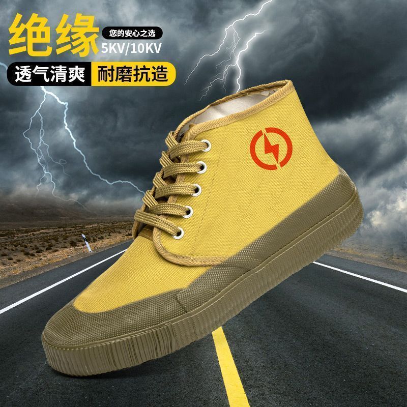 5Kv Electrician Insulating Shoes, Safety Shoes, High-Top Canvas Breathable Non-Slip Shoes for Men and Women, High-Voltage Yellow Rubber Liberation Shoes