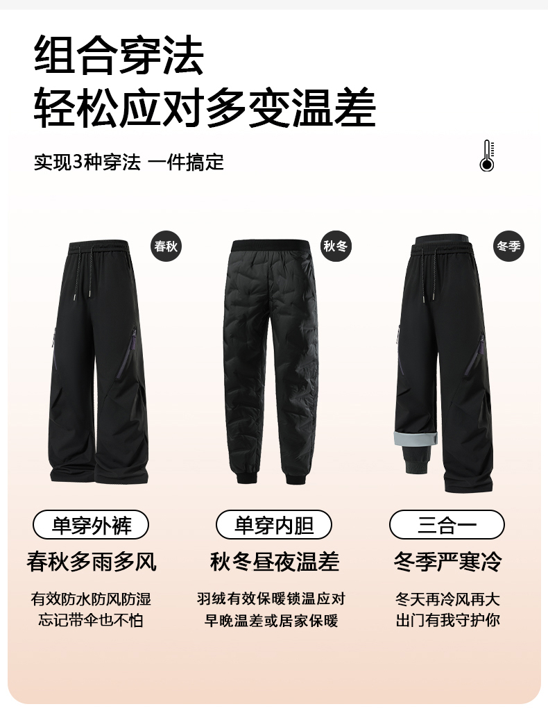 Wassup Cmkpo down Three-In-One Outdoor Pants for Women, Winter Wear, Suitable for Northeast Snow Country Travel, Skiing, and Workwear