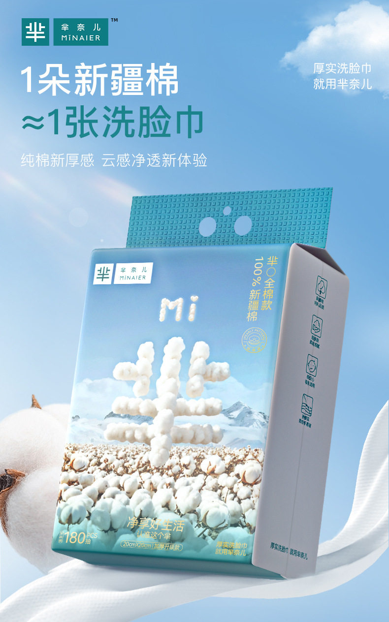 Minair Facial Cleansing Towels, Pure Cotton, Thick, Pull-Out Type, Thickened, Baby-Friendly, Skin-Friendly, Dry and Wet Cotton Soft Towels