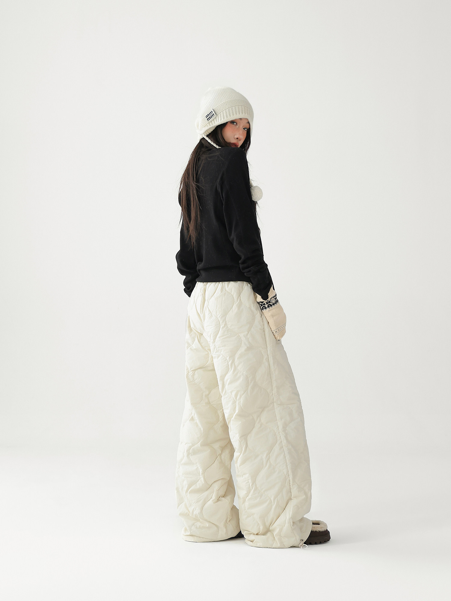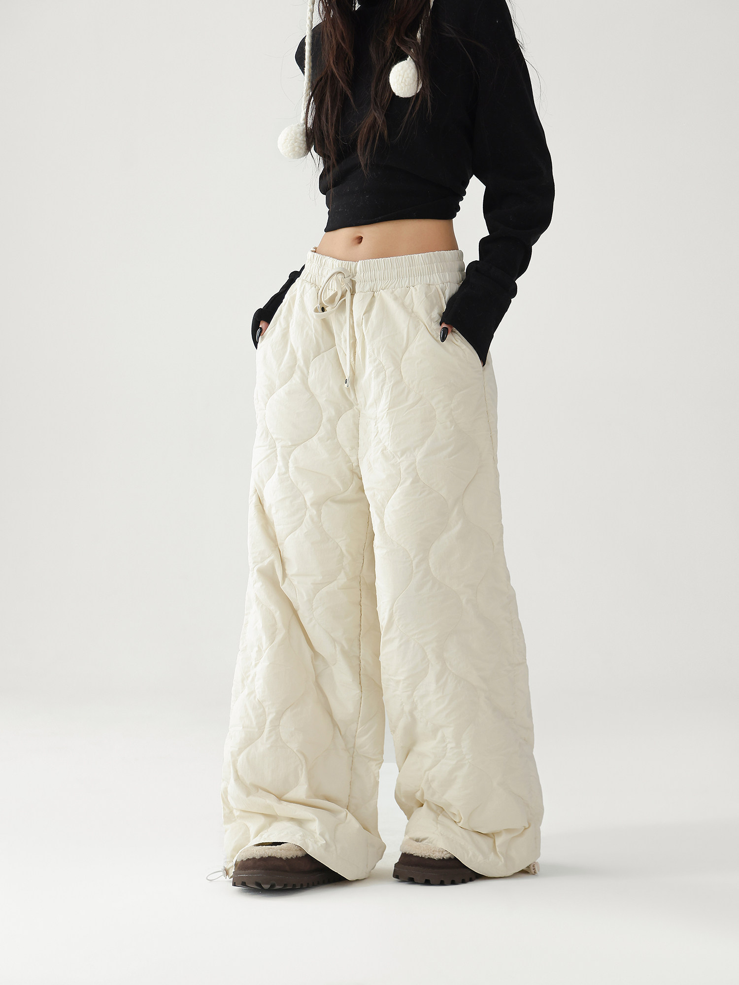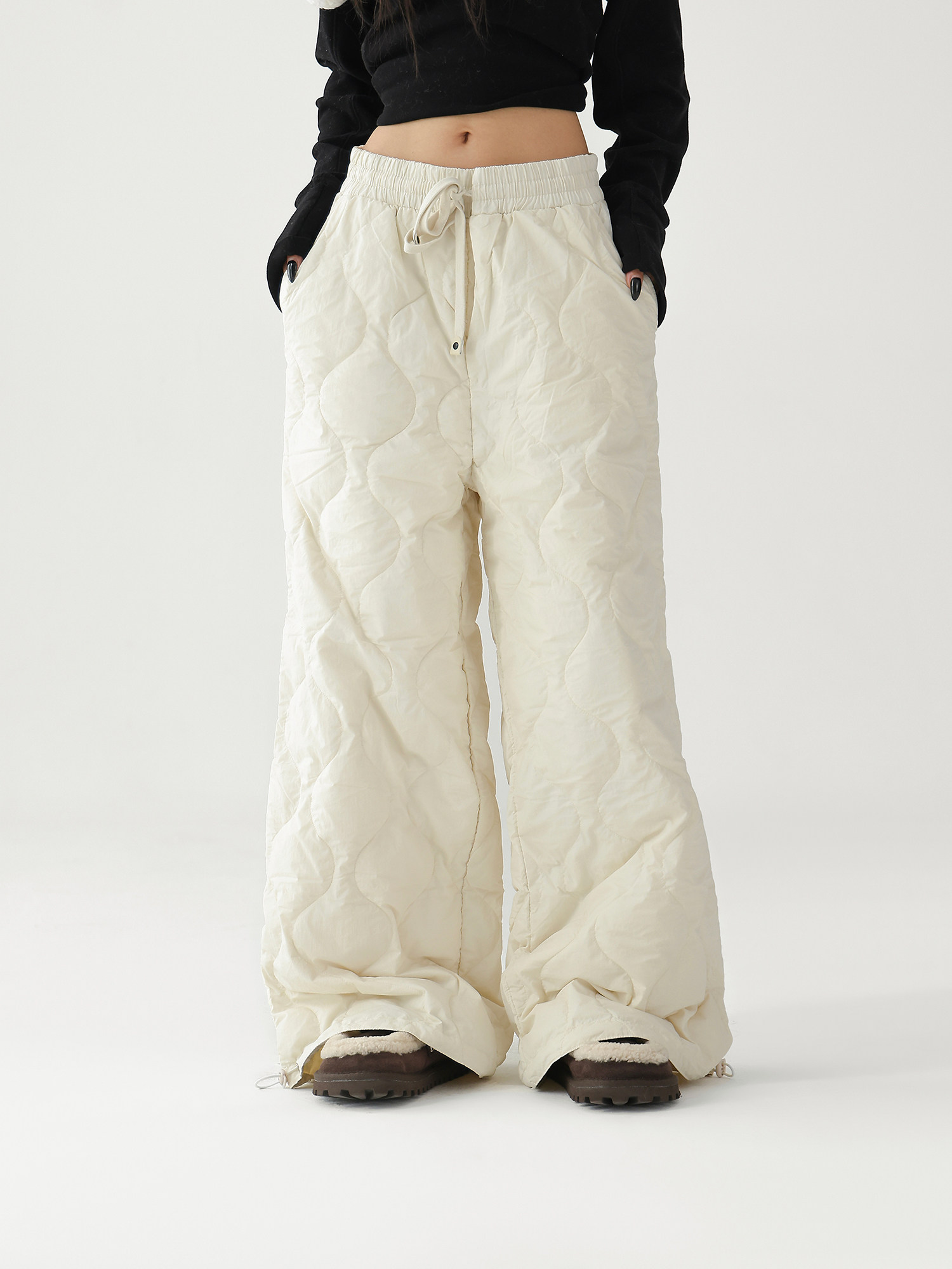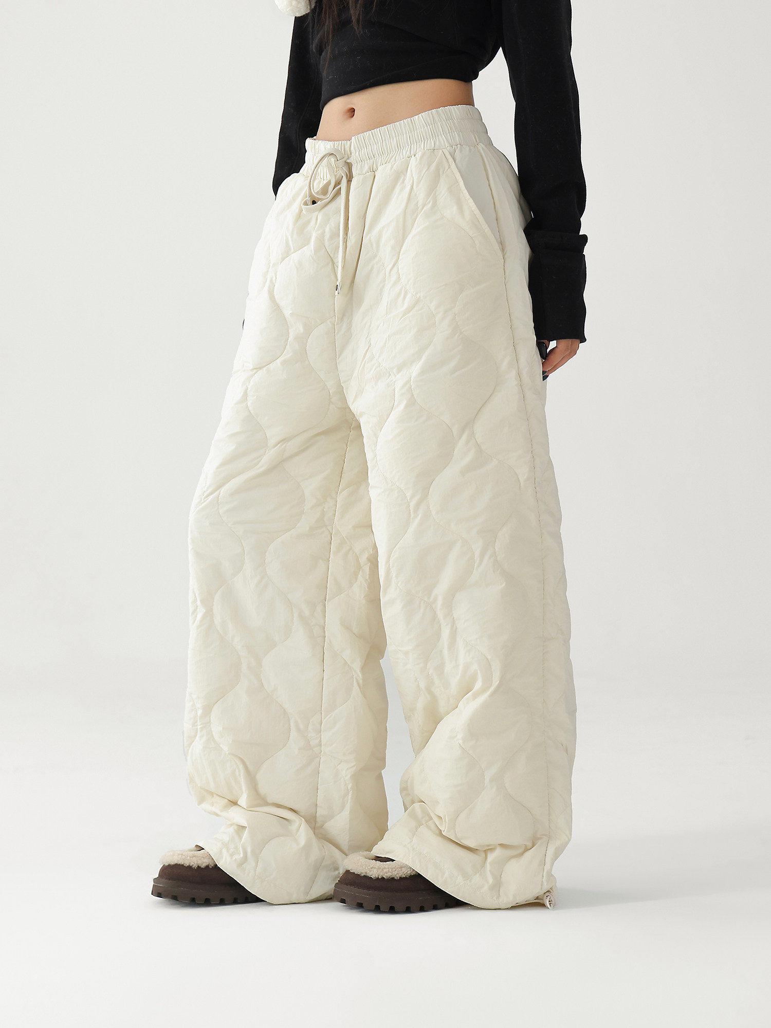 Acestudios Thickened Warm 90% White Duck down Pants Retro Diamond-Shaped Straight Loose Casual Pants Cotton Pants for Women